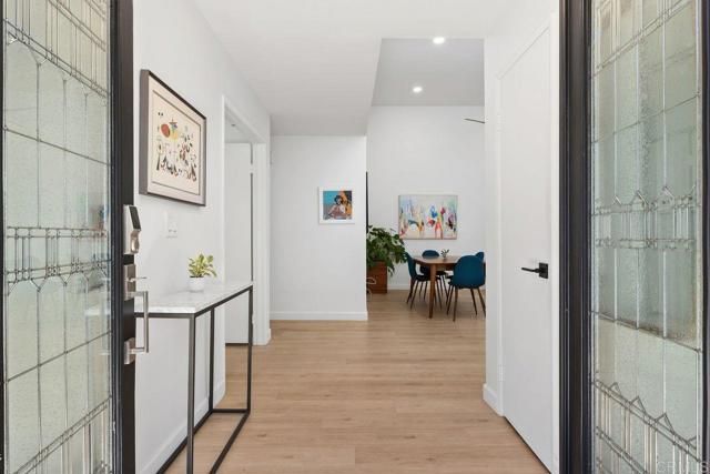 Welcome to gracious living at it's finest at Lake San Marcos! With approximately 1,740 square feet, this three bedroom, two bath home boasts an abundance of natural light, with vaulted ceilings and multiple sliding doors. Recent upgrades include luxury vinyl flooring and baseboards throughout, recessed lighting, smooth textured walls, fresh paint and newer A/C! The primary bedroom is spacious and includes an en-suite bathroom, large closet and enclosed patio. The secondary bathroom has been stylishly updated with new flooring, vanity, lighting and fixtures. There are multiple patio spaces and open views off the back, providing nature and privacy. Other features include a two-car garage, leaded glass front door, multiple patio spaces, updated windows, custom closets in the Den and Primary, newer dishwasher and ceiling fans. The Sunrise Pointe community offers tennis and pickle ball courts, fitness center, pool, and includes Spectrum internet, exterior maintenance, roof maintenance, front landscaping, and monthly rental perks at the lake. The Lake San Marcos community offers lively seasonal events, the Amalfi restaurant, Marina Bar, two golf courses and beautiful vistas of the Lake and Mountains. The perfect balance of active lifestyle, convenience and natural beauty! Welcome Home!
