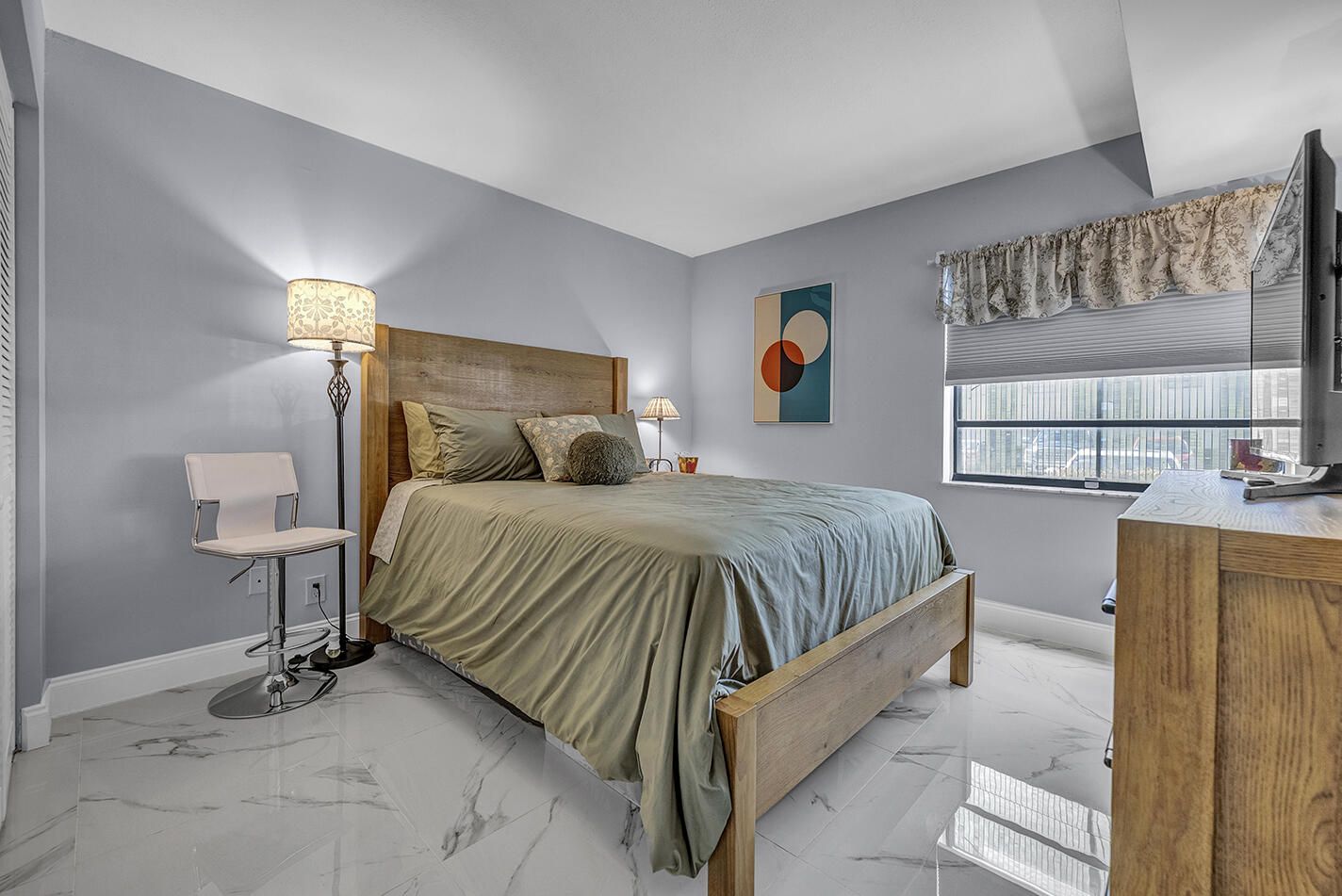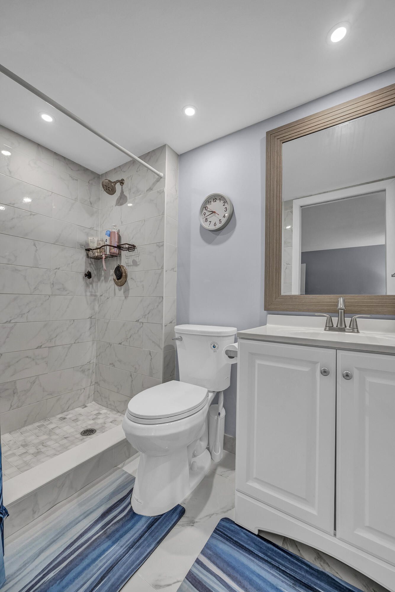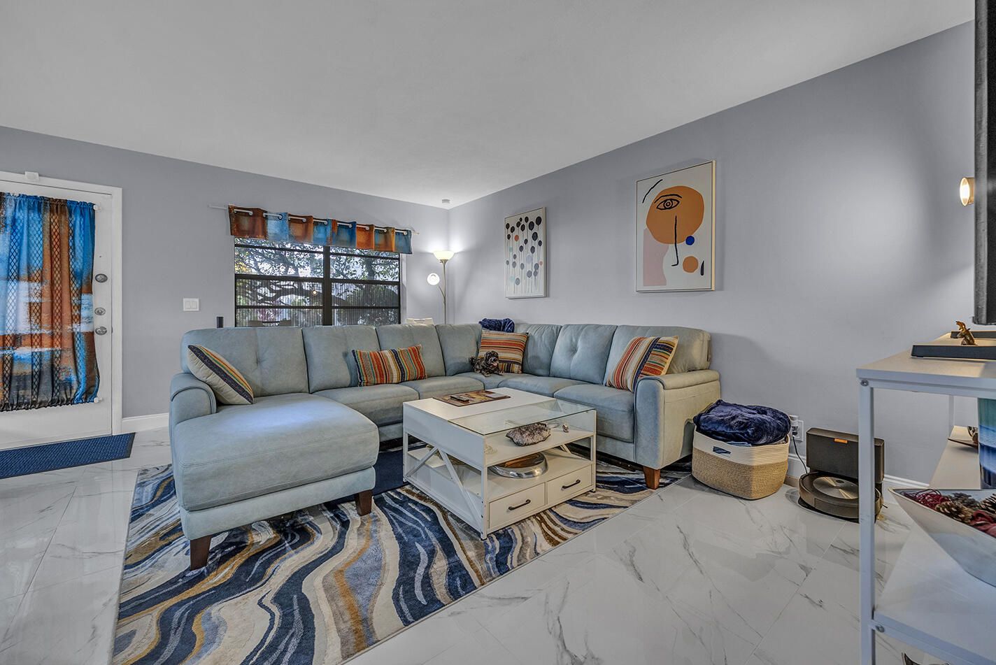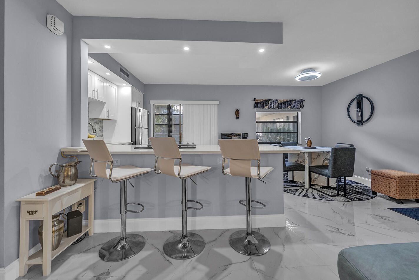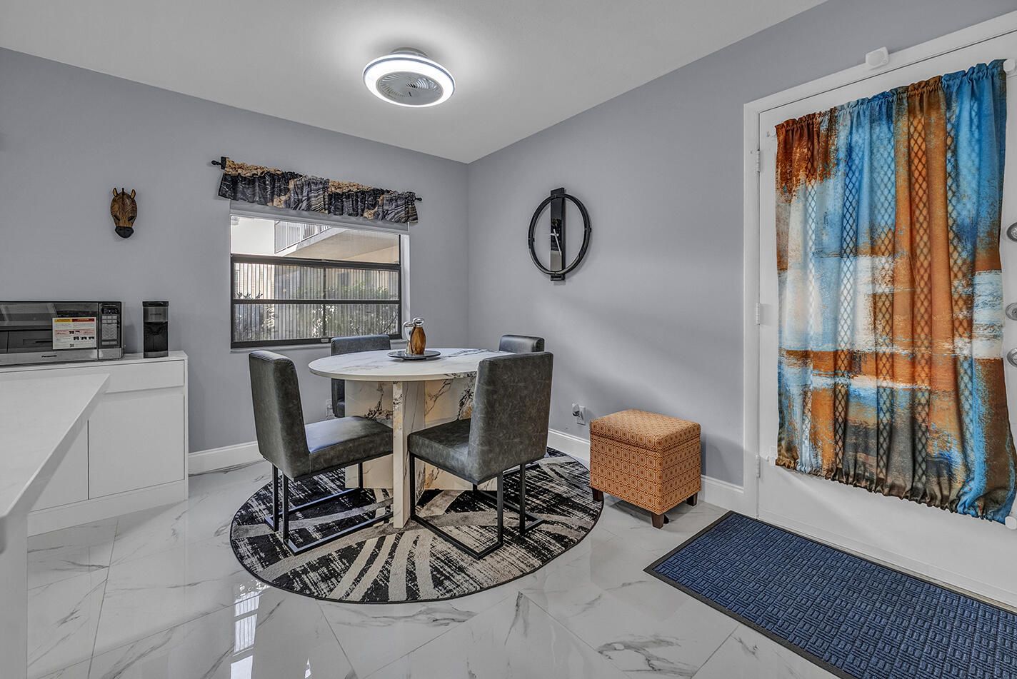 Completely updated first floor 2 bedroom, 2 bath residence in Kings Point. This modern and spacious unit features marble floors throughout and a bright interior with natural light. The kitchen includes white cabinetry, stainless steel appliances, and an open floor plan. The unit also includes an in-unit washer and dryer combo for added convenience. Kings Point residents have access to community amenities including pools, clubhouse, fitness center, social activities and more. Move-in ready home in this amenity-rich community.