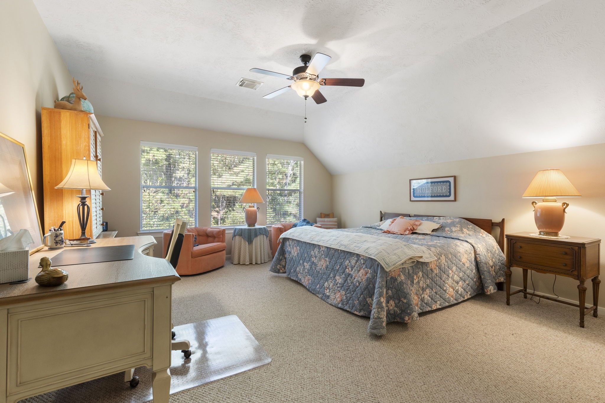 PRICE ADJUSTED!!! LOCATION AND STUNNING! This 55+ community, Windsor Hills, located in The Woodlands, Tx has a new listing! One of the largest floor plans in the subdivision, The Greenbriar, hosts 3 exceptionally large bedrooms with 3.5 full baths plus oversized closets. Backs up to a gorgeous and extremely private greenbelt. Includes large Office, large formal dining, perfect breakfast, gorgeous kitchen, oversized living room, oversized utility and tons of storage. Plantation shutters in the dining, office and living rooms. 2 Primary Bedrooms/full bath/walk in closets down stairs! The 3rd bedroom/bath/walk in closet is equally as large and fabulous as the primaries downstairs and easily could be used as a game room, media or hobby room. Open floor plan with high ceilings. This community offers a clubhouse, pool and tons of social activities.