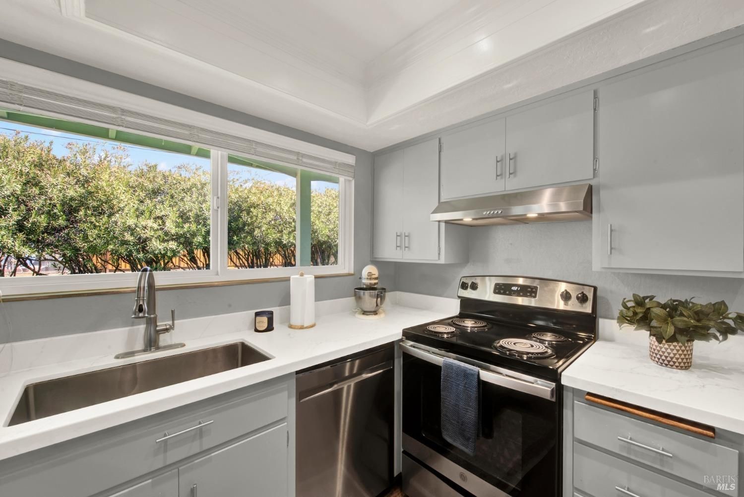 - Dishwasher, Disposal, Free-Standing Electric Range, Range Hood, Microwave