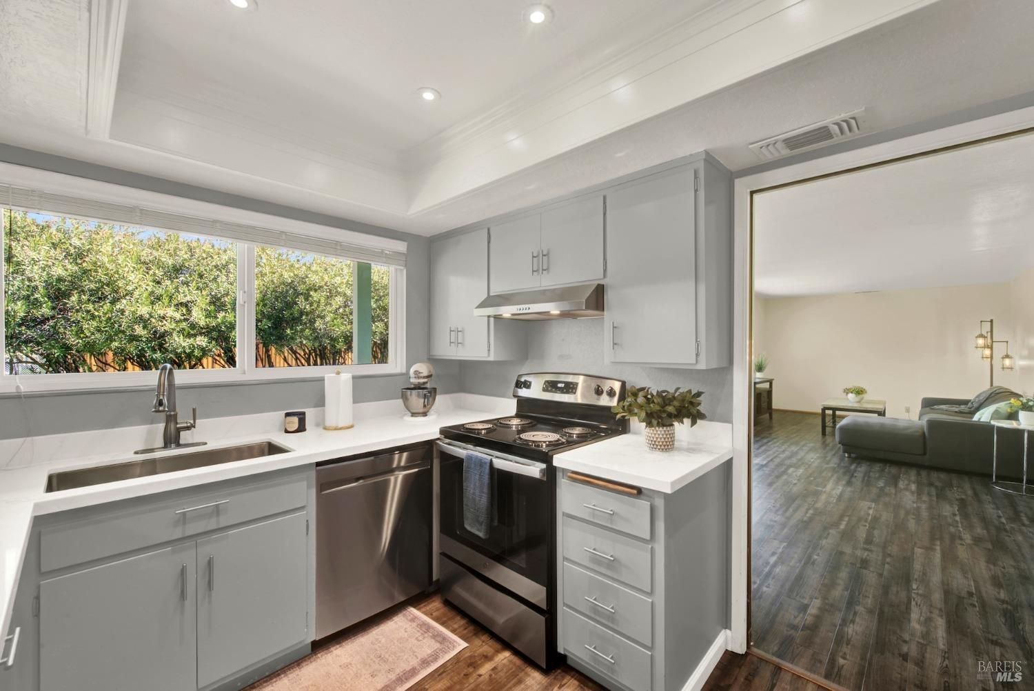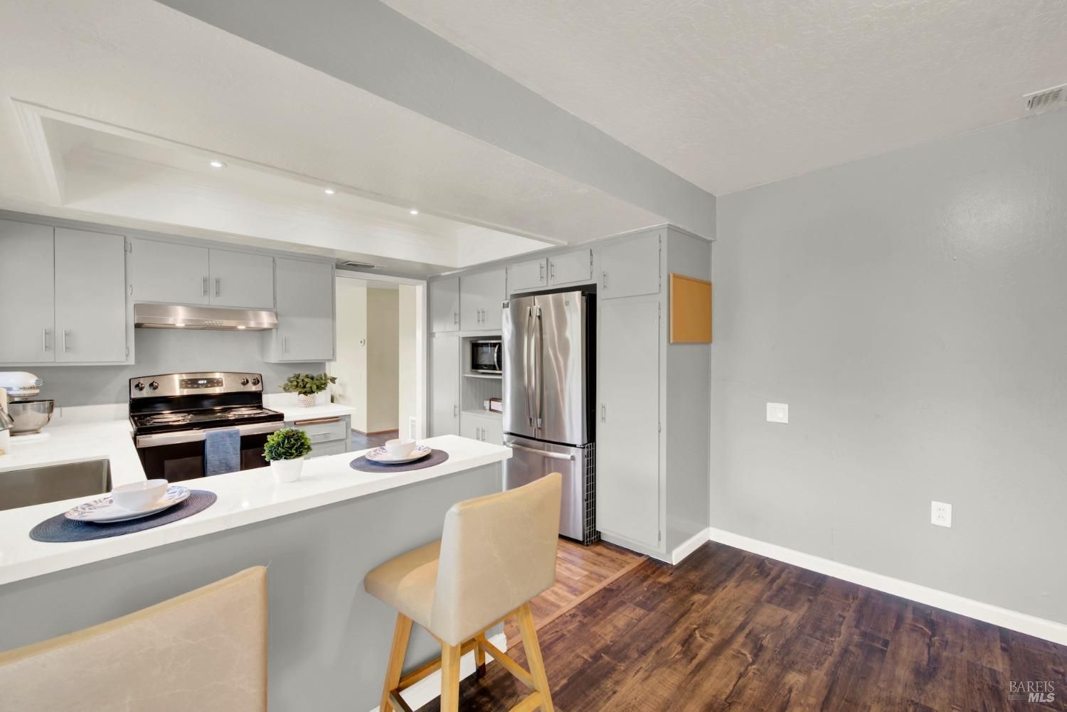WOW! You will love this 2BR 2BA in the Leisure Town Senior Community. Updates includes newer Kitchen with quartz counters & stainless appliances, refurbished bathrooms including the primary with a roll in shower, laminate flooring except for bedrooms, newer windows & HVAC and owned solar including backup battery. Leisure Town Home Association features beautiful common areas including pools, spas, gym, recreation spaces, lawn bowling, & activities. Conveniently located close to I-80, I-505, shopping, hospitals, dining, Travis AFB & more.