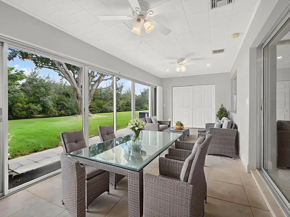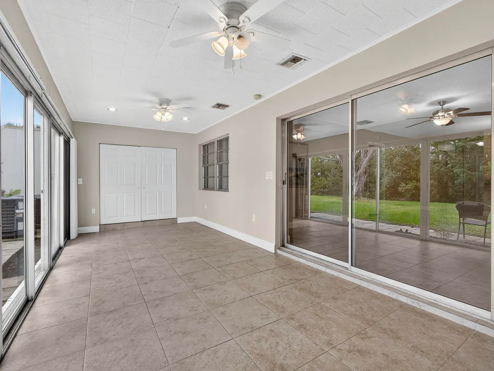 - Entrance Foyer, Split Bedrooms, Florida Room, Living/Dining Room, Window Vertical(s), Primary Downstairs, Separate Shower, Storm Shutters