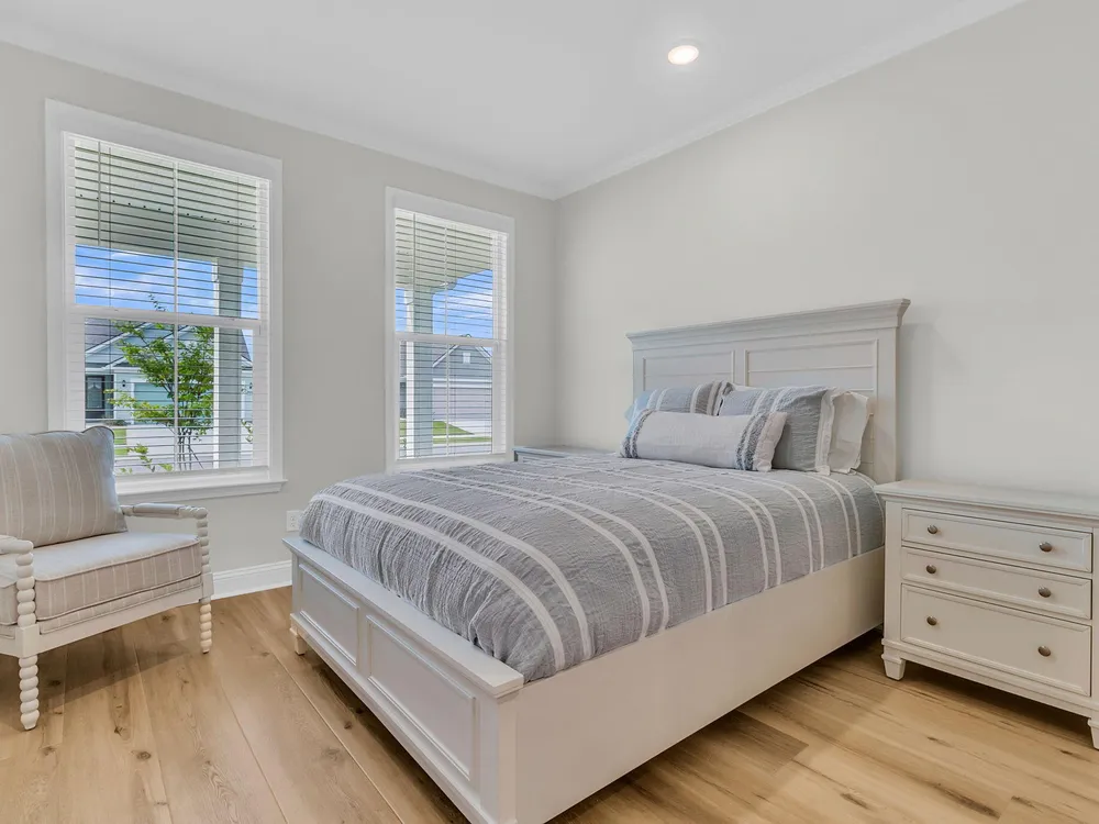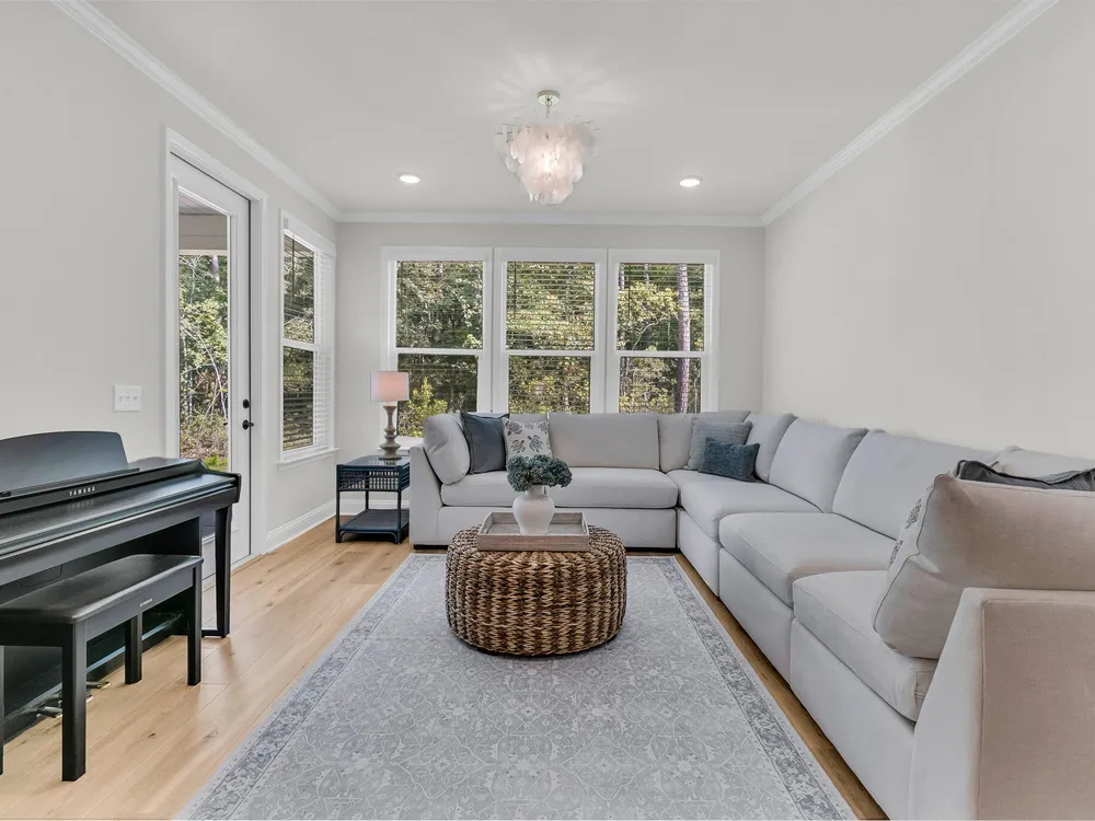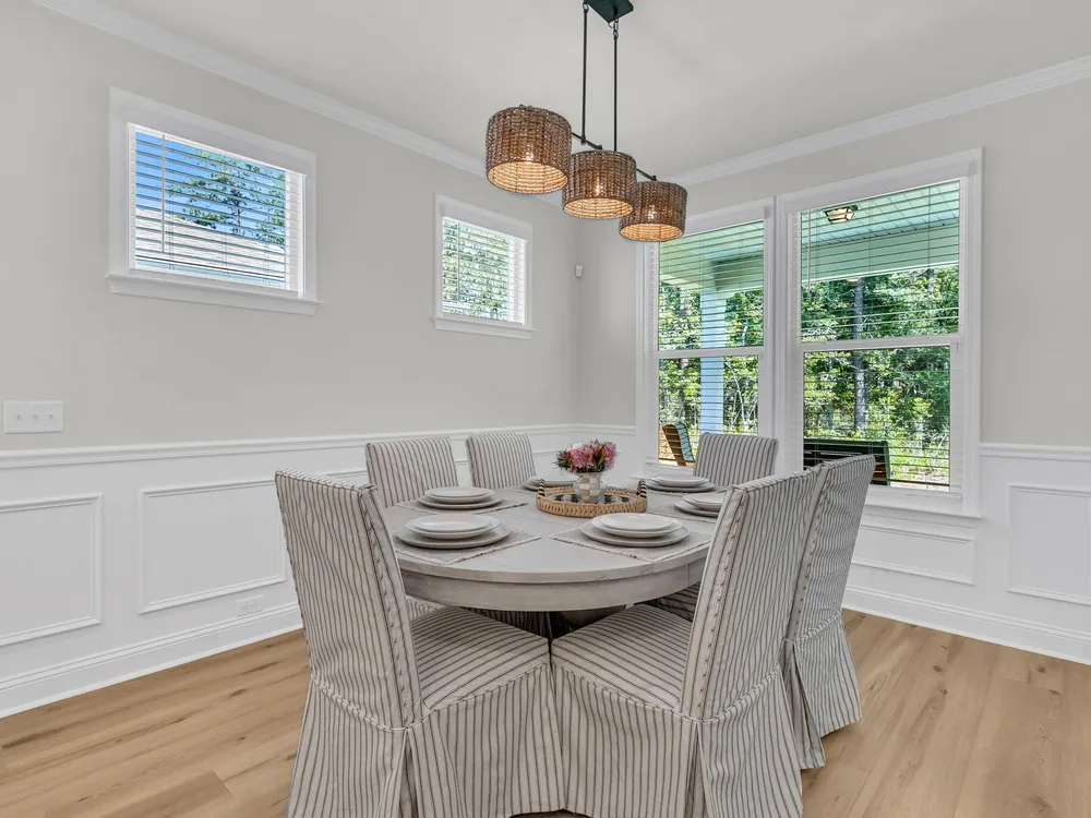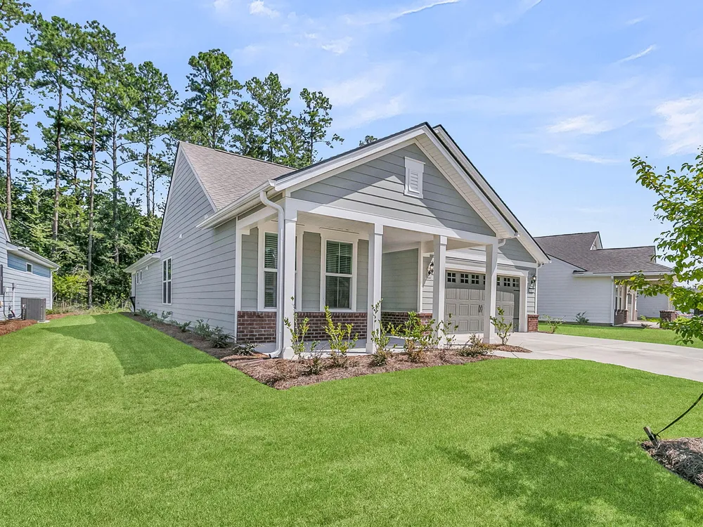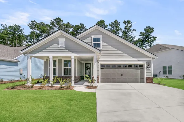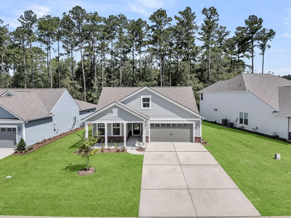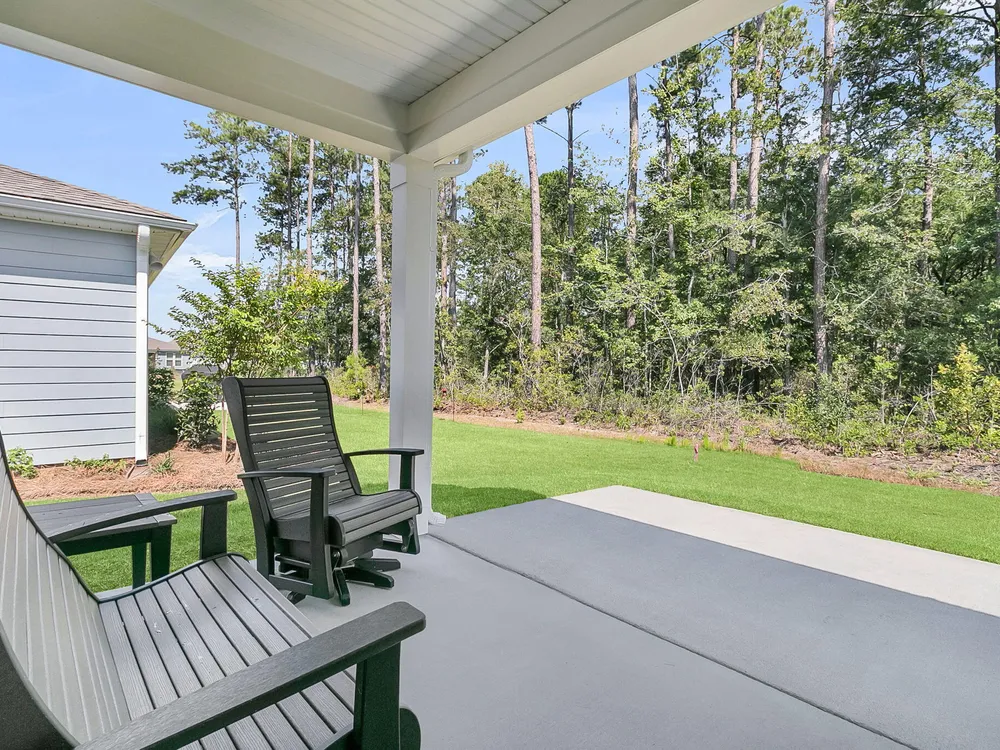 An rare and exciting opportunity to purchase a Prestige model built in 2025! This stunning home shows just like a model. With absolutely no detailed spared and all of the upgrades homeowners are looking for in 2025 you can skip the hassle of the building process and still have all of the desired features you are looking for in a new home. Situated on a private wooded homesite in Charleston's highly desired 55 plus/active adult lifestyle community, Del Webb Nexton! A quick golf cart ride to two brand new grocery stores, many restaurants, shopping, and medical plus just a ten minute drive to historic downtown Summerville and 25 minute drive to downtown Charleston, you will be loving your home and its convenient location! With $165,000 in upgrades this one has it all! A large front........porch with exterior brick detail sets the South Carolina scene! Step inside to a welcoming foyer, and you'll immediately be impressed by this thoughtfully designed layout, trim details, and high-end finishes throughout. Offering 2 bedrooms, 2.5 bathrooms, dual primary suites, an office/den/flex room (with closet and could be used as a 3rd bedroom), sunroom, and covered lanai (could be easily screened-in later). An oversized garage features a 4-foot extension with an extra alcove space in the back for a golf cart, work bench, or extra storage area. This open-concept layout is perfect for entertaining, with a combined kitchen and great room with stately tray ceiling that provides a seamless flow. Luxury Vinyl plank flooring with an impressive plank width of 8.85" runs throughout the main living areas, including the den/library, kitchen, sunroom, primary bedroom and hallways while the baths and laundry are upgraded with stylish 12x24 tile flooring. This gourmet kitchen is a chef's dream, featuring upgraded white and gray cabinetry with dovetail construction and soft close doors and drawers, Quartz countertops, a subway tile backsplash, stainless steel KitchenAid appliances (including gas cooktop with electric range, and built-in oven/microwave), direct vent cabinet hood, upgraded faucet, pendant and under-cabinet lighting, and a spacious pantry. The kitchen overlooks the great room and is adjacent to the dining area with additional chairs and squares trim package. The primary bedroom is tucked away in the back corner of the home, and includes two walk-in closets. The luxurious primary bath features dual sinks with Quartz countertops, a walk-in tiled "super shower" with additional handheld shower head and seat. On the opposite side of the home, the second bedroom offers a true guest suite experience with an attached full bath with Quartz countertops and upgraded tile surround in the tub/shower and could also be used a second primary suite if desired. The light, bright, and airy sunroom leads up outside to a covered lanai and additional patio with wooded views creating your own private oasis. This the ideal space for enjoying your morning coffee, relaxing with a good book, or hosting guests. Back inside off the foyer, you'll find an office/den/flex room with glass French doors. This room features a closet and can be easily designed as a multi-purpose room when friends or family visits. The spacious laundry room is complete with cabinets, a laundry sink, washer/dryer and passthrough door directly from the primary bedroom closet. A built-in "drop zone" is conveniently located as you enter from the garage. The $165,000 in builder upgrades includes a whole house generator pre-wire (please refer to the documents section for a complete list of upgrades). This home is truly move-in ready with all appliances, window treatments, and custom lighting included. The furniture is available for purchase as well. This opportunity is designed for immediate enjoyment of the active adult lifestyle offered at Del Webb Nexton. Prepare to be impressed with Del Webb Nexton's amenity center that can't be beat! With a 26,000 square foot clubhouse, indoor and outdoor pools, fitness studio including yoga/aerobics rooms, card rooms, party rooms/ballroom, outdoor pickleball, tennis, and bocce courts, and kitchen. The fun doesn't stop there; an amenity center expansion is planned for 2026 and will include a gymnasium with indoor pickleball courts, and pool bar/restaurant! Skip the hassle of building and living around new construction. This home also offers the opportunity to purchase barely used designer furniture making your transition even easier! Please schedule your showing today and see for yourself why this home is the perfect place to start your next chapter. You will not be disappointed!