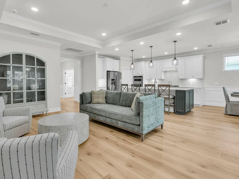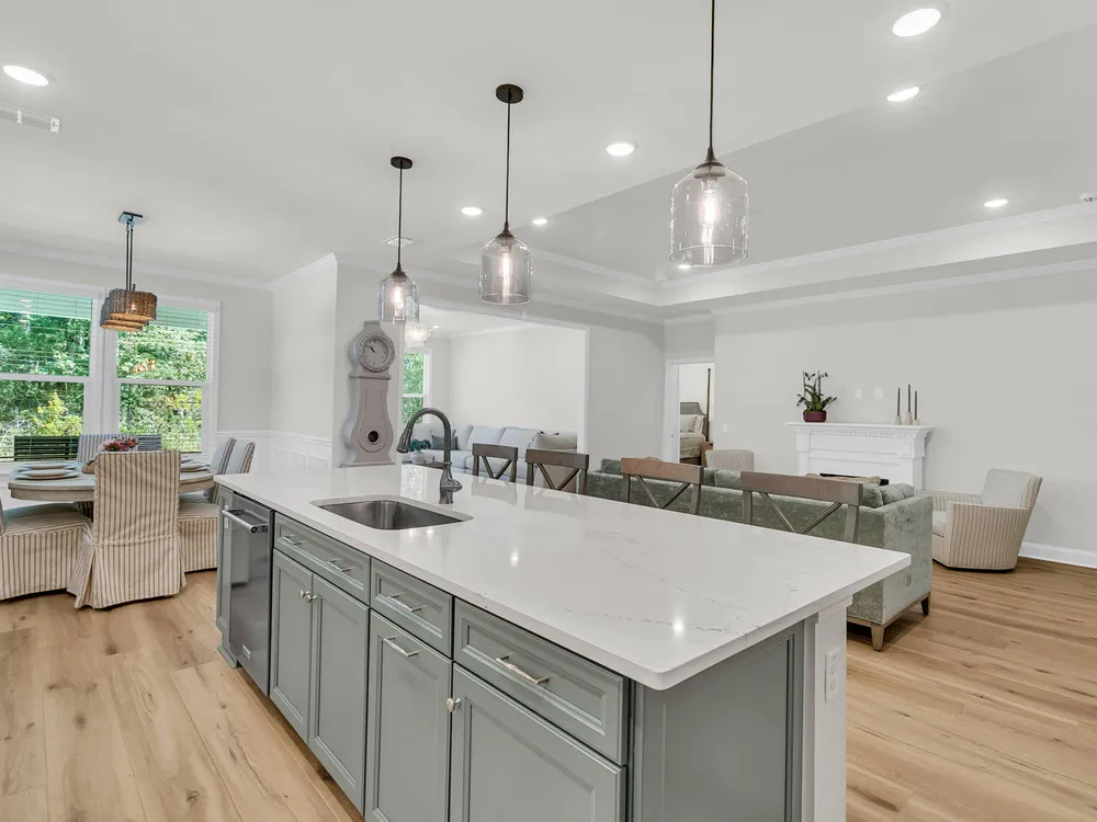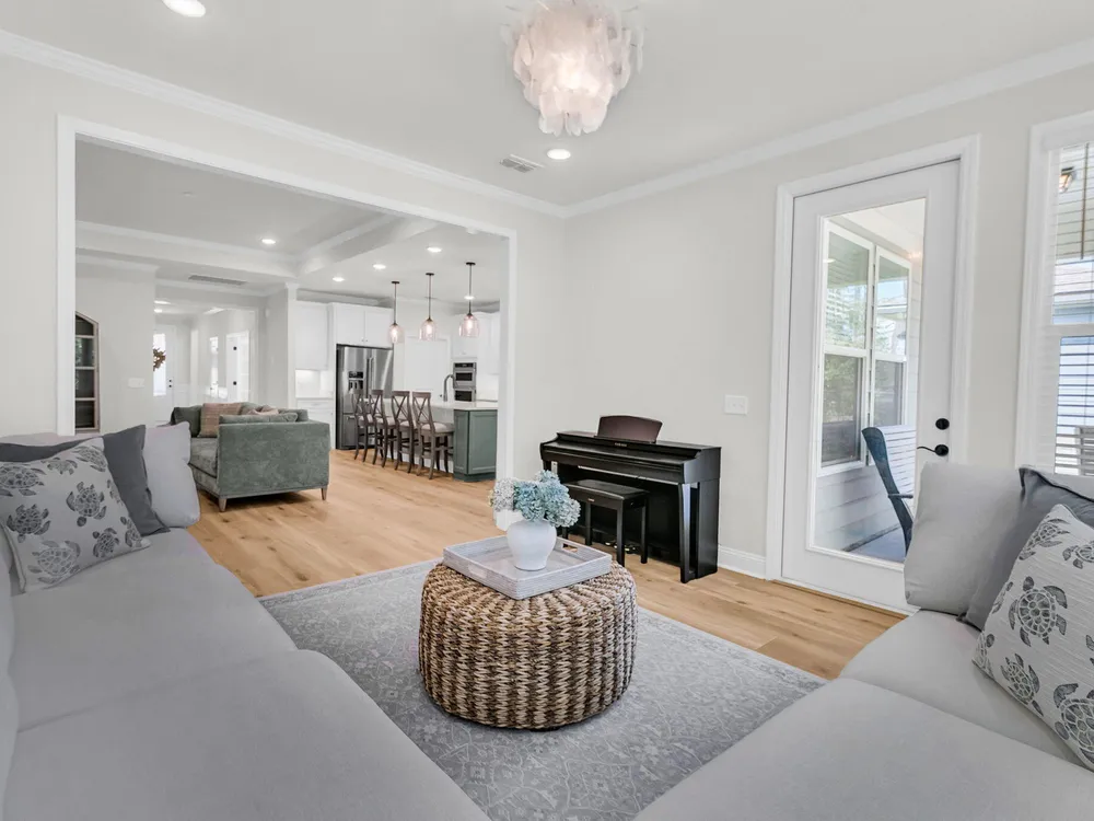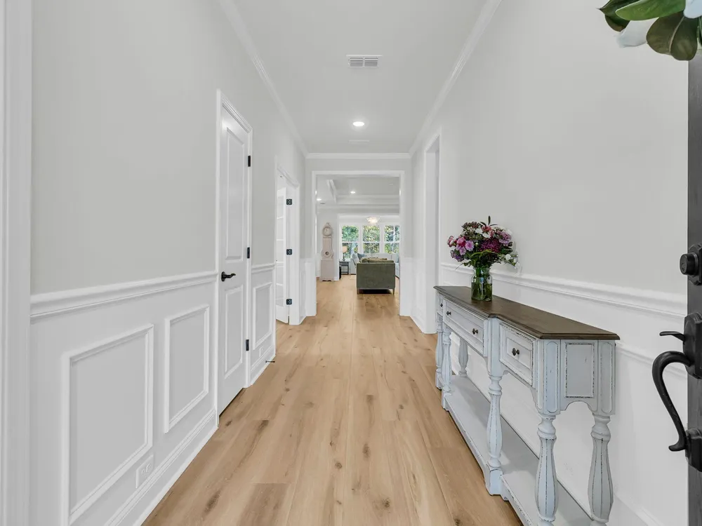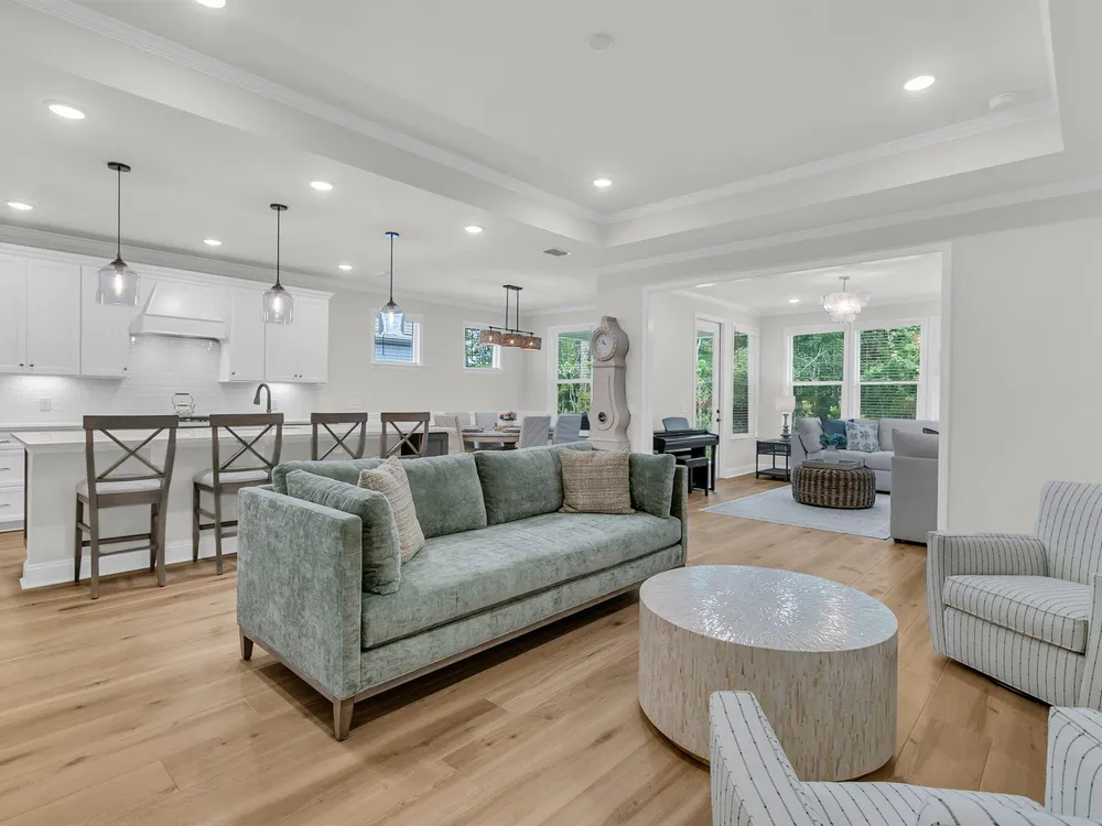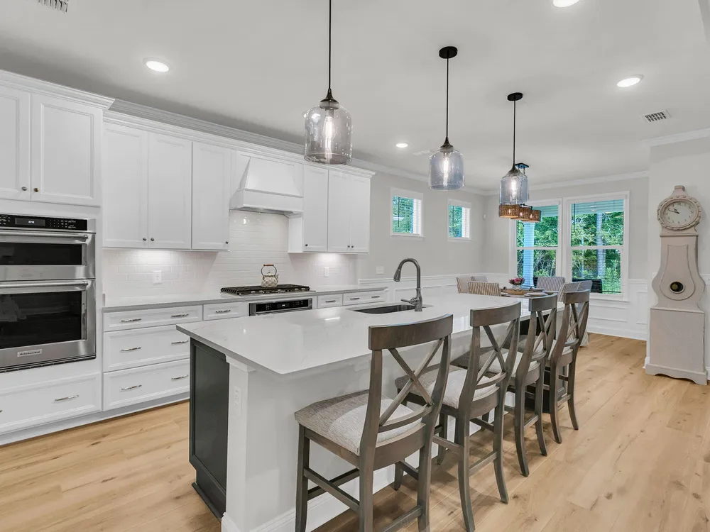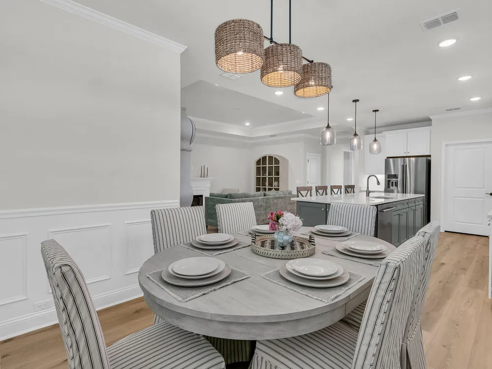 An rare and exciting opportunity to purchase a Prestige model built in 2025! This stunning home shows just like a model. With absolutely no detailed spared and all of the upgrades homeowners are looking for in 2025 you can skip the hassle of the building process and still have all of the desired features you are looking for in a new home. Situated on a private wooded homesite in Charleston's highly desired 55 plus/active adult lifestyle community, Del Webb Nexton! A quick golf cart ride to two brand new grocery stores, many restaurants, shopping, and medical plus just a ten minute drive to historic downtown Summerville and 25 minute drive to downtown Charleston, you will be loving your home and its convenient location! With $165,000 in upgrades this one has it all! A large front........porch with exterior brick detail sets the South Carolina scene! Step inside to a welcoming foyer, and you'll immediately be impressed by this thoughtfully designed layout, trim details, and high-end finishes throughout. Offering 2 bedrooms, 2.5 bathrooms, dual primary suites, an office/den/flex room (with closet and could be used as a 3rd bedroom), sunroom, and covered lanai (could be easily screened-in later). An oversized garage features a 4-foot extension with an extra alcove space in the back for a golf cart, work bench, or extra storage area. This open-concept layout is perfect for entertaining, with a combined kitchen and great room with stately tray ceiling that provides a seamless flow. Luxury Vinyl plank flooring with an impressive plank width of 8.85" runs throughout the main living areas, including the den/library, kitchen, sunroom, primary bedroom and hallways while the baths and laundry are upgraded with stylish 12x24 tile flooring. This gourmet kitchen is a chef's dream, featuring upgraded white and gray cabinetry with dovetail construction and soft close doors and drawers, Quartz countertops, a subway tile backsplash, stainless steel KitchenAid appliances (including gas cooktop with electric range, and built-in oven/microwave), direct vent cabinet hood, upgraded faucet, pendant and under-cabinet lighting, and a spacious pantry. The kitchen overlooks the great room and is adjacent to the dining area with additional chairs and squares trim package. The primary bedroom is tucked away in the back corner of the home, and includes two walk-in closets. The luxurious primary bath features dual sinks with Quartz countertops, a walk-in tiled "super shower" with additional handheld shower head and seat. On the opposite side of the home, the second bedroom offers a true guest suite experience with an attached full bath with Quartz countertops and upgraded tile surround in the tub/shower and could also be used a second primary suite if desired. The light, bright, and airy sunroom leads up outside to a covered lanai and additional patio with wooded views creating your own private oasis. This the ideal space for enjoying your morning coffee, relaxing with a good book, or hosting guests. Back inside off the foyer, you'll find an office/den/flex room with glass French doors. This room features a closet and can be easily designed as a multi-purpose room when friends or family visits. The spacious laundry room is complete with cabinets, a laundry sink, washer/dryer and passthrough door directly from the primary bedroom closet. A built-in "drop zone" is conveniently located as you enter from the garage. The $165,000 in builder upgrades includes a whole house generator pre-wire (please refer to the documents section for a complete list of upgrades). This home is truly move-in ready with all appliances, window treatments, and custom lighting included. The furniture is available for purchase as well. This opportunity is designed for immediate enjoyment of the active adult lifestyle offered at Del Webb Nexton. Prepare to be impressed with Del Webb Nexton's amenity center that can't be beat! With a 26,000 square foot clubhouse, indoor and outdoor pools, fitness studio including yoga/aerobics rooms, card rooms, party rooms/ballroom, outdoor pickleball, tennis, and bocce courts, and kitchen. The fun doesn't stop there; an amenity center expansion is planned for 2026 and will include a gymnasium with indoor pickleball courts, and pool bar/restaurant! Skip the hassle of building and living around new construction. This home also offers the opportunity to purchase barely used designer furniture making your transition even easier! Please schedule your showing today and see for yourself why this home is the perfect place to start your next chapter. You will not be disappointed!