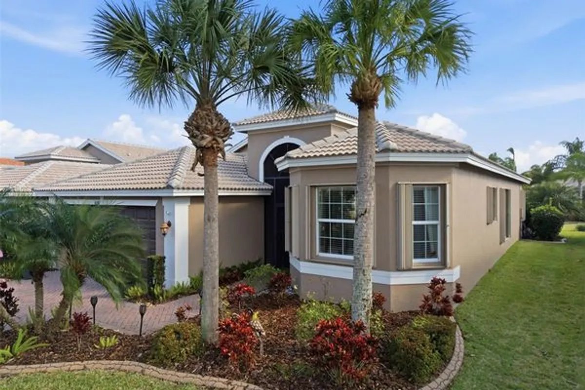Welcome to the popular Florence model by GL Homes, ideally located in the heart of Valencia Lakes, Tampa Bay’s premier 55+ resort-style community. This beautifully maintained home sits on an interior homesite with breathtaking water views and peaceful sunrise exposure. Enjoy Florida living at its finest from your private screened lanai featuring a heated saltwater pool, upgraded pavers, and covered outdoor seating area, perfect for relaxing mornings or entertaining friends. Inside, soaring ceilings and tile flooring throughout the main living areas create a bright, open feel. The spacious kitchen is appointed with granite countertops, full granite backsplash, 42” soft-close maple cabinetry, stainless steel appliances, cabinet pantry, and built-in desk. The primary suite offers lanai access, two walk-in closets, a tray ceiling, and a spa-inspired bath with dual granite vanities, Roman tub, and walk-in shower. Two additional bedrooms provide flexible space for guests or a home office, including one with a bay window and another with double doors. A second bath with granite countertops and a separate laundry room with sink add convenience. Valencia Lakes residents enjoy a 40,000 square foot clubhouse, resort-style pools, fitness center, restaurant, tennis, pickleball, walking trails, live shows, and a wide variety of clubs and activities. Resort-style living, panoramic water views, and a private pool come together to create the Florida lifestyle you have been waiting for.