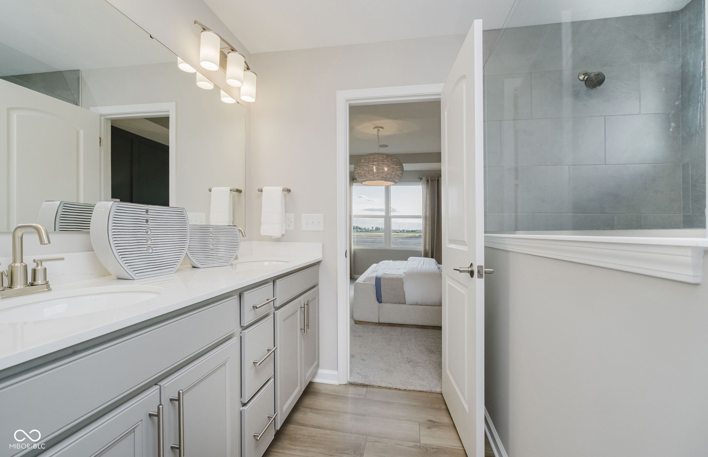 Welcome to the Greenfield model, a thoughtfully designed home in the highly sought-after Parkside at Finch Creek community. Step inside to discover a bright and airy open-concept layout, perfect for entertaining and everyday living. The chef's kitchen is a true showpiece, featuring 42" Stone Gray cabinetry, Carrara Morro Quartz countertops, gas appliances, an oversized island, and a spacious pantry. Overlooking the cozy cafe area and expanded gathering room, complete with a fireplace, this space is designed for effortless hosting and relaxation. The main level also offers a versatile flex room with doors, ideal for a home office, study, or playroom, along with the Pulte Planning Center, a dedicated workspace perfect for managing daily tasks, homework, or household organization. The Everyday Entry provides a convenient drop zone with built-in storage, keeping clutter at bay as you transition from the 3 car garage into the home. Upstairs, retreat to the luxurious owner's suite, boasting a spa-like shower and a generous walk-in closet. Three additional bedrooms all with walk in closets provide ample space, while the enormous second-floor game room offers endless possibilities for recreation and entertainment. A super-laundry room on the second floor adds convenience, making household tasks a breeze. Enjoy top-tier amenities, including a Community Clubhouse with an Expansive Covered Back Deck with Seating Areas, Community Pool, Half-Court Basketball, Two Pickleball Courts, Fully Equipped Fitness Center, Meeting Room Available for Reservation, Indoor Gathering Space Community Prep Kitchen, and an Outdoor Playground. High-speed internet and TV included in the HOA fees, staying connected has never been easier. Just minutes from I-69 and Hamilton Town Center, you'll have easy access to shopping, dining, and entertainment. Experience the perfect balance of community charm and modern convenience at Parkside at Finch Creek. Photos of similar model.