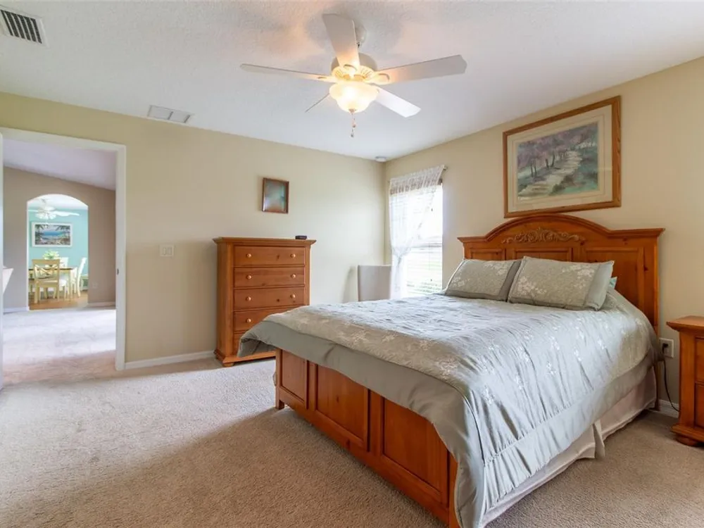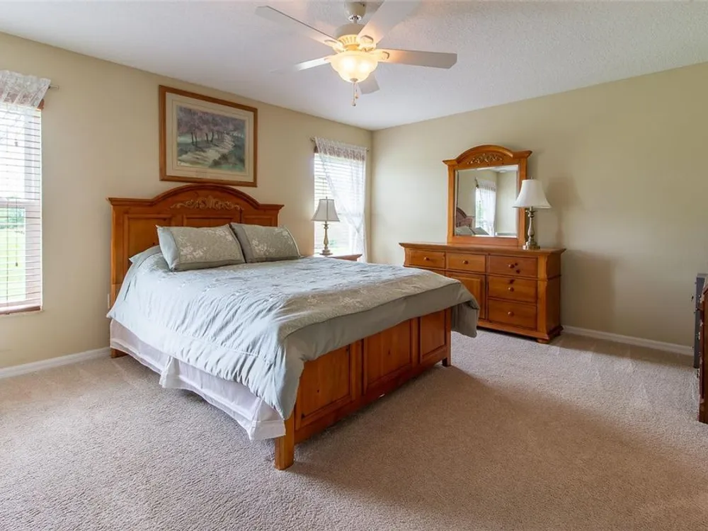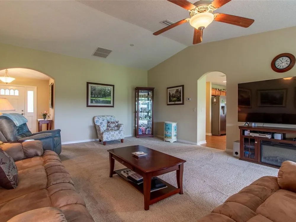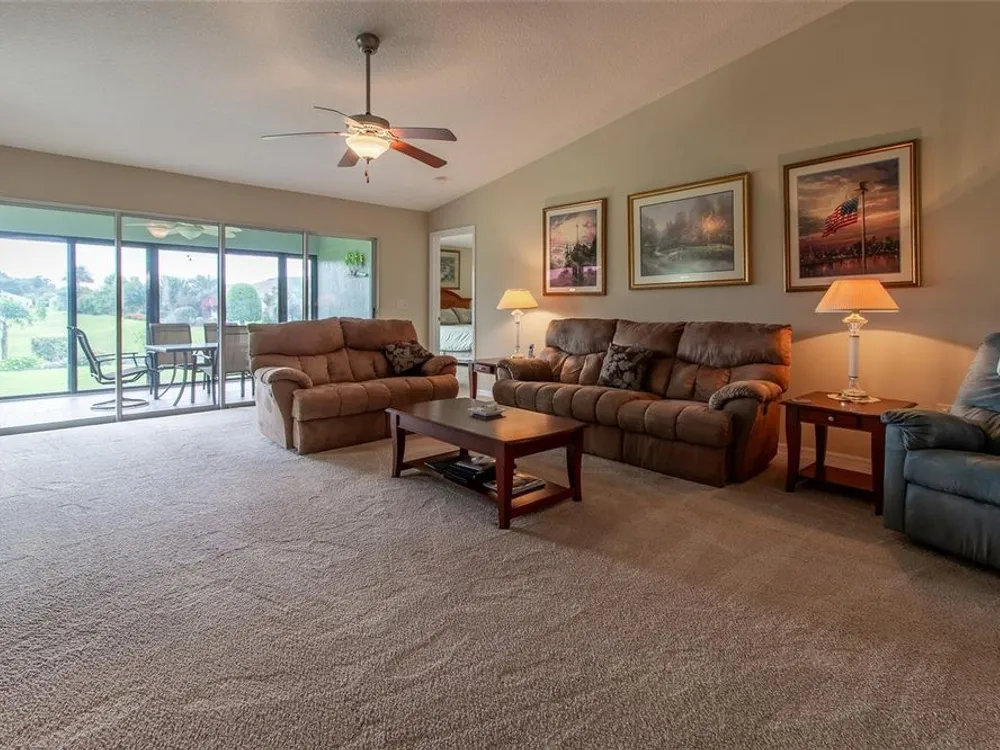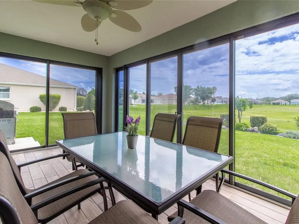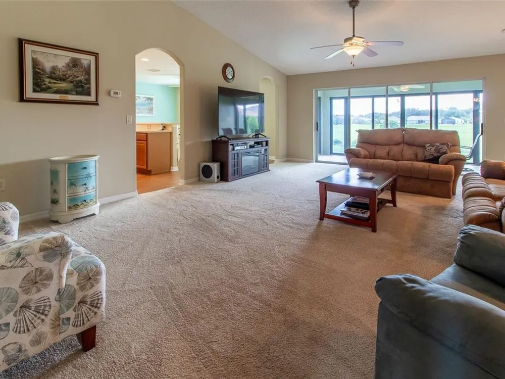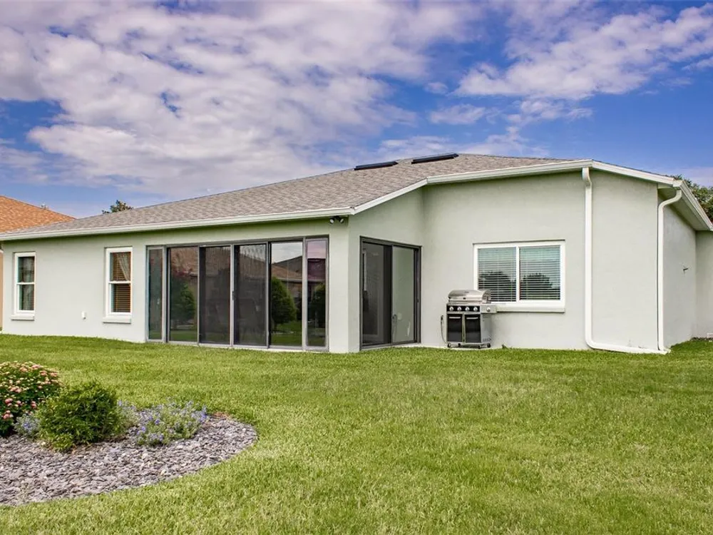 PRICE IMPROVEMENT. Experience the comfort, quality, and elegance of this exceptional modified Monteverde model, ideally situated on an oversized, private lot and featuring a highly sought-after full three-car garage. This meticulously maintained 3-bedroom, 2-bath residence offers a harmonious blend of tasteful design and functional upgrades making it truly move-in ready. From the moment you arrive, the home’s curb appeal is undeniable. A decorative stamped concrete driveway, and lush manicured landscaping set the tone for what awaits inside. Step through the welcoming tiled foyer into an expansive great room that seamlessly flows into a fully enclosed, tiled lanai. This light-filled space offers flexible year-round living ideal for entertaining and relaxing. The thoughtfully designed kitchen combines practicality and style with Corian countertops, stainless steel appliances, an oversized pantry, and a solar tube that fills the space with natural light. The generous breakfast bar opens to a spacious eat-in dining area, complete with picturesque backyard views and plenty of room for additional furniture like a buffet or china cabinet. Throughout the home, quality finishes and features reflect the care and attention given to every detail. Upgrades include new Pella windows with built-in hideaway screens, a brand-new washer and dryer, ceiling fans with lights and remotes, and a full central vacuum system with retractable hose. Additional features such as a water softener, utility sink, rain gutter system, solar attic fan, and upgraded attic insulation enhance both the comfort and efficiency of the home, offering long-term value and peace of mind. Outdoors, a private BBQ patio and a producing grapefruit tree create the perfect setting for your Florida mornings. The expansive primary suite offers the space and comfort you desire, with room for a king-sized bed and full furniture set. The en-suite bathroom is well-appointed with dual cultured marble vanities, a Roman-style walk-in shower, a private water closet, and two spacious walk-in closets for ample storage. Includes a transferrable AC and appliances home warranty. This home offers the rare combination of elegance, functionality, and peaceful privacy, all within a desirable 55+ community. Located just moments from the community’s outstanding amenities, including a championship golf course, resort-style pool, fitness center, clubhouse, on-site restaurant, and year-round social events. This home delivers not just comfort, but an active lifestyle to love. The HOA fee includes Spectrum Bronze Tier 1 TV and 100 Mbps internet, cable, lawn mowing and edging, trash service, and gated security giving you peace of mind. RV/Boat storage included for a onetime fee and deposit. Residents also enjoy a $30 monthly restaurant credit, adding extra convenience and flexibility to take full advantage of the lifestyle and amenities that SummerGlen features. ***SOME FURNISHINGS and GOLF CART CAN BE INCLUDED. *** Don’t miss your opportunity to own this beautifully upgraded home, schedule your private showing today.