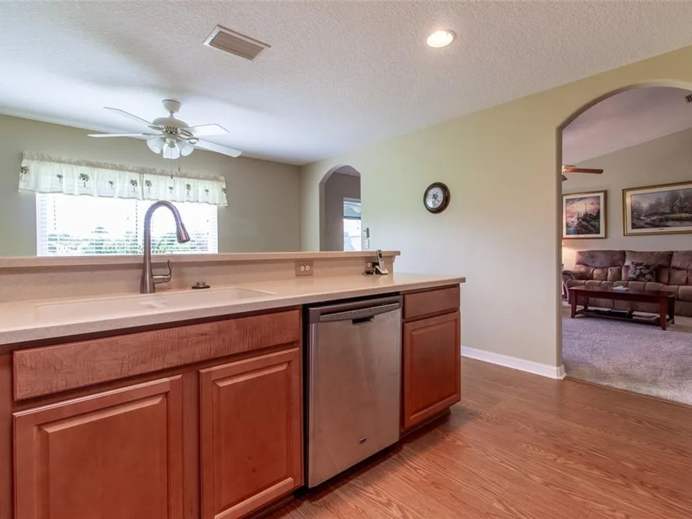 - Ceiling Fan(s), Central Vacuum, Eat-in Kitchen, High Ceilings, Living/Dining Room, Solid Surface Counters, Solid-Wood Cabinets, Walk-In Closet(s), Window Treatments