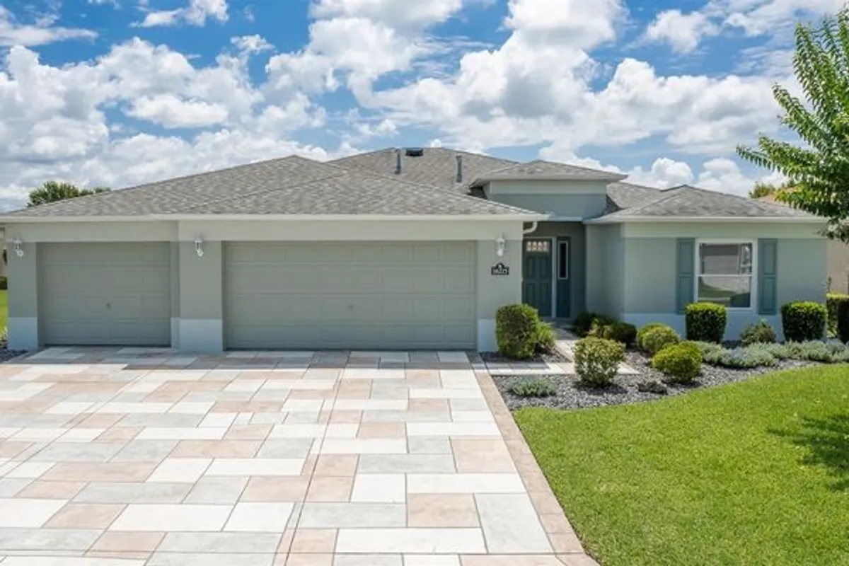 MONTEVERDE model home located in 55+ SummerGlen community. This home is 1,859 sqft ideally situated on an OVERSIZED LOT with NO REAR NEIGHBORS featuring a REAL 3-CAR GARAGE. This one owner home with no pets has a rear easterly exposure providing beautiful morning sunrises and the opportunity to enjoy views of launches from Cape Canaveral. This meticulously maintained 3-BEDROOM, 2-BATH residence is truly move-in ready. A decorative stamped concrete driveway, and lush manicured landscaping set the tone for what awaits inside. Step into an expansive great room that seamlessly flows into a fully enclosed, tiled lanai with full length sliders. Offering flexible year-round living ideal for entertaining and relaxing. The kitchen features Corian countertops, stainless steel appliances, an oversized pantry. Throughout the home, quality finishes and features reflect the care and attention given to every detail. Upgrades include NEW PELLA WINDOWS (2024) with built-in hideaway screens, NEW WASHER AND DRYER (2024), ceiling fans with lights and remotes, and a FULL CENTRAL VACCUUM SYSTEM with retractable hose. The home offers a layout ideal for multi-generational living in a community that allows adult household members to reside without time-limited occupancy requirements. Additional features such as a water softener, utility sink, rain gutter system, solar attic fan, and upgraded attic insulation enhance both the comfort and efficiency of the home. Outdoors, a private BBQ patio and a producing grapefruit tree create the perfect setting for your Florida mornings. The en-suite bathroom is well-appointed with dual cultured marble vanities, a Roman-style walk-in shower, a private water closet, and two spacious walk-in closets for ample storage. Includes a CURRENT TRANSFERABLE AC and APPLIANCE WARRANTY, PLUS 1 ADDITIONAL YEAR. Living in SummerGlen means access to an unmatched lineup of amenities including an 18-hole golf course, on site restaurant, resort style pool and hot tub, tennis and pickleball courts, softball field, dog park, RV storage, and a clubhouse with a fitness center and nonstop activities. The low monthly HOA of $390 includes guard gated security, Spectrum Bronze Tier 1 cable, 100 Mbps high speed internet, full lawn care including mowing, edging, and blowing, trash and recycling pickup, and access to RV or boat storage for a one-time fee. Residents also receive a $30 monthly credit at the community restaurant, which is basically dinner on the house. If you are looking for golf course living, flexibility, value, and one of Ocala’s most active and social 55+ communities, THIS IS IT.