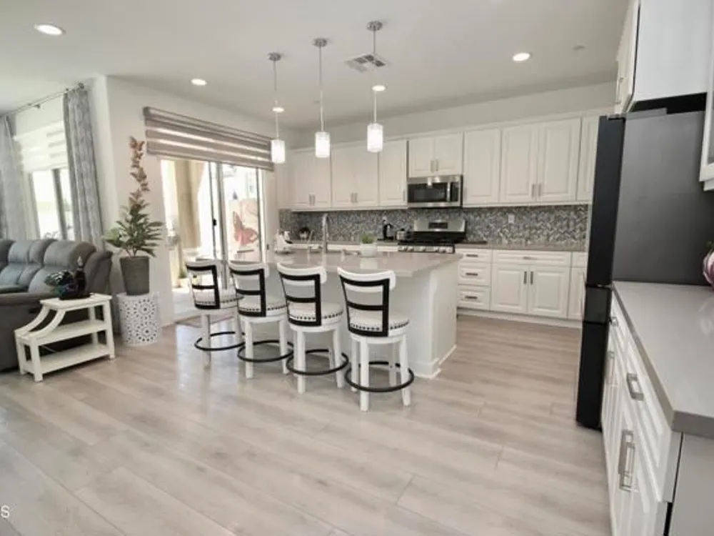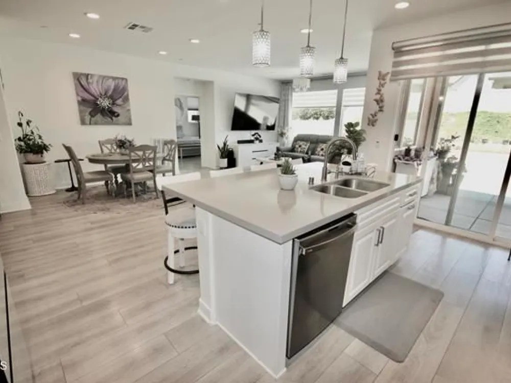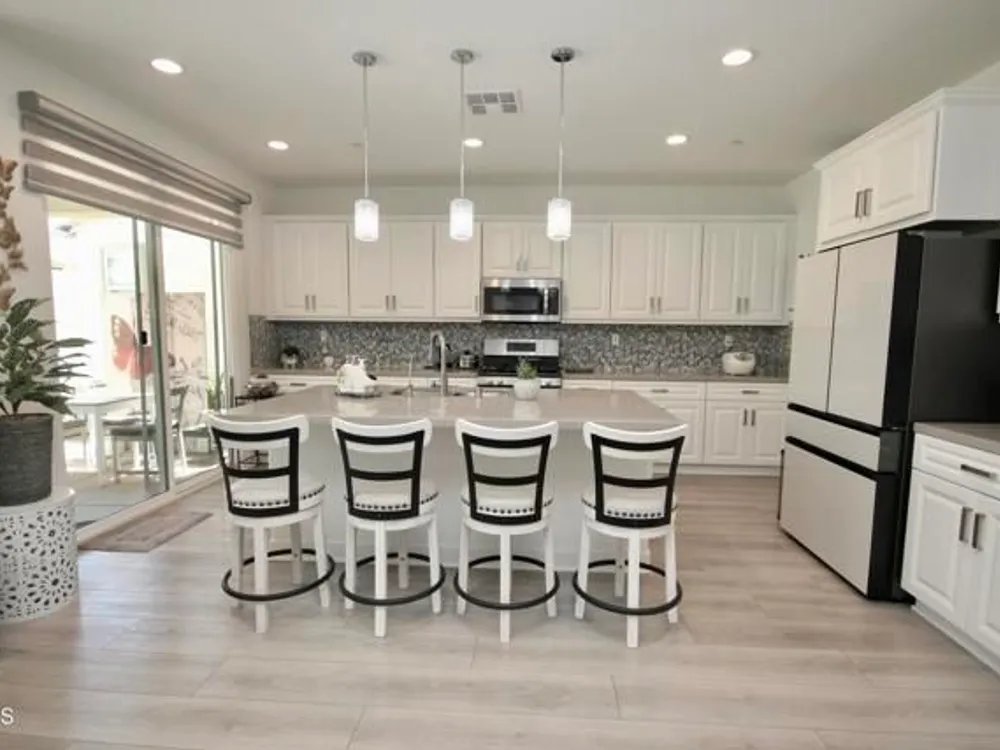 PRICE REDUCED!! Don't Miss Out on residing in the lap of luxury in this exquisite 55+ gated community of Altis, featuring one of the largest lots in the neighborhood. Boasting an expansive and airy floor plan, this home exudes a sense of openness and brightness, complemented by a peek-a-boo view of the surrounding mountains. The seller has meticulously upgraded every aspect of the home, including custom window treatments, exquisite light fixtures, beautiful wood-like flooring, and much more. The gourmet island kitchen features a breakfast bar and is equipped with a walk-in pantry, pendant lighting, upgraded glass cabinets, and stainless steel appliances, all of which are ready for preparing home-cooked meals. The home also offers a tankless water heater, solar system, upgraded garage door, reverse osmosis, and a charming covered patio for relaxation. In addition to its exceptional amenities, the community offers a 'decked-out adult playground' that provides a resort-style pool, outdoor kitchen, a DIY bar with liquor locker storage, billiards lounge, 5 pickleball courts, a flow studio for yoga, a state-of-the-art Fitness Club, a year-round heated lap and therapy pool, poolside cabanas, and a wellness room perfect for a massage. An exceptional value for an active lifestyle resort living offering unparalleled amenities!