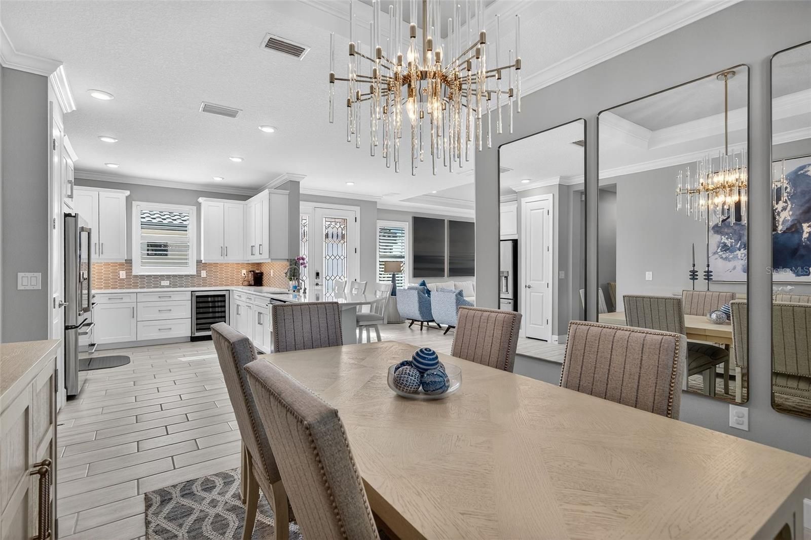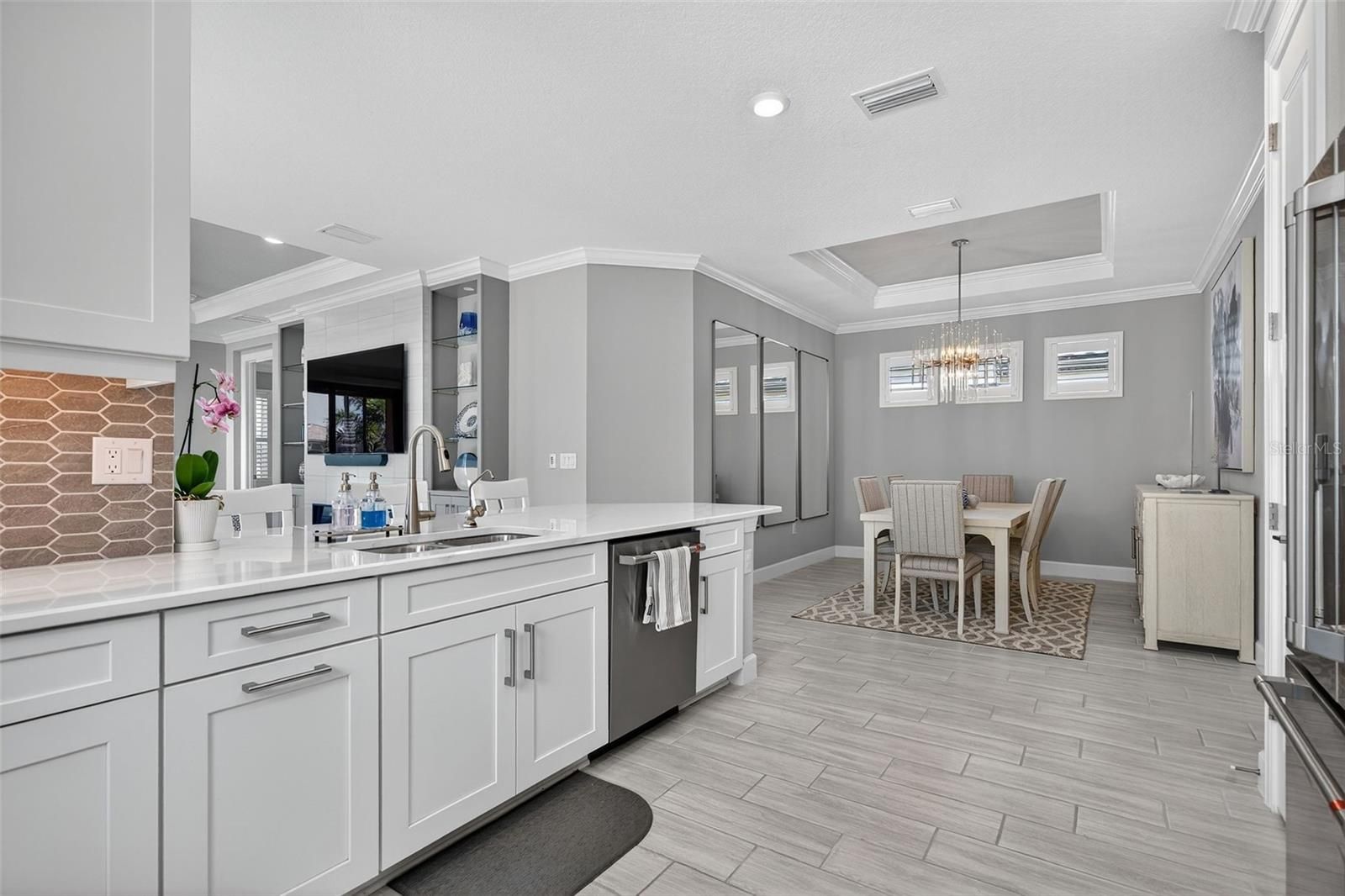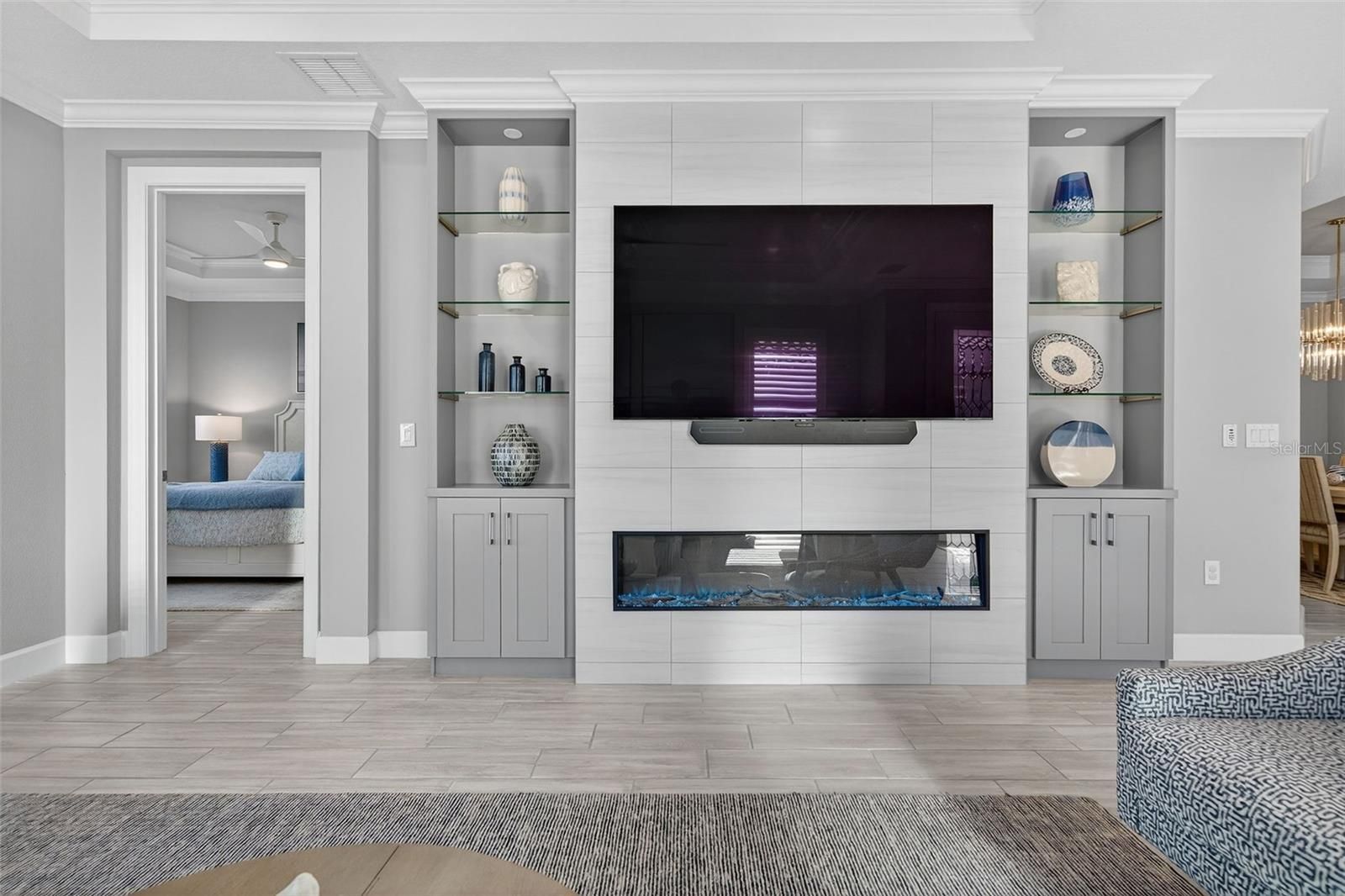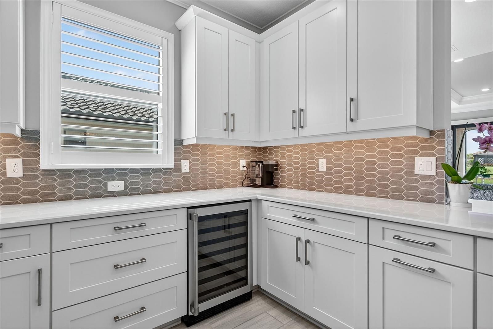 Extremely Upgraded, Golf-deeded, water view Arezzo! A refined expression of resort-inspired luxury awaits at 16221 Fortezza Drive, perfectly positioned on a tranquil lakefront homesite within the coveted Esplanade at Azario. Thoughtfully enhanced with premium upgrades throughout, this impeccably curated residence delivers a seamless blend of timeless modern design, smart-home functionality, and an amenity-rich golf community lifestyle—complete with ample space to add a custom pool overlooking sparkling water views. From the moment you arrive, architectural sophistication sets the tone. High tray ceilings adorned with custom crown molding, plank tile flooring throughout, plantation shutters, and expansive hurricane-impact windows create a bright, airy ambiance that feels both polished and welcoming. The open-concept great room is anchored by a sleek electric fireplace, enhanced by motorized shades, offering effortless comfort and elevated design for everyday living and entertaining alike. The chef-inspired kitchen is a true showpiece, featuring Café Performance appliances, crown molding atop custom cabinetry, LED under-cabinet lighting, refined countertops, and a built-in wine refrigerator—perfectly suited for hosting gatherings that flow seamlessly into the dining and living spaces. Oversized sliders and French doors with custom shades lead to the expansive extended lanai, finished with pavers and an extended screen enclosure, creating an exceptional indoor-outdoor living experience. Outdoors, the custom-designed kitchen—complete with a built-in grill, pizza oven, and refrigerator—sets the stage for unforgettable alfresco dining, sunset cocktails, and entertaining against serene lake views. Professionally designed path lighting enhances the atmosphere, while the generous backyard offers abundant room to design your dream pool and spa. The thoughtfully designed floor plan includes three spacious bedrooms, each outfitted with custom-built closet systems, and two luxurious bathrooms featuring spa-inspired finishes. A versatile office/den with upgraded French doors provides flexibility for a home office, private retreat, or easily functions as a fourth bedroom. A spacious laundry room with abundant cabinetry and counter space further enhances everyday convenience. Additional premium features include a whole-home filtration and water softener system, whole-house surge protector, generator, alarm system with A/C and heat control, and extensive garage upgrades—epoxy flooring, custom closet storage, wall-mounted racks, and an extended garage—delivering both form and function at every turn. Residents of Esplanade at Azario enjoy a premier golf community lifestyle, offering championship golf, resort-style pools, wellness and fitness amenities, tennis, pickleball, on-site dining, and a vibrant social calendar—all within one of Bradenton’s most desirable addresses.