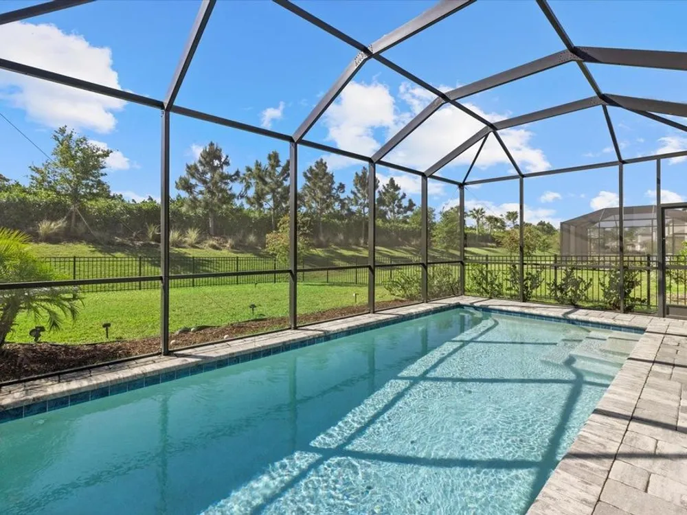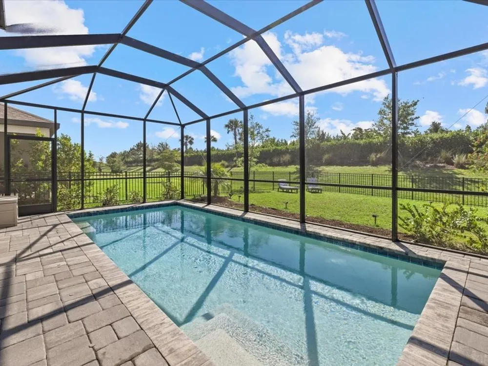 Welcome to your new beginning at Park East at Azario, an enchanting 4-bedroom, 3.5-bathroom, pool home nestled in the heart of Lakewood Ranch. This isn't just a house; it's the backdrop for your next chapter, a sanctuary where elegance and comfort meet. Step inside and discover the magic of soaring ceilings and sun-drenched spaces. The open floor plan invites you to move effortlessly from room to room, creating a seamless flow for daily life and entertaining. The main floor features a versatile den, perfect for your dedicated home office or a quiet study. The first-floor primary suite is a true escape, a peaceful retreat designed for ultimate relaxation. The spa-like ensuite bathroom, with its dual sinks and expansive walk-in shower, promises to elevate your daily routine. Upstairs, a spacious loft offers a flexible space for a media room or playroom, while the additional bedrooms provide serene comfort. One bedroom has its own private bath, and the other two share a full bathroom, ensuring everyone has their own space. At the heart of the home lies the show-stopping kitchen, a true culinary haven. Adorned with crisp white cabinetry and a stylish breakfast bar, this is where laughter, conversation, and memories will be made. Outside, your private oasis awaits. The stunning pool and fully fenced yard are a perfect setting for endless summer barbecues, family fun, and quiet evenings. Just imagine unwinding after a long day as the sky explodes with the colors of a breathtaking Lakewood Ranch sunset, right in your own backyard. The expanded driveway provides ample space for guests, making hosting a breeze. Beyond your front door, the Park East at Azario community is a playground for all ages. Enjoy resort-style amenities including a sparkling community pool, volleyball and basketball courts, two dog parks, a sports field, and a playground. As part of the #1 best-selling community in the U.S., you'll enjoy a lifestyle where top-notch schools (including the new Lake Manatee VPK-8th grade building opened 2025-2026), premier shopping, dining, and world-class golf are all just moments away. With quick access to I-75, the vibrant energy of Lakewood Ranch Main Street, Waterside, and the famous Gulf Coast beaches are all within easy reach. This is your chance to seize the extraordinary. Your dream home awaits—contact us today to schedule your private tour and begin your new adventure in Lakewood Ranch.