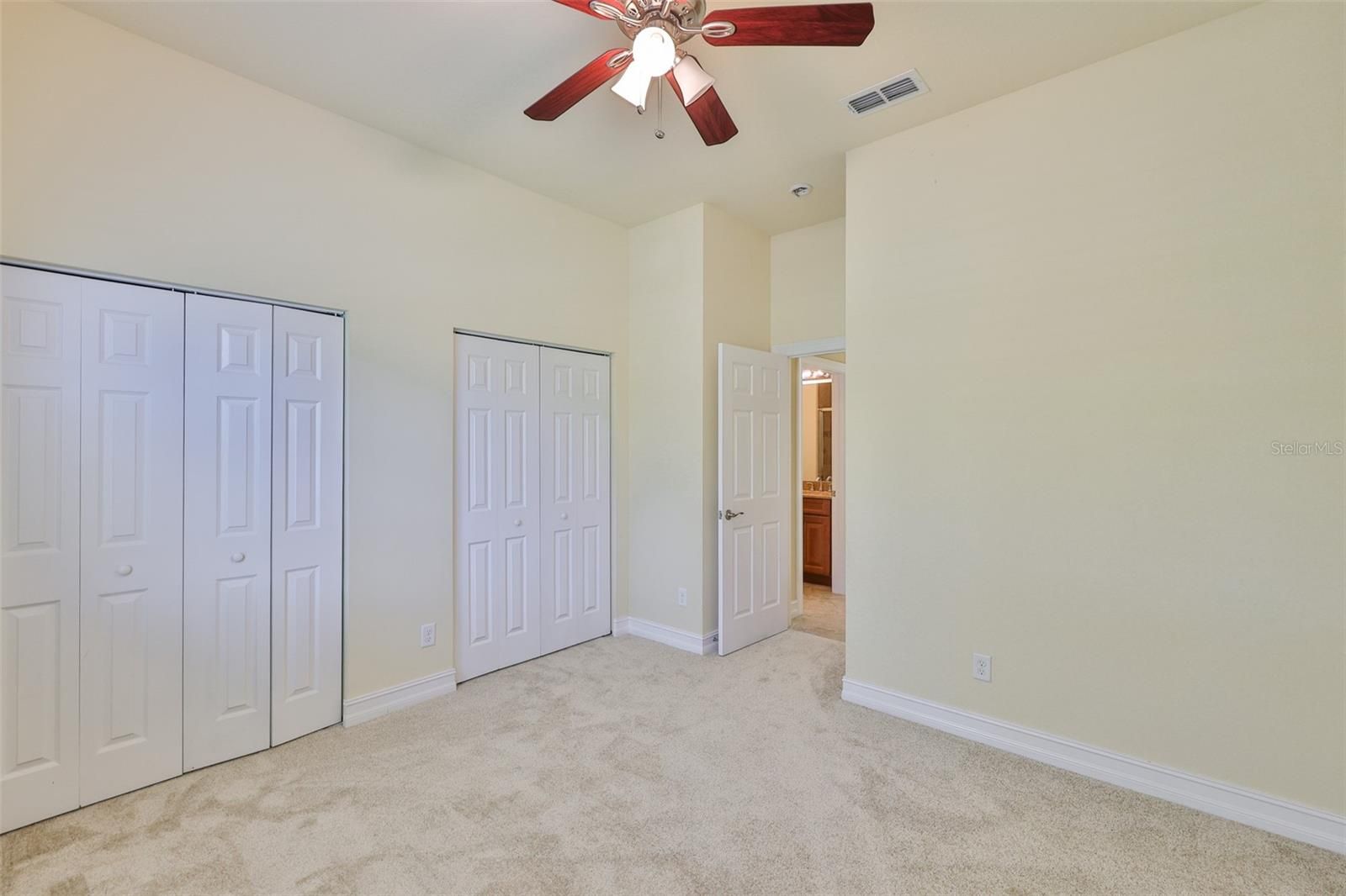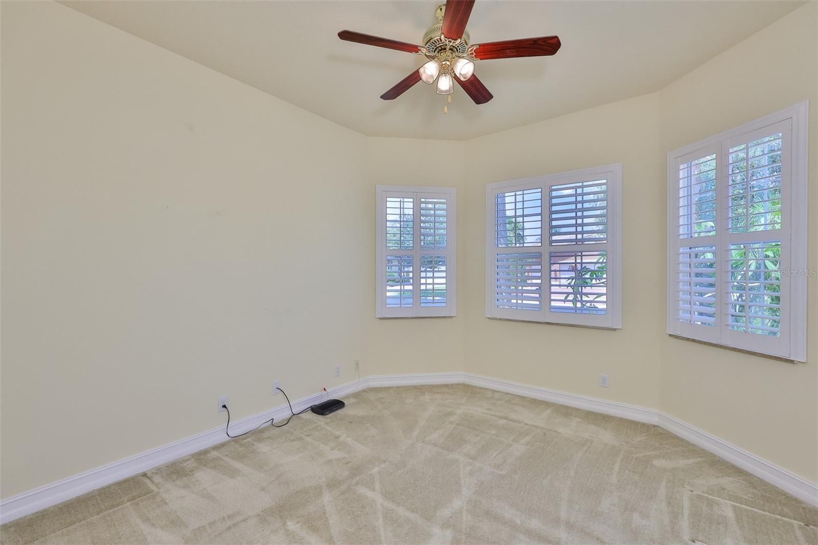 - Built-in Features, Ceiling Fan(s), Eat-in Kitchen, Kitchen/Family Room Combo, Main Level Primary, Split Bedrooms, Stone Counters, Thermostat, Walk-In Closet(s), Window Treatments