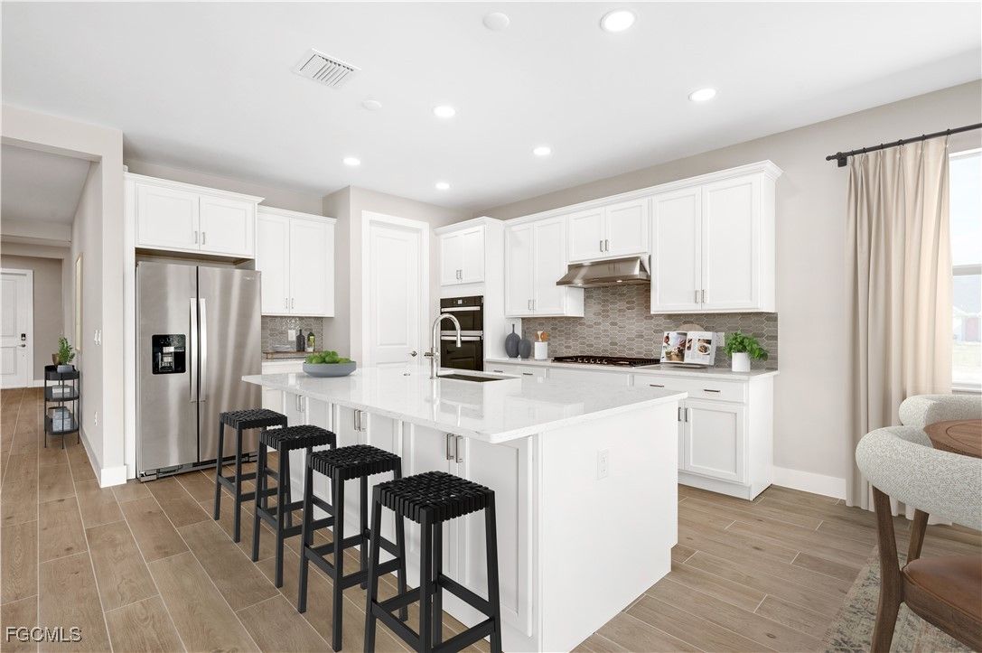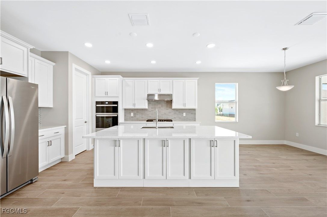 Stunning New Construction Waterfront Home in Babcock Ranch – Move-In Ready! Experience luxury lakefront living at its finest in this brand-new, beautifully crafted home located in the highly sought-after, active 55+ community of Babcock Ranch. Featuring breathtaking eastern lake views, this move-in-ready home showcases an expansive outdoor oasis with a sparkling pool, spa, and oversized covered lanai—perfect for sunrise coffees and serene evenings. Step inside to a spacious, open-concept floor plan designed for both entertaining and everyday comfort. Gorgeous tile flooring flows throughout, complemented by a gourmet kitchen that is a chef’s dream—featuring quartz countertops, a full suite of stainless steel appliances, a gas cooktop, and a generous island with bar seating. Impact-resistant windows and doors provide safety, style, and energy efficiency. Retreat to the luxurious primary suite with a spa-like bathroom boasting a walk-in rainfall shower, dual vanities, and a large walk-in closet. Additional highlights include Jack-and-Jill guest bedrooms, a versatile flex space for a home office or den, and a massive 3-car garage for all your storage needs. Enjoy the benefits of new construction with a builder warranty and cutting-edge energy-efficient features. Residents of this vibrant 55+ community enjoy exclusive access to a private amenity center with a full-time lifestyle director, fitness facilities, resort-style pool, pickleball courts, social events, and more. Live the lifestyle you’ve been waiting for—schedule your private tour today! Please see MLS supplements for interior design selections and floor plan layout. Lot 4606.