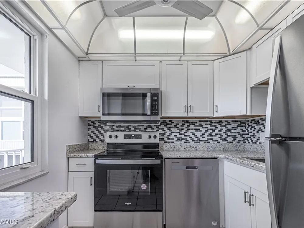 Make this condo your next home!! This 2 bedroom, 2 bathroom condo has been completely updated. Brand new kitchen with white shake cabinets, granite counter tops, title backsplash and new stainless steel applicances. Bathrooms have updated lights and vanities with walk-in showers. The flooring throughout the unit is new luxury vinyl except in bath and hall where there is tile. No Carpet here. Impact resistant windows throughout. The lanai offers a place to relax and watch your neighbors on the golf course and a large storage closets. CAR PORT SPACE NO. 25 INCLUDED. In this condo you are steps away from one of the six pools in the community. Easy to show, come and take a look at this unit. Seven Lakes is an active 55+ community where you can be as active has you chose. Golf course is bundled golf, No Green Fees or Trail Fees, 6 Tennis Courts, Pickle Ball, Bocce, and Shuffleboard for your outdoor activities. Some other amenities include Billiards, Library, Exercise Room, Wood Shop, Craft and Card Rooms, a Large Auditorium that hosts Dinners and Dances & Much More++***Wonderful Full Time Staff includes a Recreation Department that organizes a huge variety of events. Dances, Socials, Live Music of all kinds, Parties, Movies, Outings. You haven't seen a community quite like this one!! Come by the On-Site Sales Office across from the Bell Tower Shops in Fort Myers. Pro Shop, Restaurant and Bar, Impeccable Grounds & Golf Course. Lots of opportunity to stay involved here! Gated, Patrolled Guard Gate manned 24 hours.