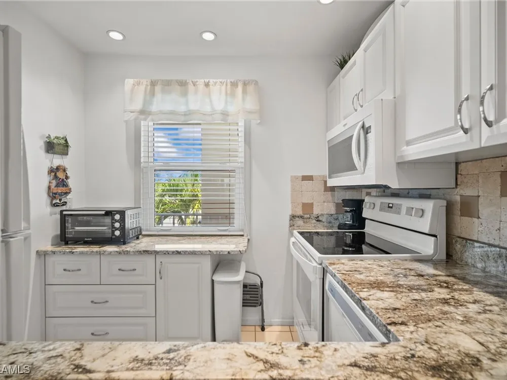 Furnished 2 bedroom 1 bathroom Condo where you can move right in!! Unit has remodeled kitchen with new white cabinets, granite countertops and tiled back splash. Appliances are Whirlpool and were installed in 2022 and A/C and Hot Water Heater are 2023. Very clean and neat Condo with pull out couch for additional guests. Lanai is screened with plex glass sliders. Where you can set and relax and enjoy the beautiful sunsets!! The bathroom has a new vanity with plenty of storage and the walk-in shower has seamless glass doors. Impact resistance windows in the bedrooms and kitchen. The master bedroom closets have been updated with shelves and hanging for plenty of storage. Seven Lakes is an active 55+ community is plenty of amenities and activities. Seven Lakes Community offers Bundled Golf, 6 Tennis Courts, 6 Heated Pools, Billiards, Wood Shop, Hobby & Crafts Room. Exercise Room, Lapidary, Awesome Library! Full Time Recreation Department Puts Out Calendar of Events in Bi-Weekly Newsletter. Auditorium Hosting Lots of Fun Happenings Too. Private Restaurant & Bar Has Weekly Events like Karaoke and Trivia, Theme Dinners & Happy Hours. Condo fees cover your internet, cable, water, sewer, trash removal, lawn maintenance. Start Living the Seven Lakes Lifestyle!