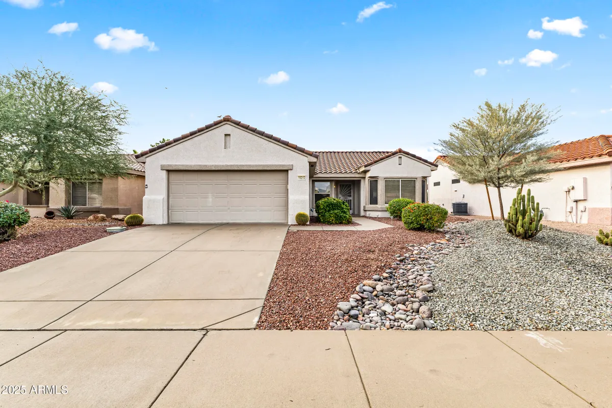 Discover the popular Willow floorplan by Del Webb, located in the desirable 45+ Active Adult Community of The Grand in Surprise, AZ. This well-maintained 2 bedroom, 2 bathroom home offers 1,183 sq. ft. of comfortable living with thoughtful features throughout. Recent updates include a newer roof, new HVAC system, and new water heater, providing added peace of mind for the next homeowner. Inside, you'll find a bright kitchen with a bay window breakfast nook, and all appliances are included. The indoor laundry room includes the washer and dryer. Spacious living and dining rooms offer an open and inviting layout with direct access to the backyard through the sliding patio door. The spacious primary suite features another bay window, a walk-in closet, and an accessible walk-in shower in the primary bath. The guest bathroom includes a full tub/shower combo, perfect for visitors. The low-maintenance backyard includes a covered patio, mature citrus tree, and a gas stub for a BBQ, ideal for enjoying Arizona outdoor living. The extended 2-car garage offers built-in cabinets and a workbench for additional storage and organization. With major systems already updated and room for your personal touches, this home offers exceptional value in one of the West Valley's premier communities.
