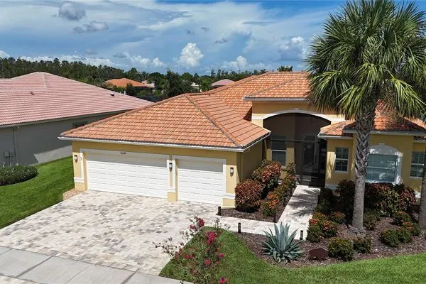 Last appraised for $625,000. Price REDUCED for a quick sale! Captivating Home in Valencia Lakes - A 55+ Resort-Style Haven! Welcome to your dream retreat in the heart of Valencia Lakes! This stunning 3 bedroom, 2 bathroom home boasts breathtaking water views that greet you upon entry. The spacious kitchen seamlessly flows into the living area, perfect for entertaining, while a cozy sitting room offers a serene escape. Step outside to your expansive screened-in lanai, recently upgraded to provide the ideal space for outdoor gatherings, all overlooking a picturesque pond. Inside, enjoy the elegance of large tile floors, a generous master suite with dual vanity sinks, and thoughtfully designed custom closets. Recent enhancements include modern over and under cabinet LED lighting, new ceiling fans, and fresh interior paint ensuring a bright and inviting atmosphere. The AC is only 2 years old, and a new dishwasher and built-in oven means you can relax and enjoy your new home without worry. Additional updates include new driveway pavers, exterior paint, garage floors professionally epoxied, custom window treatments in the living, dining room and eating area, new landscaping, grab bars in the shower and a reverse osmosis water filter. Nestled within one of the most vibrant 55+ communities in the Greater Tampa Bay area, Valencia Lakes offers a resort-style lifestyle with a 40,000 sq. ft. clubhouse, 24-hour fitness center, multiple pools, tennis courts, bistro, pickleball, bocce ball, live shows, arts and crafts, cooking classes, walking paths , numerous clubs and activities to keep you engaged. Don’t miss the chance to experience this active lifestyle – schedule your tour today!