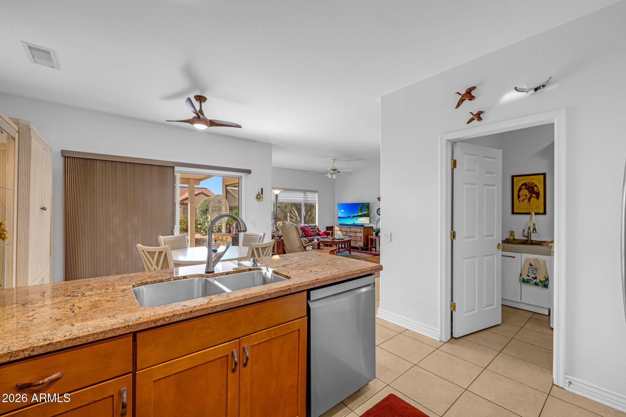 Extensively updated & truly move-in ready, this desirable Kiva floor plan offers 2 bedrooms, 2 baths, 2 walk-in closets, & a bay window in the spacious primary suite. The interior showcases stainless kitchen appliances, granite countertops, French door refrigerator, 2024 dishwasher and 2025 range. Additional enhancements include a touch-control kitchen faucet, new fan & lighting, silhouette shade, new carpet in the primary bedroom, updated LED lighting, new mirrors & lighting in both baths & hot water recirculation pump for added efficiency. The extended garage features a new wi-fi enabled door opener, LED lighting & a built-in workbench. Major improvements include a 2019 AC, 2019 Furnace & 2023 roof underlayment. The backyard offers a private setting, creating an ideal space for relaxing.