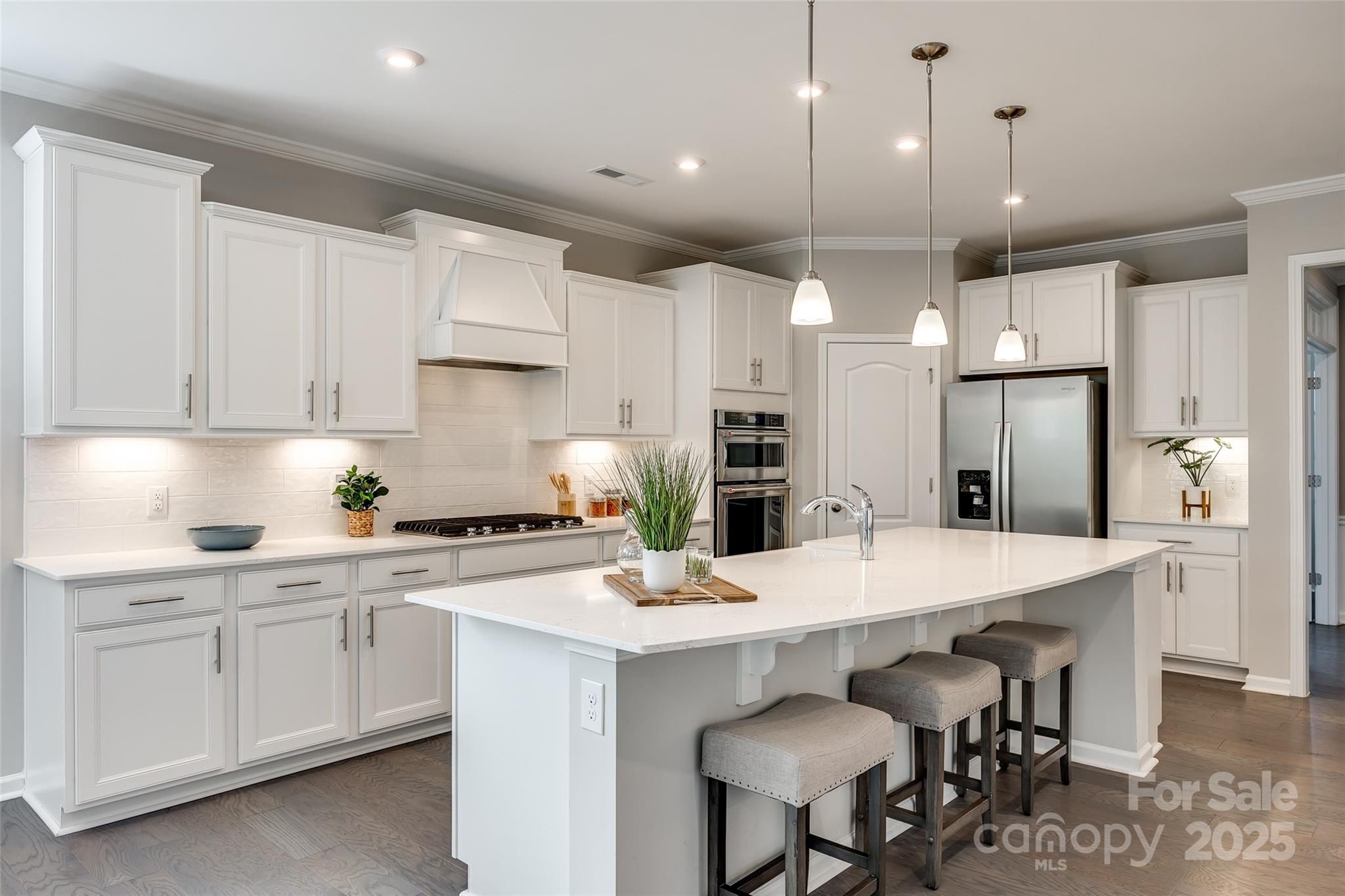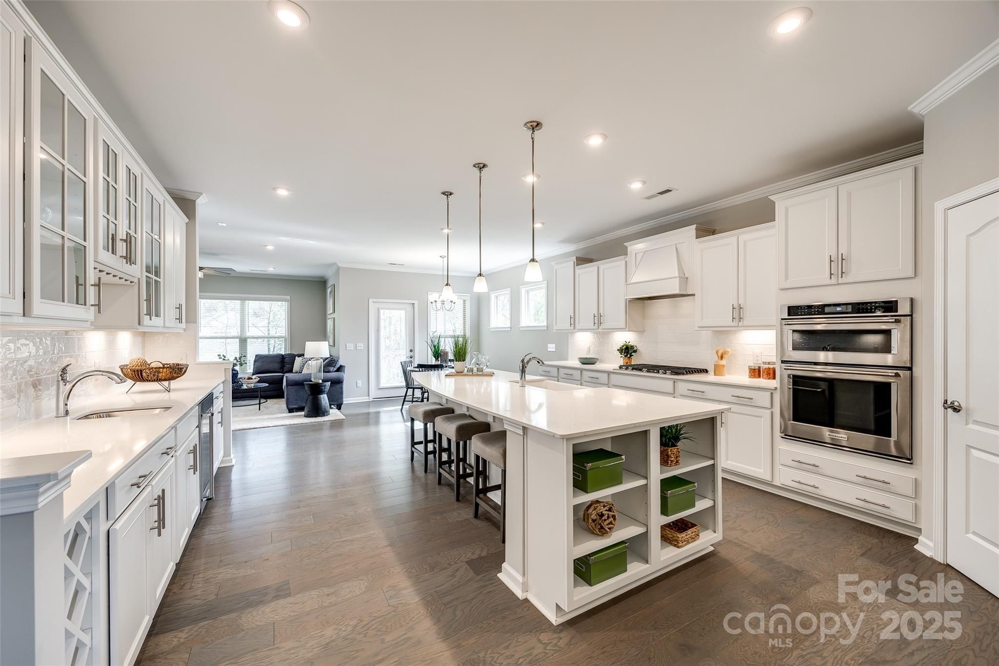 - Bar Fridge, Convection Oven, Dishwasher, Disposal, ENERGY STAR Qualified Refrigerator, Exhaust Hood, Gas Cooktop, Microwave, Self Cleaning Oven, Tankless Water Heater, Wall Oven, Wine Refrigerator