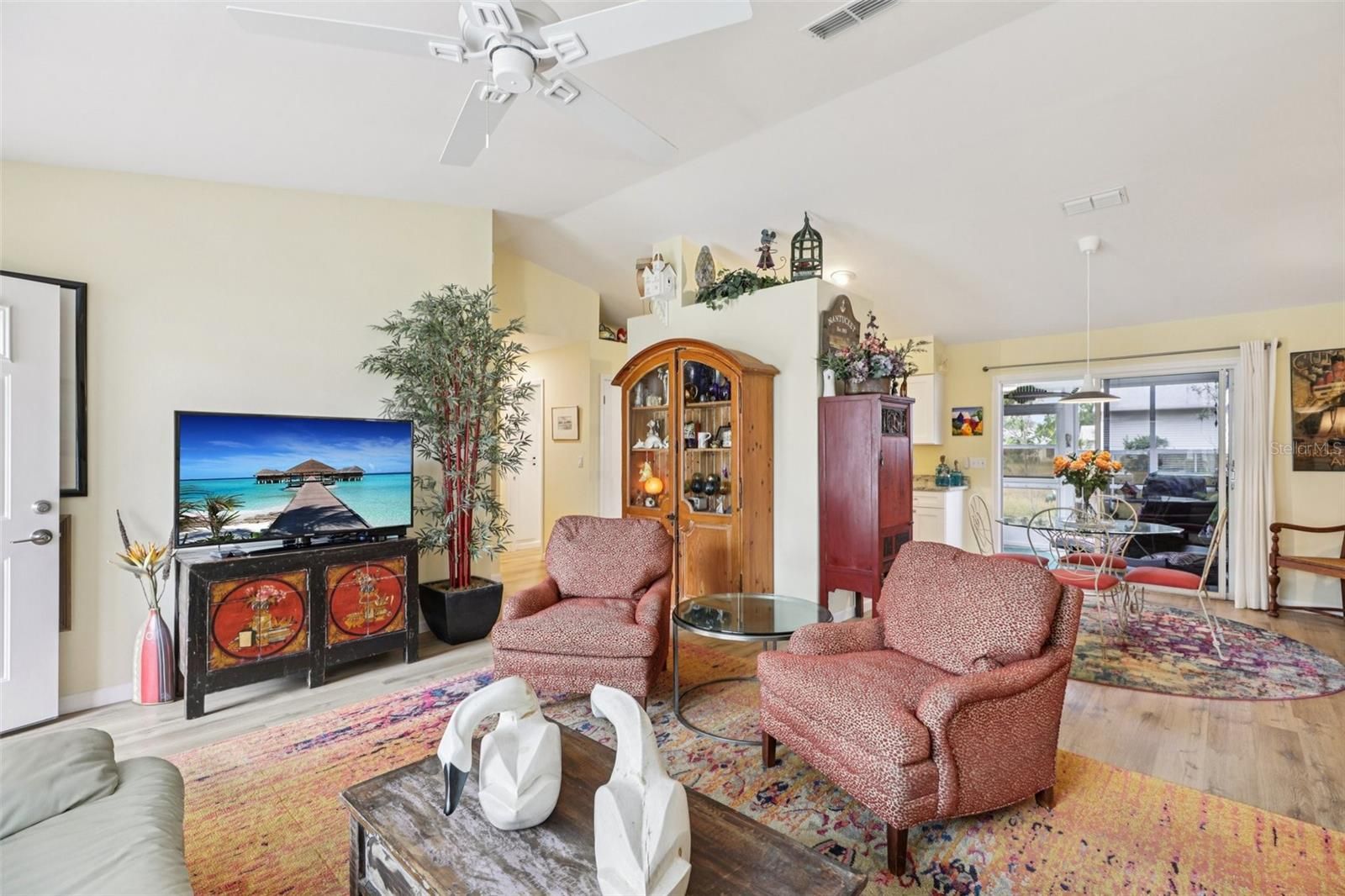 Step into sunshine, style, and serenity in this beautifully re-imagined home nestled in a welcoming 55+ community! From the moment you walk in, you’ll feel the fresh, modern vibe of a complete makeover—crisp new paint, gorgeous luxury vinyl flooring, and updated ceilings that make every room inviting. The designer touches continue into a stunning remodeled kitchen featuring stainless steel appliances, gleaming granite countertops, brand-new cabinetry, and an eye-catching backsplash that makes cooking and entertaining a true delight. Retreat to your spacious primary suite with a private en-suite bath and an enormous walk-in closet that feels like your own boutique. Both bathrooms have been tastefully updated with new vanities and solid-surface countertops. Major updates like a newer roof, water heater, and electric panel mean peace of mind and insurance-ready living. Relax on your private cozy Lanai as there are no close neighbors and lots of nature. There’s even a private irrigation well to keep your yard lush while saving money! The lifestyle here is just as impressive. This peaceful, friendly community is perfectly centered near shopping, dining, medical centers, and major highways. You’re only about 20 minutes from the excitement of The Villages and the charm of Mount Dora—yet you’ll come home to quiet streets and warm neighbors. Enjoy an active calendar of events with two community centers, pickleball, bocce ball, shuffleboard, clubs, and even your own neighborhood TV station! Take a dip year-round in the heated indoor Olympic-size pool or relax in the outdoor pool. Best of all, the HOA includes internet, cable, and sewer—making life simple and carefree.T here’s truly nothing left to do but move in and start living your best life. Don’t wait—schedule your private tour today and see why this home is the perfect place to call your next chapter! ???