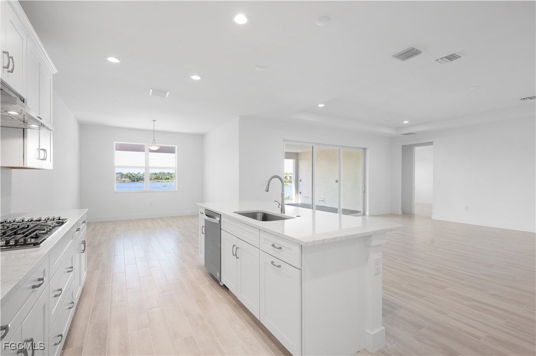Experience the magic of true Florida waterfront living in this breathtaking luxury new-construction residence, perfectly positioned with coveted western exposure for picture-perfect sunsets every evening. From the moment you step inside, you’re greeted by shimmering water views that create an atmosphere of serenity and sophistication throughout the home. Relax beneath the expansive covered lanai, where golden sunset skies reflect over the water and set the stage for unforgettable evenings. This is outdoor living at its finest—peaceful, private, and undeniably Florida. The heart of the home is a grand open living area where the great room, kitchen, and casual dining space seamlessly blend together—each capturing panoramic water vistas that enhance every moment. The gourmet kitchen is a chef’s dream, featuring gleaming stainless steel appliances, quartz countertops, a generous center island, and a premium gas cooktop—all crafted to elevate both everyday meals and special gatherings. Retreat to the luxurious primary suite, a true sanctuary boasting wide waterfront views, spa-inspired finishes, and a peaceful ambiance that makes every morning and evening feel like a private escape. Wake up to sparkling water and wind down to soft sunset colors right from your own bedroom. Crafted to the highest modern standards, this home includes impact-resistant windows and doors, is built to the most current building codes, and is backed by a builder warranty—giving you complete peace of mind. Located within a vibrant 55+ community, residents enjoy a brand-new, resort-style amenity center complete with a dedicated lifestyle director, sparkling pool, golf simulator, billiards, clubhouse, fitness center, pickleball and tennis courts, shuffleboard, yoga and event lawns, BBQ areas, fire pits, and a full lineup of social events. This home embodies the ultimate Florida lifestyle—luxury, leisure, and endless waterfront sunsets. Ask our sales consultants about this home's special rate buydown promo! Please see MLS supplements for floor plan/interior design selections. Lot 4594.