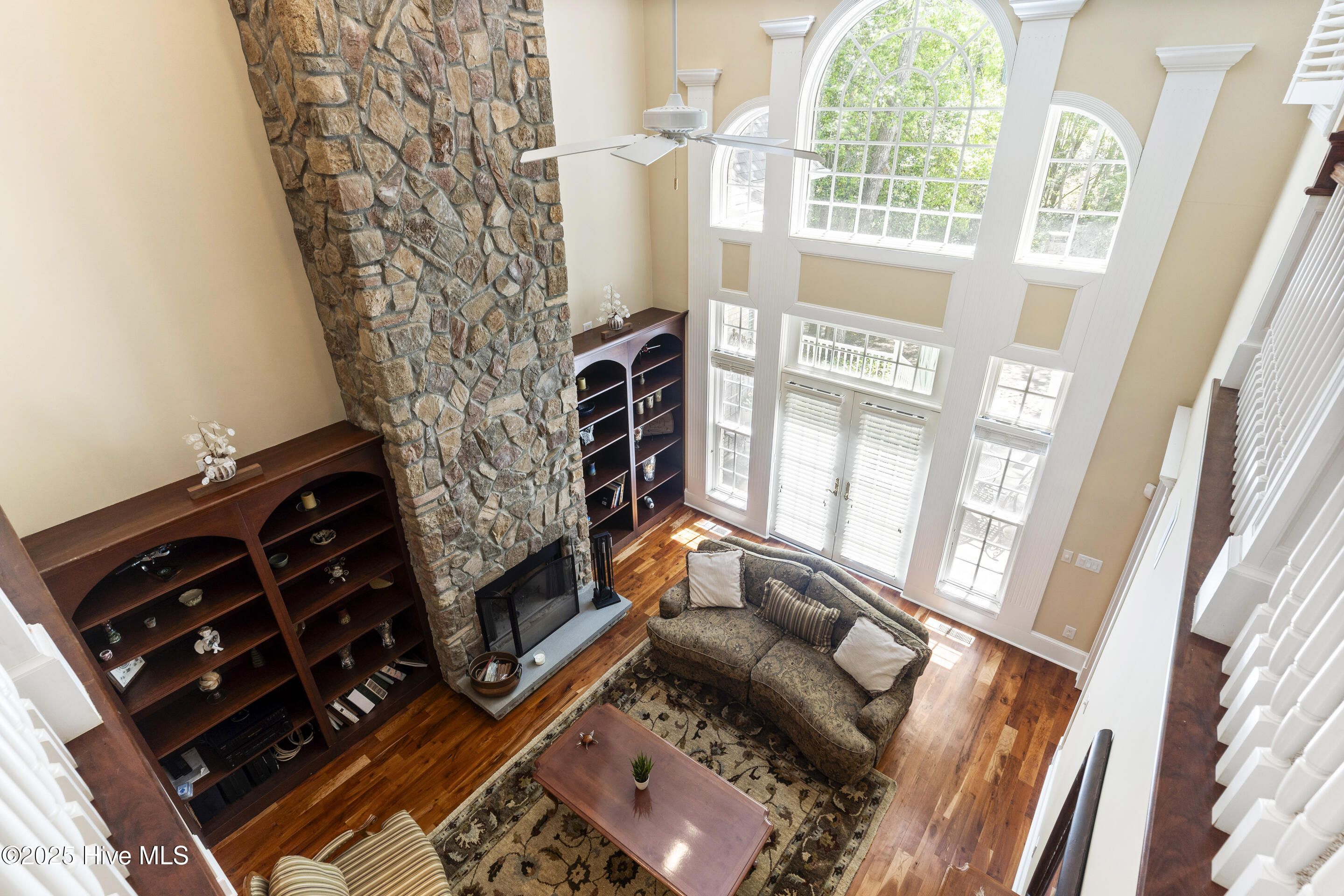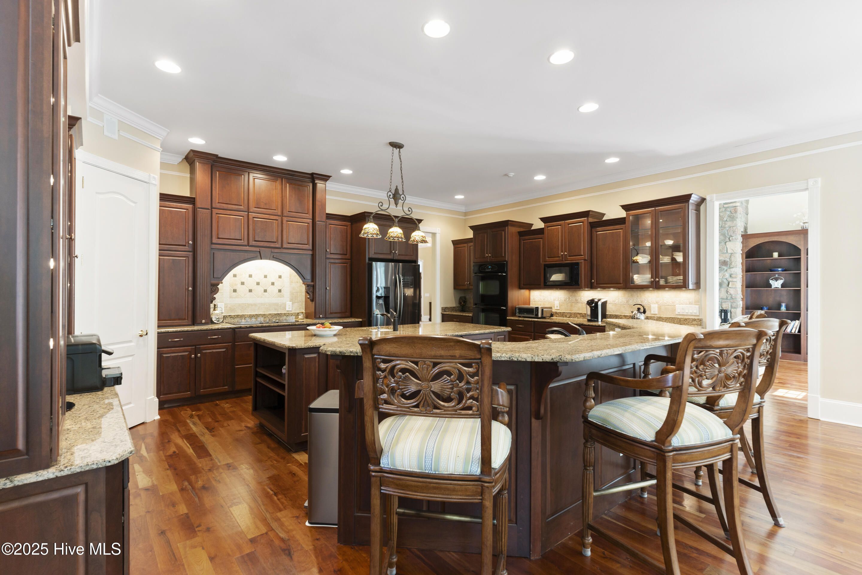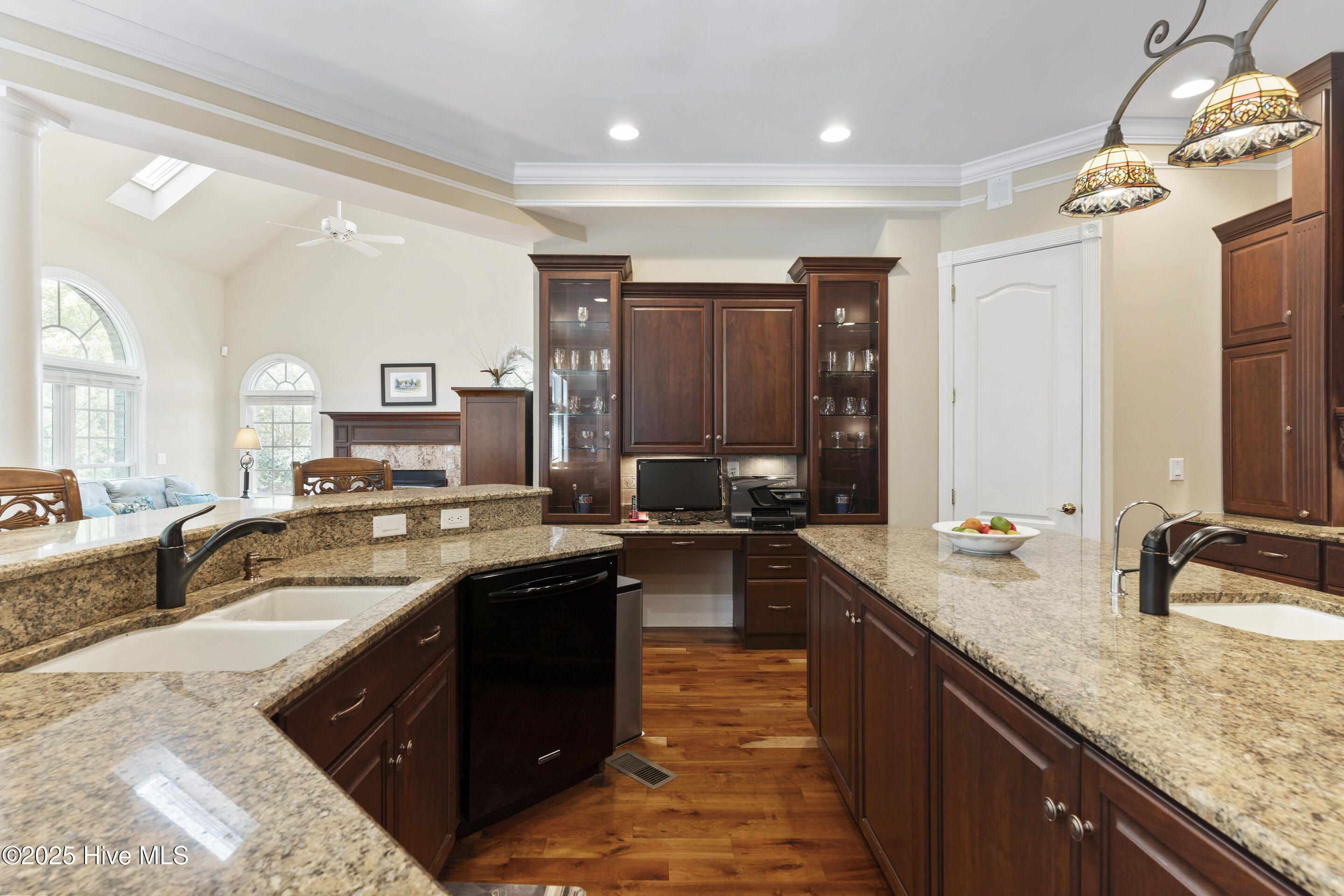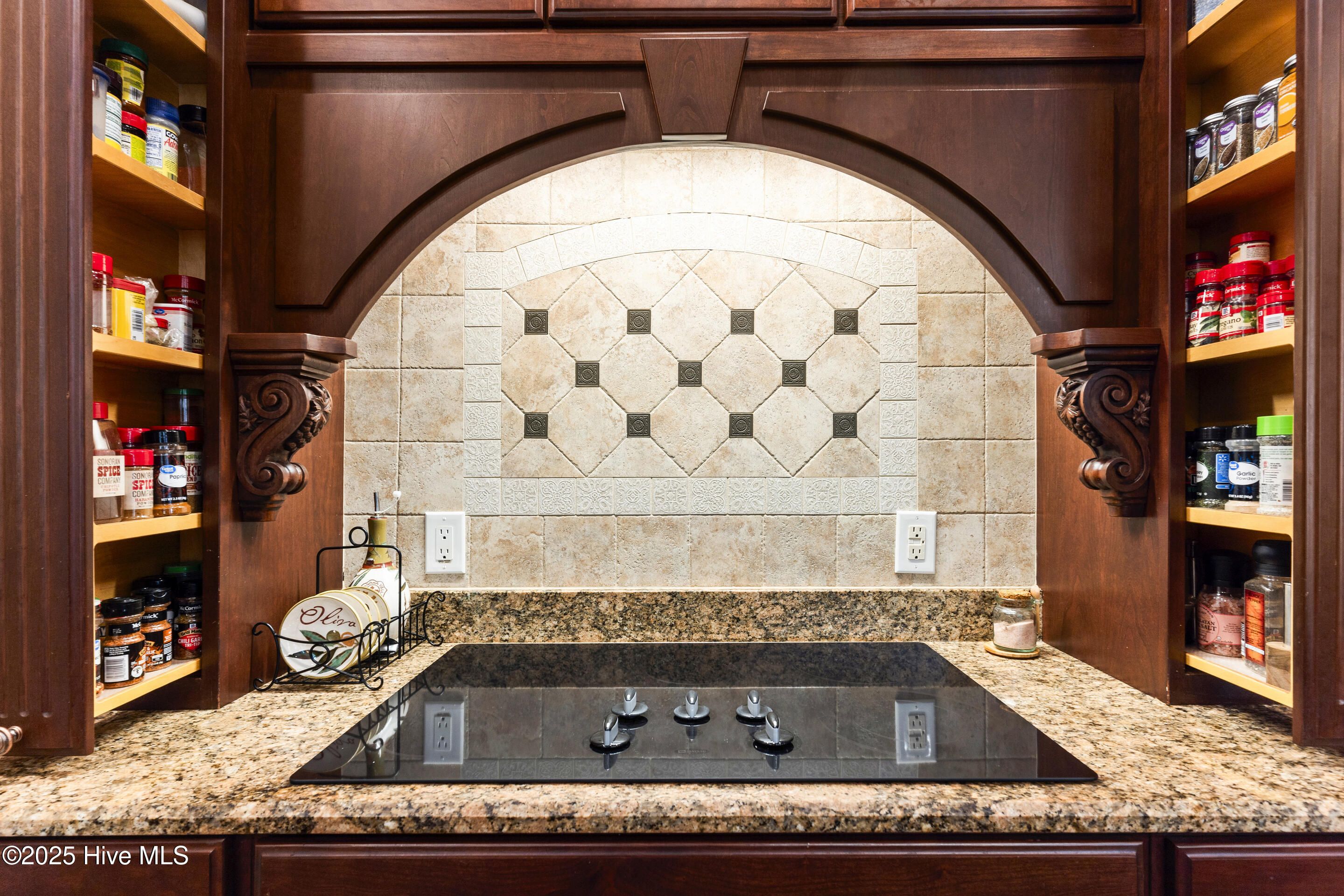 - Sound System, Master Downstairs, Central Vacuum, Walk-In Closet(s), Vaulted Ceiling(s), Tray Ceiling(s), High Ceilings, Entrance Foyer, Solid Surface Counters, Whirlpool, Bookcases, Kitchen Island, Ceiling Fan(s), Pantry, Walk-In Shower, Blinds, Kitchen/Dining Combo, Separate/Formal Dining Room