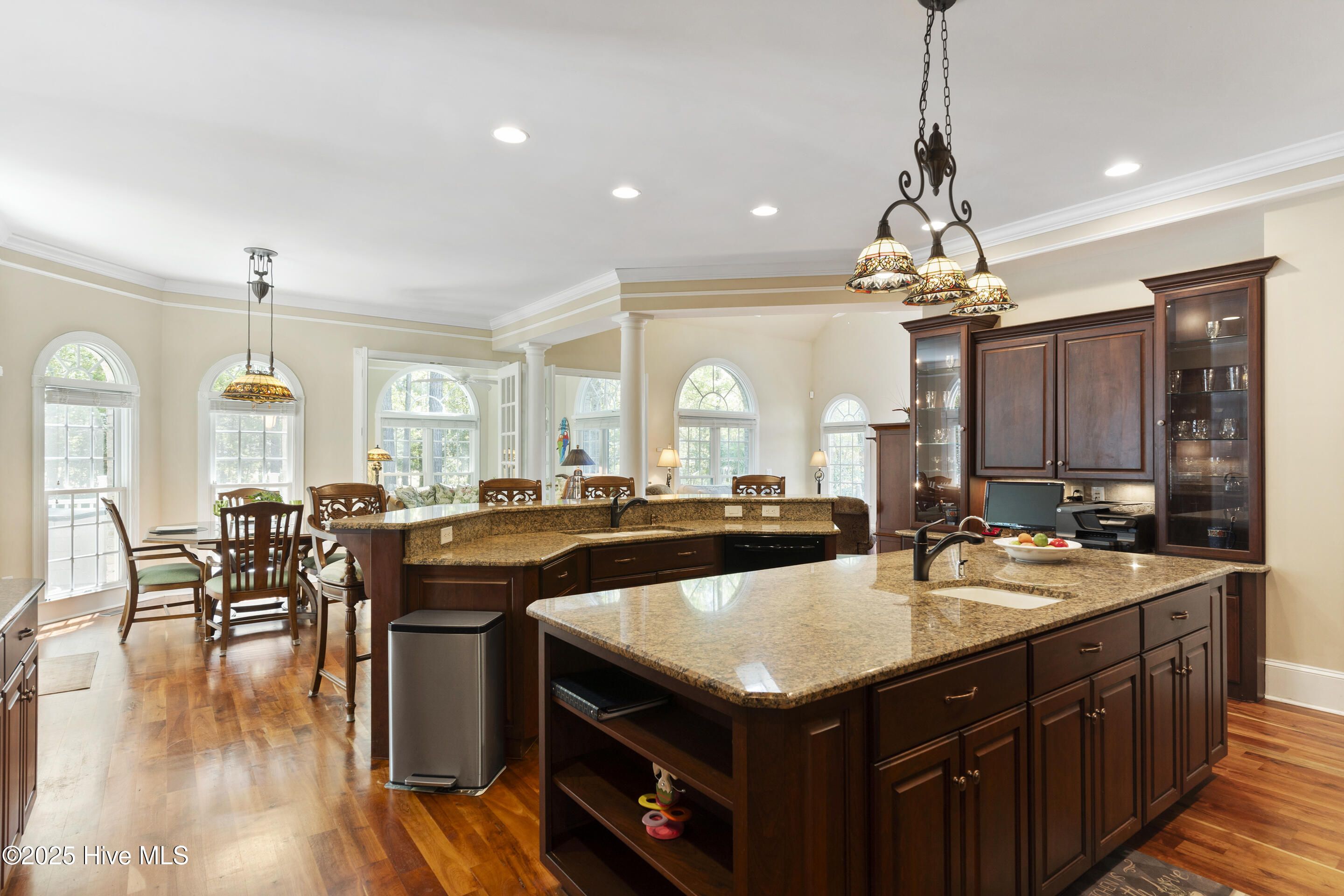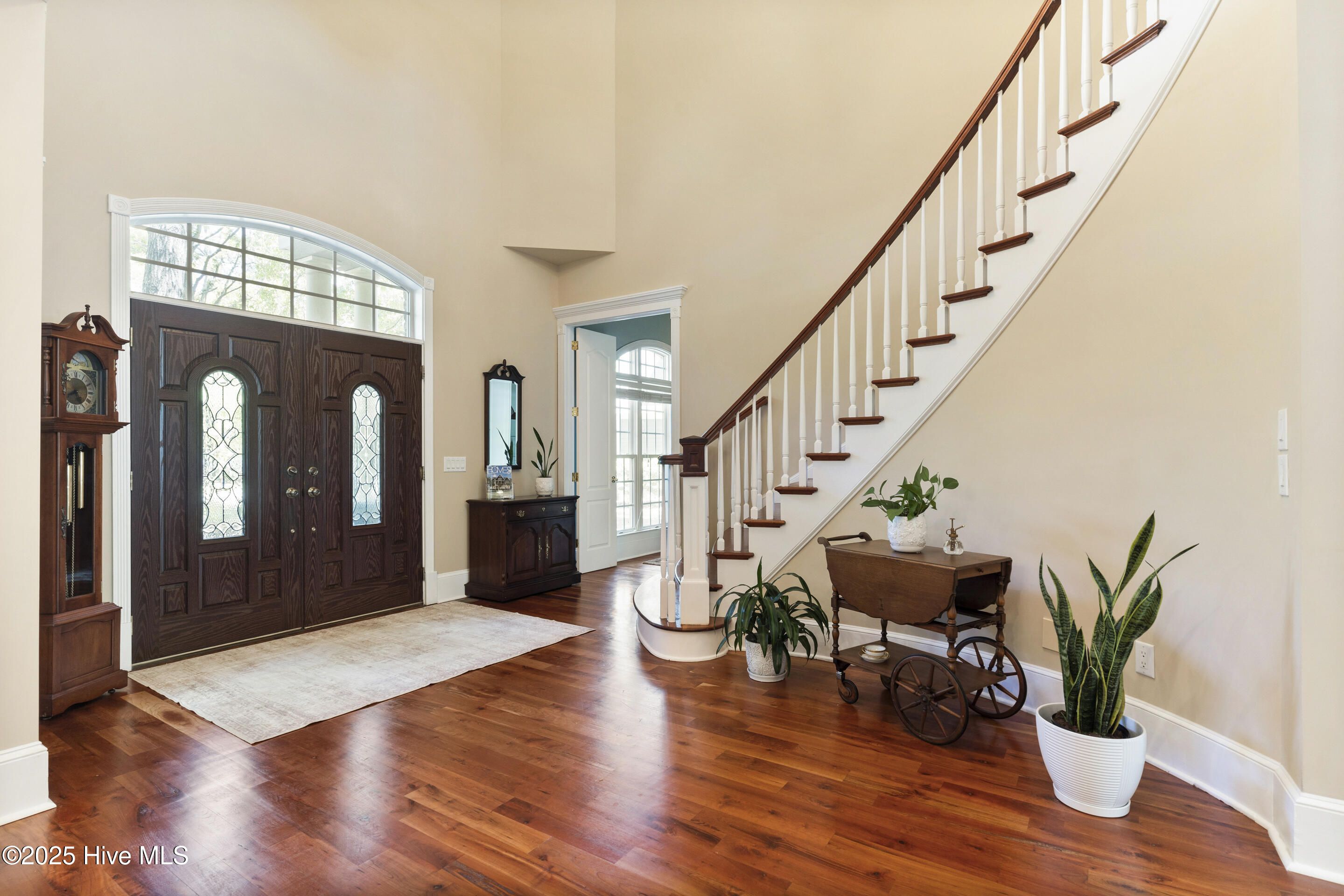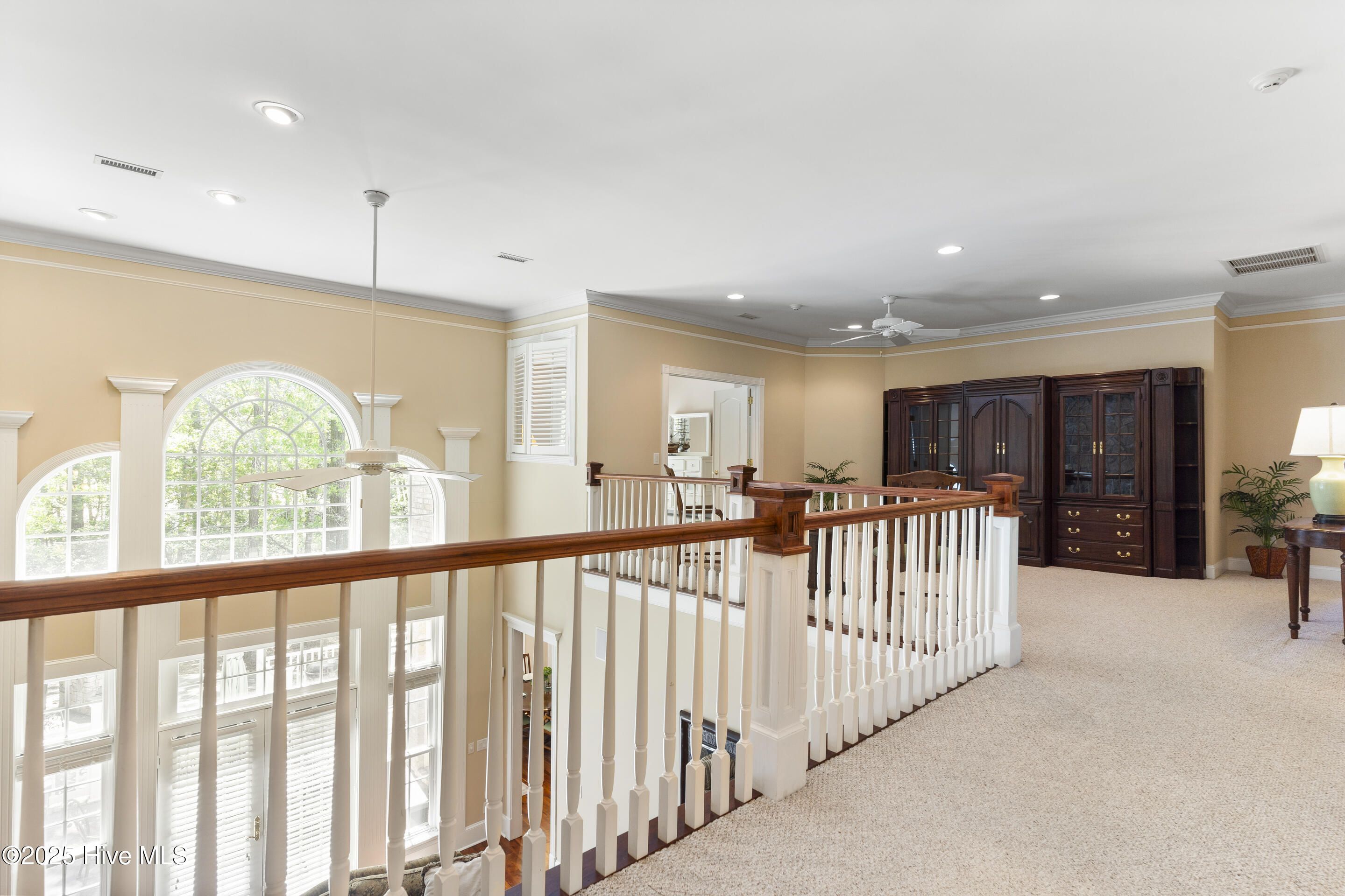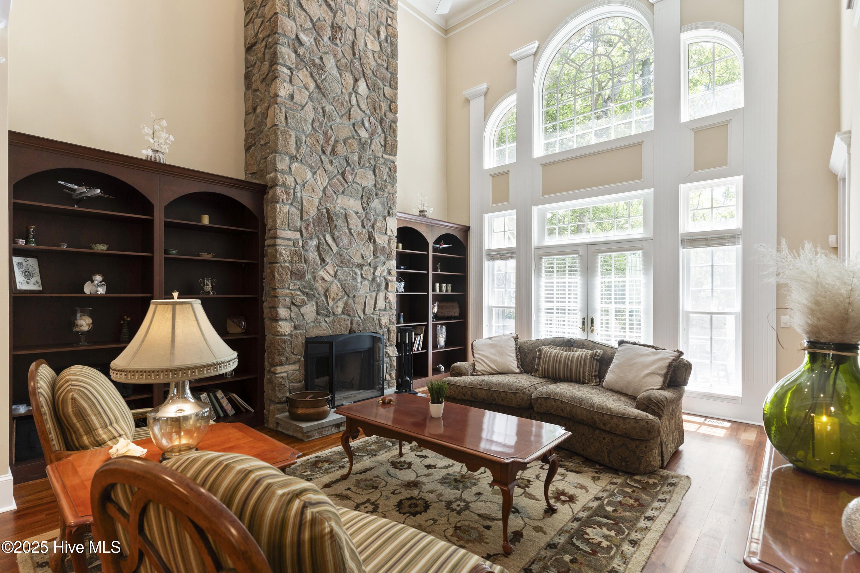 Coastal Elegance Awaits! Discover the perfect blend of luxury and comfort in this stunning home nestled in the heart of amenities-rich Winding River neighborhood that lies on the 27-hole Carolina National golf course. Boasting 4 spacious bedrooms and 5 bathrooms, this exceptional residence spans 5,050 square feet and features an oversized 850 sq. ft. garage. Designed by builder Craig Lewis, the home exudes a coastal charm that invites relaxation and sophistication. The thoughtfully laid out plan of this elegant home includes three ensuites, three living spaces, and an inviting formal dining area. Enjoy the warmth of four fireplaces—three propane and one wood-burning—adding a cozy feel throughout. The chef's kitchen, complete with two prep areas, is a culinary dream, while the great room features a soaring two-story fireplace. Additional highlights include a dedicated office with custom bookshelves and fireplace, a whole-house sound system, and central vacuum. Outdoor living is just as impressive, with beautiful stonework adorning the exterior and a saltwater in-ground pool that invites endless days of enjoyment. The property also has a raised patio perfect for entertaining, a fully encapsulated crawl space with a dehumidifier, and an irrigation system. A new roof installed in 2023 ensures peace of mind, while the generator guarantees that you are prepared for any situation. Winding River offers a River House & boat ramp on the Lockwood Folly River, Community pool and center, tennis & pickleball courts, walking trails, fitness center, beach house with community pool at Holden Beach, marina and numerous social activities. This extraordinary property blends elegant design with functional living just minutes from Holden and Oak Island beaches, downtown Historic Wilmington and Myrtle Beach.