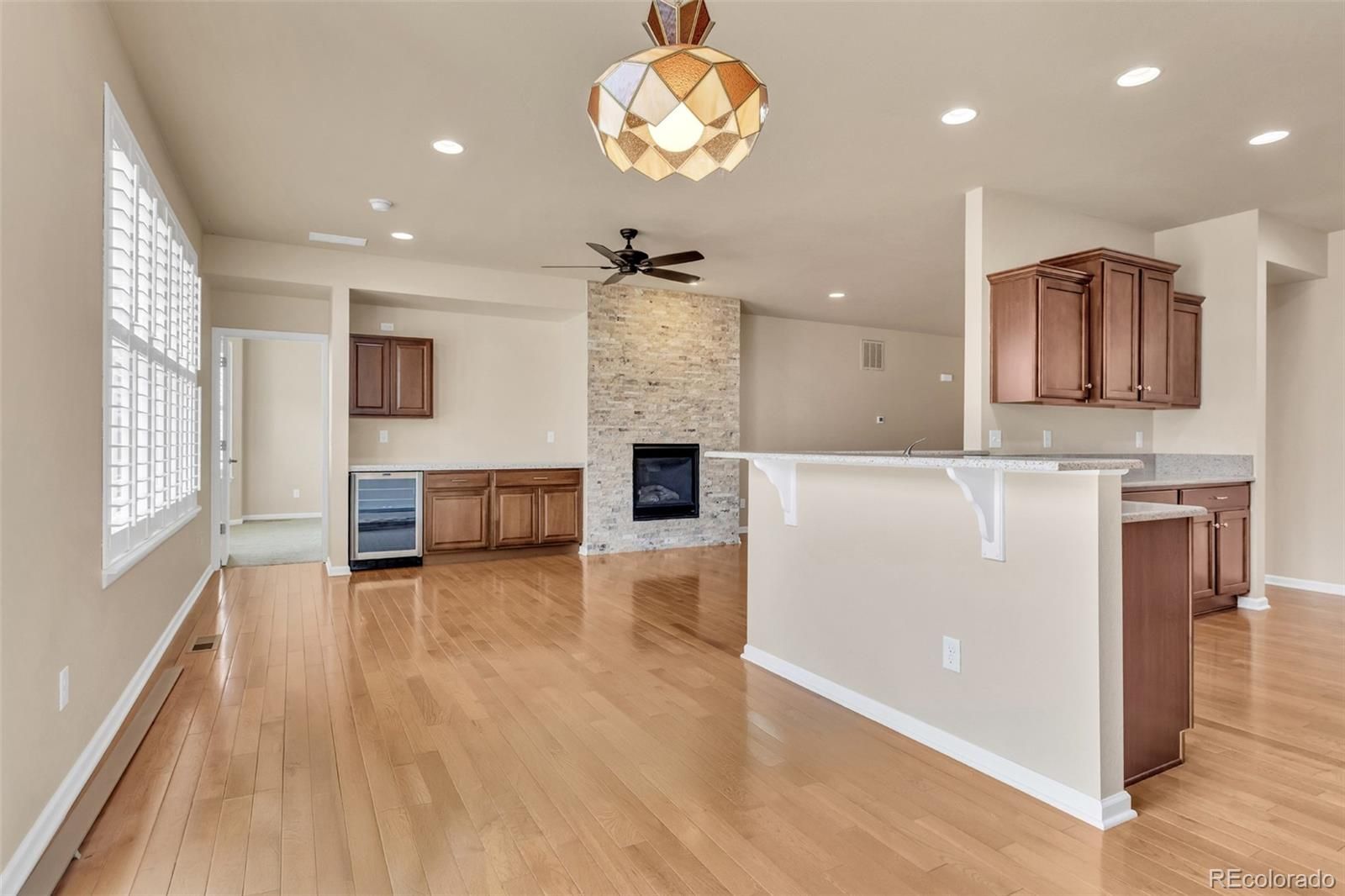 - Breakfast Bar, Built-in Features, Entrance Foyer, Five Piece Bathroom, Granite Counters, High Ceilings, Kitchen Island, Open Floorplan, Primary Suite, Smoke Free, Wet Bar