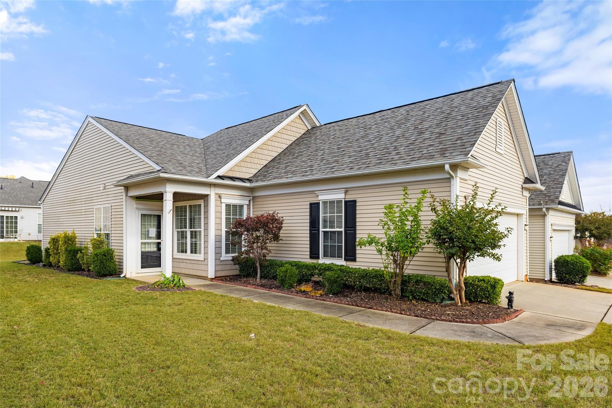 NEW ROOF (10/2025)! New water heater (2025) Welcome home to this cozy 2-bedroom, 2-bath Brookside floor plan featuring fresh paint throughout and new carpet in the bedrooms! Step inside to a welcoming foyer highlighted by elegant wainscoting and crown molding. To the right, the eat-in kitchen offers electric appliances, range, microwave, and refrigerator just a couple of years old, plus a tile backsplash, pantry, and sunny dining area overlooking the front porch. The great room features a ceiling fan and sliding glass doors leading to the rear patio with a retractable awning and garden bed, perfect for relaxing or entertaining. You’ll also appreciate the updated fixtures throughout and an HVAC system equipped with a HALO air purifier for improved indoor air quality. Enjoy the resort-style amenities of Sun City Carolina Lakes, one of the region’s premier active-adult communities! Amenities include an 18-hole golf course, tennis and pickleball courts, indoor and outdoor pools, fitness centers, clubhouses, walking trails, and countless social clubs and activities to match every interest.