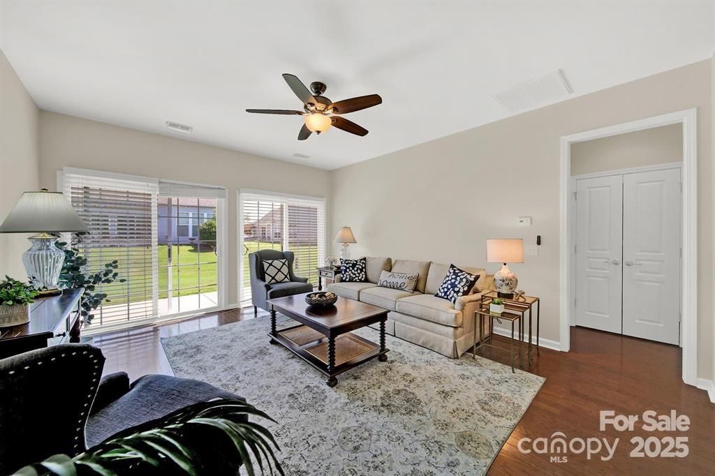 NEW ROOF (10/2025)! Welcome home to this cozy 2-bedroom, 2-bath Brookside floor plan featuring fresh paint throughout and new carpet in the bedrooms! Step inside to a welcoming foyer highlighted by elegant wainscoting and crown molding. To the right, the eat-in kitchen offers electric appliances, range, microwave, and refrigerator just a couple of years old, plus a tile backsplash, pantry, and sunny dining area overlooking the front porch. The great room features a ceiling fan and sliding glass doors leading to the rear patio with a retractable awning and garden bed, perfect for relaxing or entertaining. You’ll also appreciate the updated fixtures throughout and an HVAC system equipped with a HALO air purifier for improved indoor air quality. Enjoy the resort-style amenities of Sun City Carolina Lakes, one of the region’s premier active-adult communities! Amenities include an 18-hole golf course, tennis and pickleball courts, indoor and outdoor pools, fitness centers, clubhouses, walking trails, and countless social clubs and activities to match every interest.