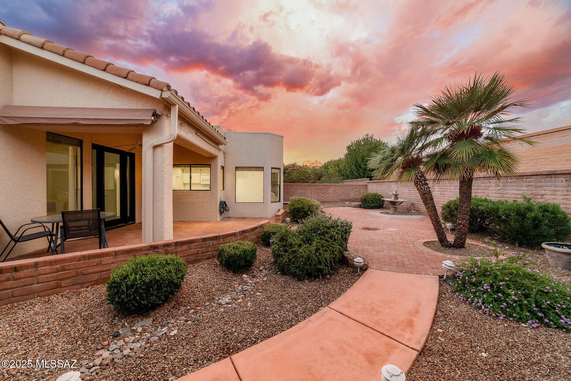 Sun City Oro Valley Bright & Beautiful Meridian Model. Wecome Guests through your walled Front Porch w/ Magnificent Catalina Mountain Views and pretty Path Lighting. This cheefrul 1,328 sq ft 2BR / 2 BA home features an XL Living / Dining room leading out to your very private rear Oasis with a charming Covered Patio, extended Paver Patio & flowing Fountain. Your Crisp White Kitchen has many cabinets & a dining nook. Wonderful split Bedroom floorplan has Owner's Suite w/ Walk-in Closet. BR 2 looks out to the Majestic Catalina Mountains. The entire home is Frenshly Painted & has new Pergo Flooring throughout. There is also a whole house Generator! New Roof 2019. Sun City Amenities include: 18 Hole Golf Course, 2 Pools, Pickleball, Tennis, Fitness Ctr. Artesian Ctr. & many Clubs to join!