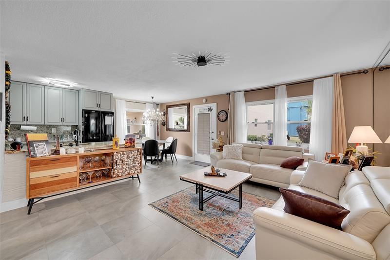 Welcome to the finest residence in Kings Point—this stunning first-floor 2/2 unit, located within the prestigious Flanders D section of Kings Point, a vibrant 55+ community. This meticulously updated unit features a fully remodeled kitchen with elegant granite countertops and new appliances. Offered fully turnkey with stylish furniture and professional decoration, this unit is ready for immediate move-in. Additional highlights include a new washer, impact windows throughout, and a private patio. Water, cable, security, and exterior insurance included in HOA fee. Premium amenities, including tennis, golf, pickleball, billiards, indoor and outdoor pools, a café, & a courtesy bus service for convenient access to nearby shopping. Assigned parking, along with ample guest spaces available.