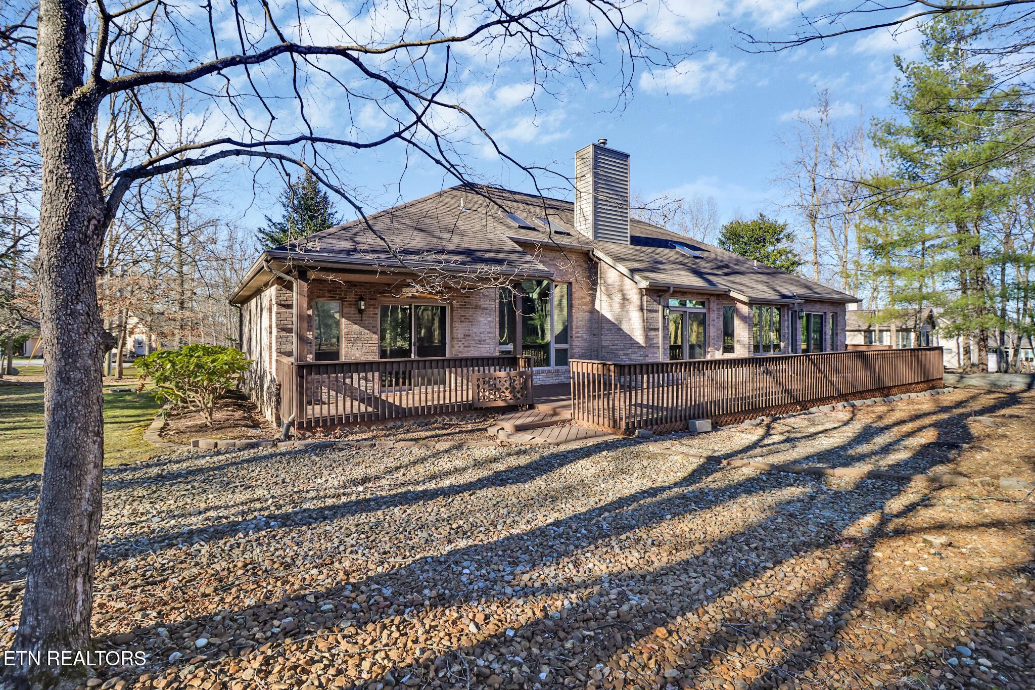 All-brick home offering approximately 2,326 square feet with a split floor plan. Interior features include hardwood and tile flooring, crown molding, custom cathedral/tray 10' and 12' ceilings and skylights providing natural light throughout the home. The kitchen includes a breakfast bar, breakfast/sitting area and plenty of cabinets. The primary bathroom includes a jetted tub and walk-in shower. Additional features include a covered and open deck the length of the home, floor to ceiling windows, formal dining, laundry room, and a garage with approximately 13-foot ceilings, workshop space, and storage areas. Buyer to verify all information including square footage, measurements, and details prior to making an informed decision.