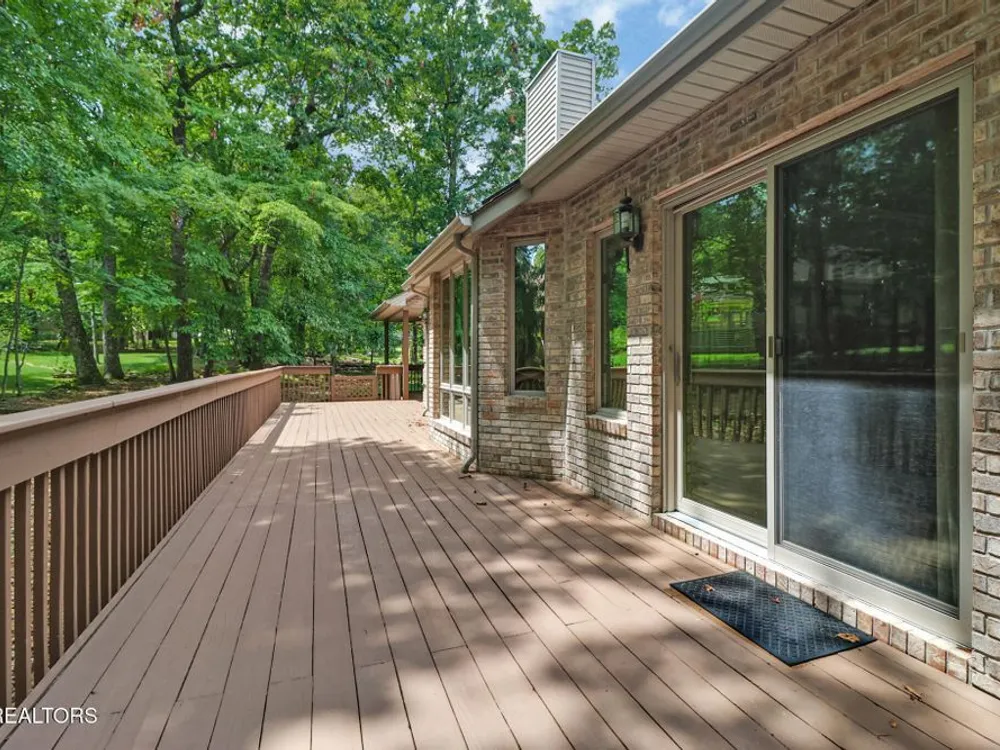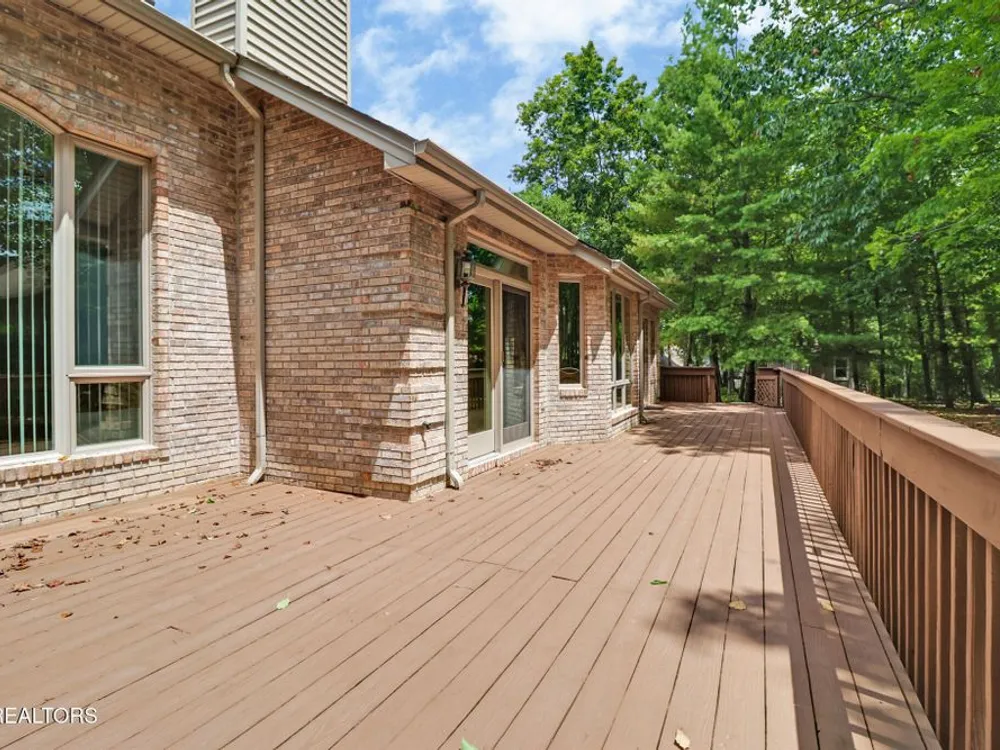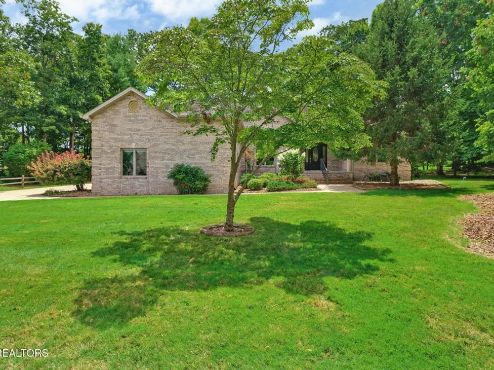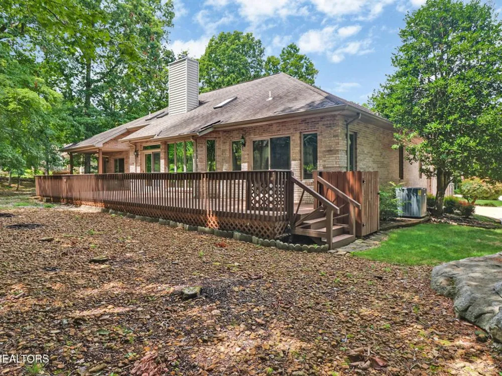 Custom built all brick home with light and bright split bedroom floor plan. Located close to all of Fairfield Glades amenities. Spacious foyer with custom detail ceiling opens to great room with soaring ceiling, 2 sky lights. Floor to ceiling windows. 3-sided glass fronted gas log fireplace. Dining room with crown molding, chair rail and custom design ceiling. Kitchen is open from great room with abundance of cabinets, breakfast bar and bay window breakfast area. Spacious master suite with trey ceiling, access to deck. Ensuite bathroom. provides double vanity, jetted tub and walk in shower. 2 guest bedrooms, one with access to covered deck and open deck. Guest bathroom. Hardwood floors throughout this light and bright home.