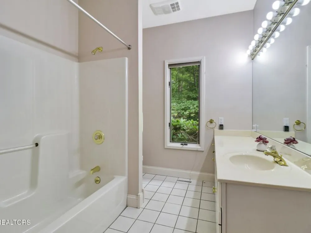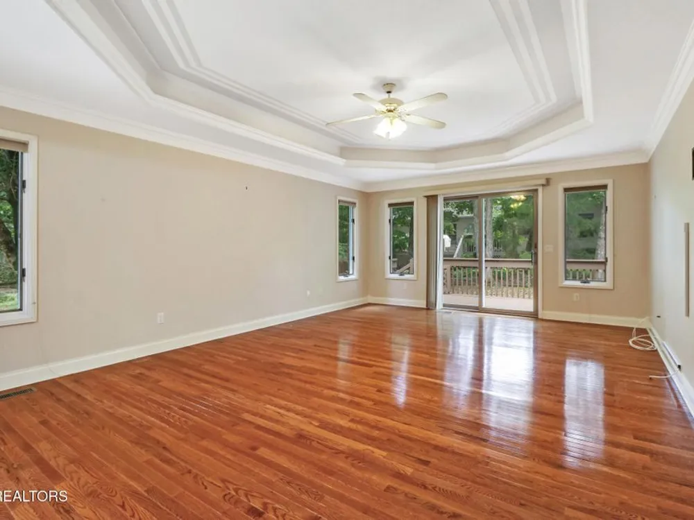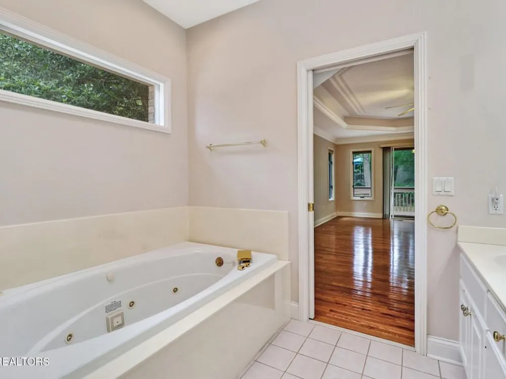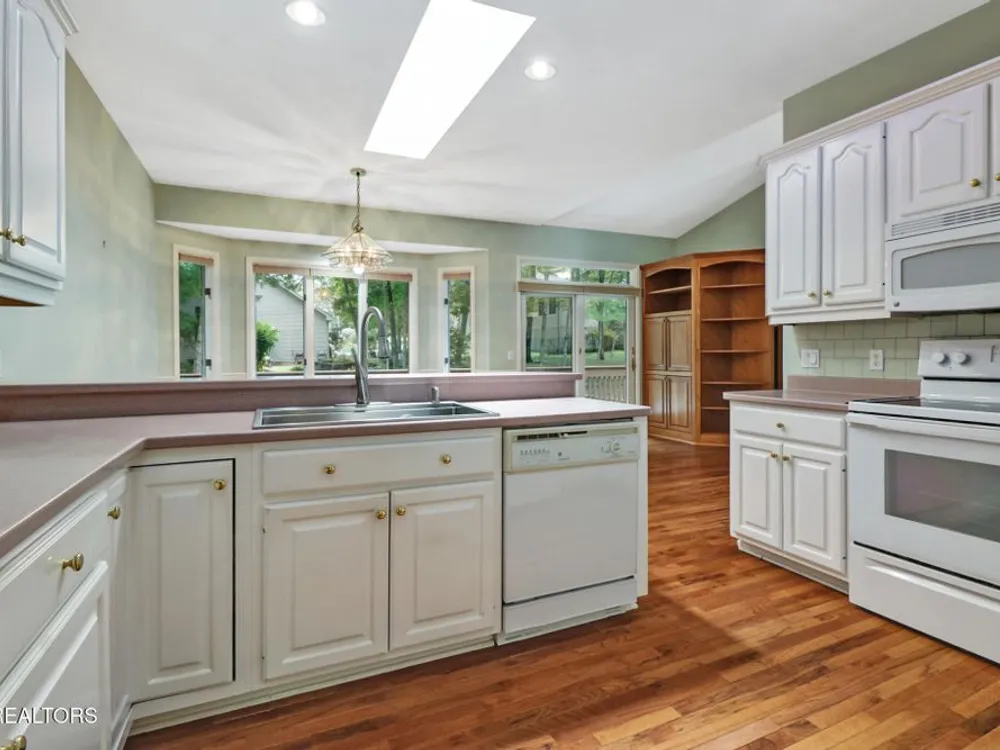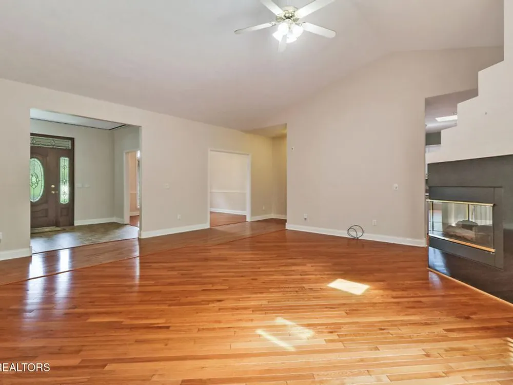 Custom built all brick home with light and bright split bedroom floor plan. Located close to all of Fairfield Glades amenities. Spacious foyer with custom detail ceiling opens to great room with soaring ceiling, 2 sky lights. Floor to ceiling windows. 3-sided glass fronted gas log fireplace. Dining room with crown molding, chair rail and custom design ceiling. Kitchen is open from great room with abundance of cabinets, breakfast bar and bay window breakfast area. Spacious master suite with trey ceiling, access to deck. Ensuite bathroom. provides double vanity, jetted tub and walk in shower. 2 guest bedrooms, one with access to covered deck and open deck. Guest bathroom. Hardwood floors throughout this light and bright home.
