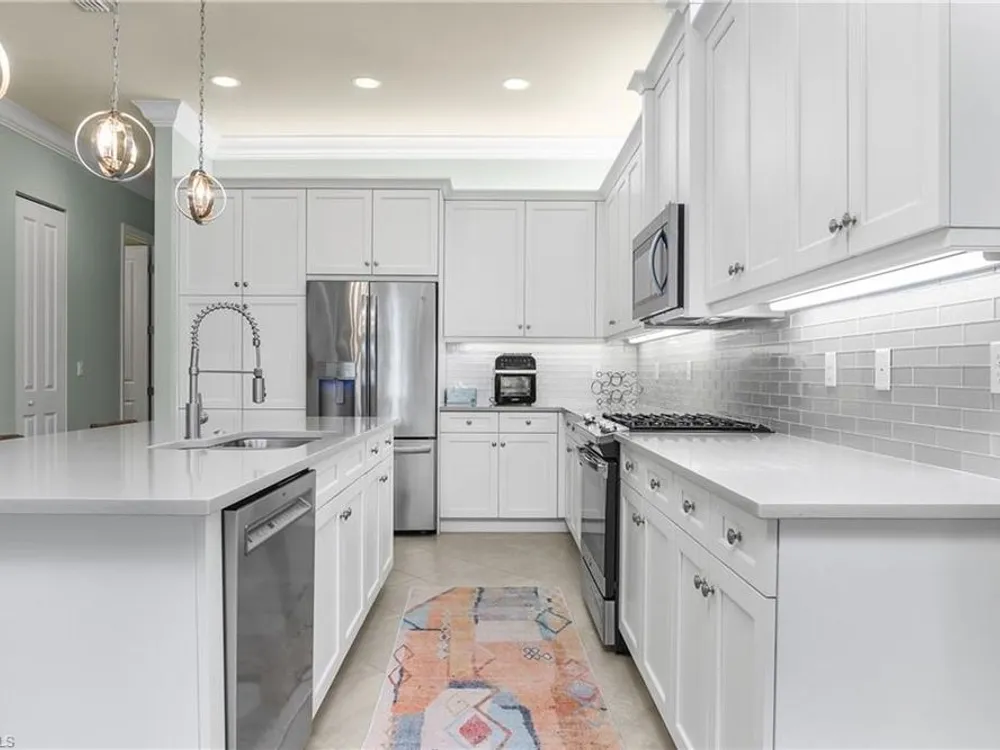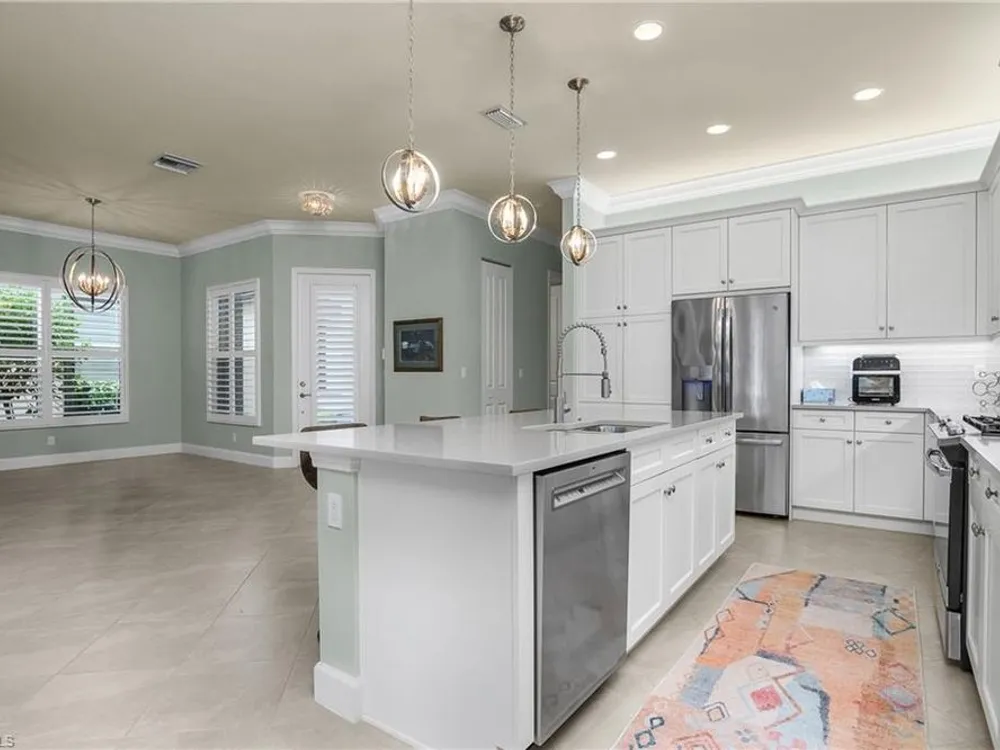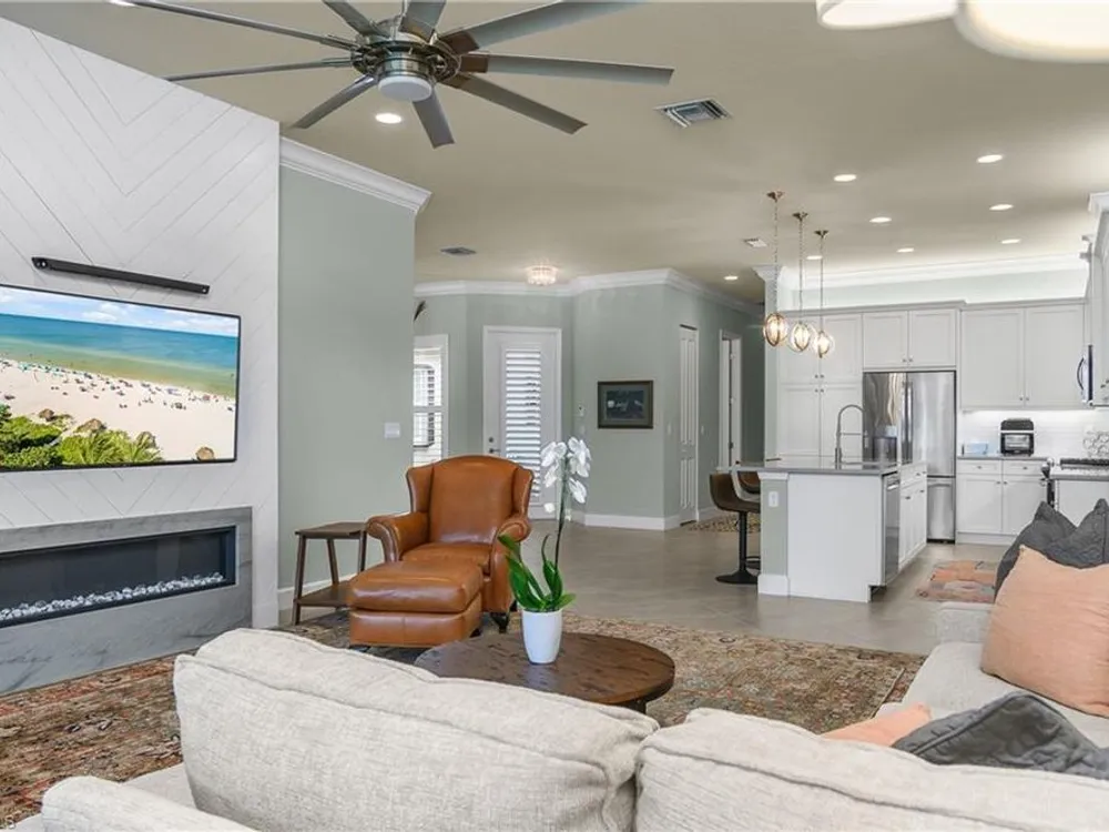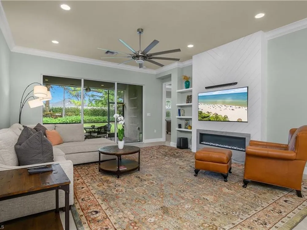 Welcome to this stunning York model home in the highly sought-after 55+ community of Valencia Bonita. The York is the largest attached villa floor plan offered, and this beautifully upgraded residence showcases over 2,000 square feet of open living space. This home features a custom quartzite stone accent wall in the primary suite, a tray ceiling with accent lighting, crown molding throughout, a custom built-in electric shiplap fireplace with recessed TV and open shelving, plantation shutters, designer pendant lighting, and five premium ceiling fans. The gourmet kitchen is appointed with quartz countertops, a subway glass backsplash, a premium stainless steel appliance package including a French door refrigerator, a new dishwasher, and an upgraded pull-down brushed nickel faucet. The home is decorated in fresh Sherwin Williams coastal-inspired colors for a bright, inviting feel. Valencia Bonita offers a premier active adult lifestyle, with full-time sports and social directors, eight pickleball courts, eight tennis courts, state-of-the-art fitness facilities, art and activity studios, and a full calendar of entertainment and social clubs. As a newer community, it is easy to connect with neighbors and build lasting friendships. This home is attractively priced for a quick sale and is available for immediate occupancy. For more information or to schedule a private showing, please contact the homeowner, Nancy Wilson, at 704-651-5181.