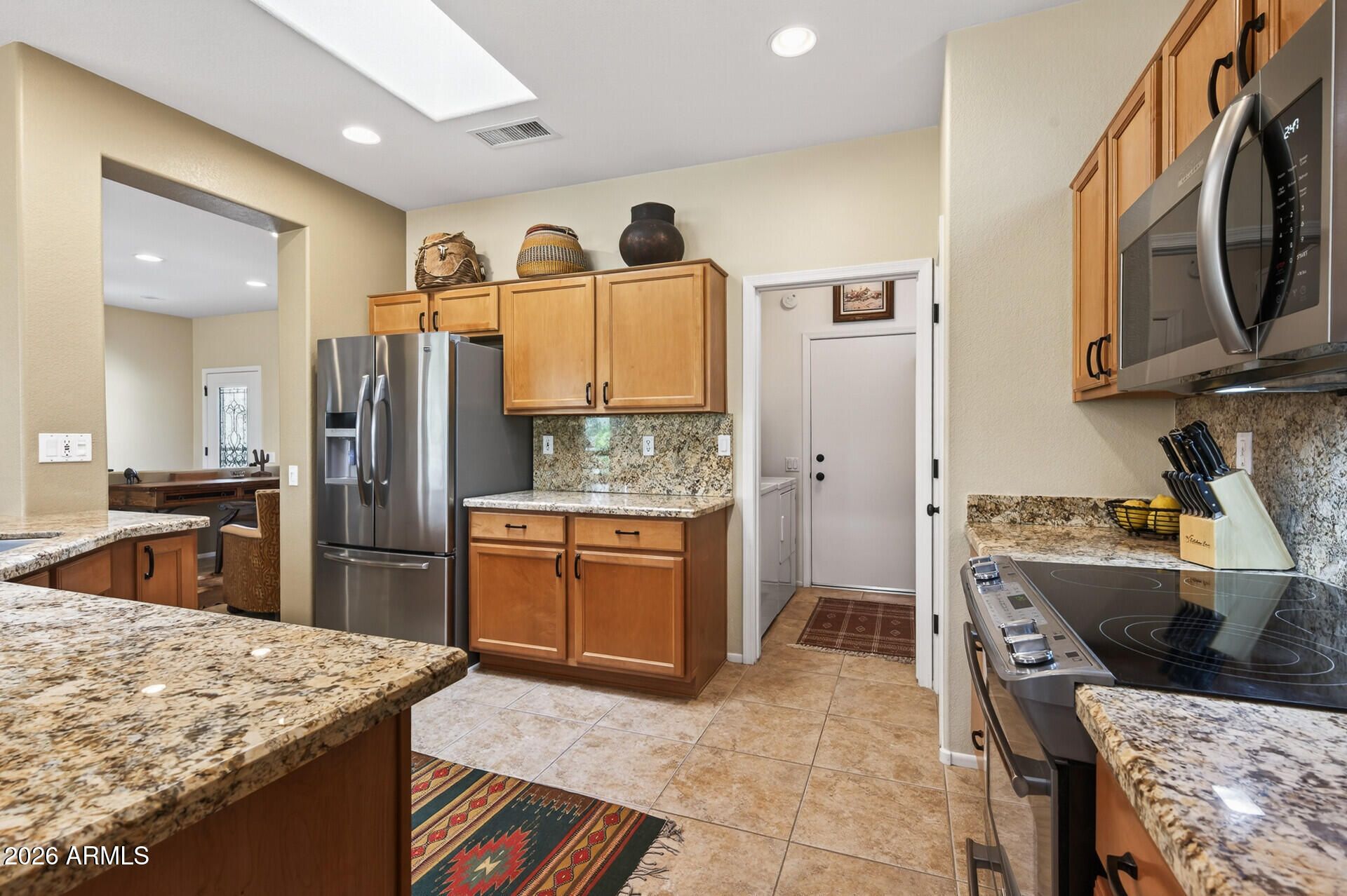 - Dryer, Washer, Refrigerator, Built-in Microwave, Dishwasher, Disposal, Electric Oven, Electric Cooktop