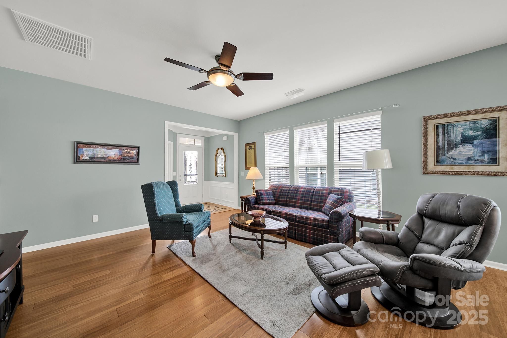 Cozy Pine Spring home with sunroom in 55+ Sun City Carolina Lakes. This adorable 2 BR, 2 BA home welcomes you with a covered front porch entrance. Upon entering the home is a home office with french doors. This open floorplan offers lots of natural light and windows. Nice size kitchen sits at the back of the home with space for a bistro table or butcher block island. Double door pantry, stainless steel and black appliances, corean countertops and tile backsplash. Walk out to your enclosed tiled sunroom for morning coffee or evening drink. The spacious primary bedroom has an en-suite bath w/dual sink vanity, glass enclosed shower & spacious walk-in closet. In front of the home is a guest bedroom, full bath and hall linen and laundry closet. Join the active-adult lifestyle in Sun City and enjoy the endless resort style amenities with your new neighbors!