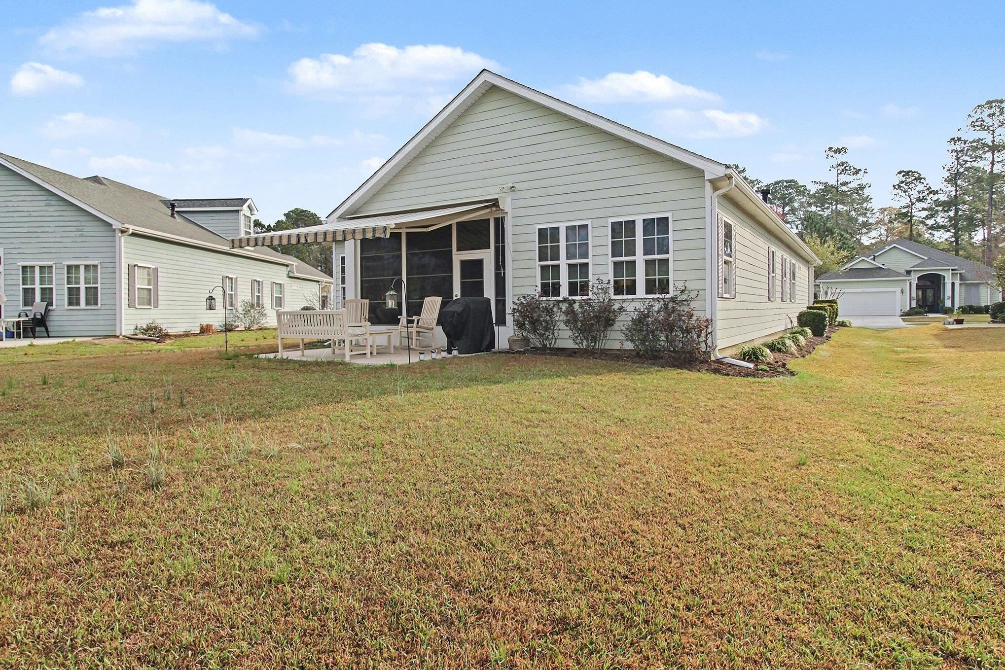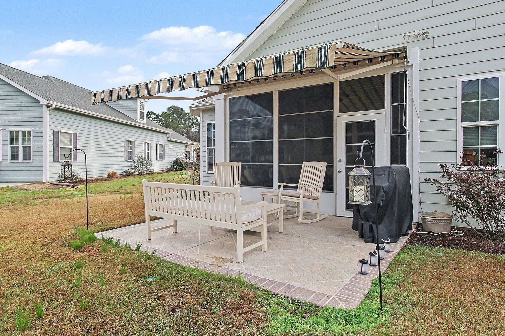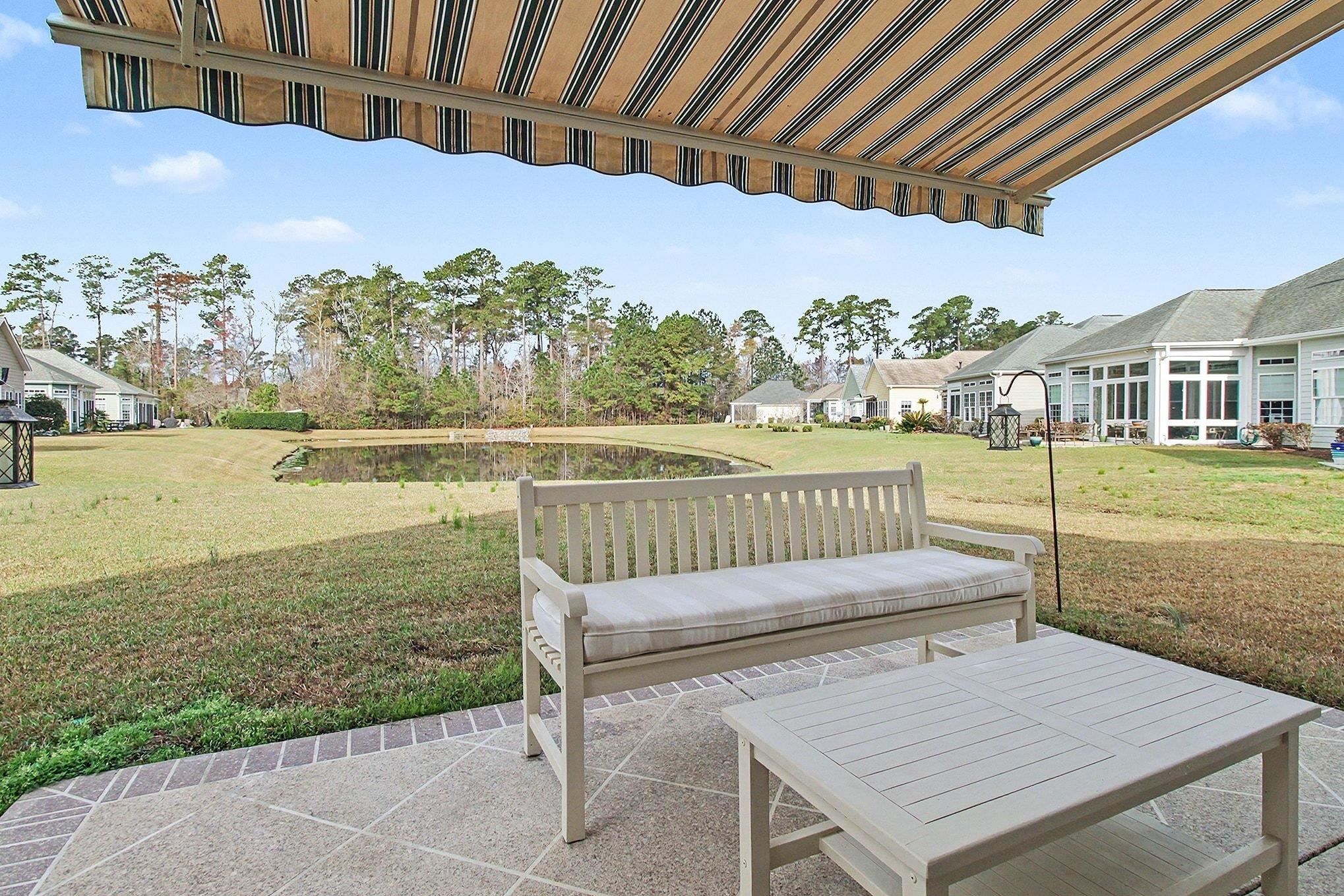 Discover easy coastal living in the sought-after Seasons at Prince Creek West, a gated 55+ community in charming Murrells Inlet. Perfectly positioned on a quiet street with peaceful pond views, this thoughtfully designed 3-bedroom, 2-bath ranch-style home offers the ideal blend of comfort, natural light, and effortless entertaining. Step inside to a welcoming foyer that opens to a spacious, light-filled floor plan with soaring ceilings and large windows that brighten the entire home. The main living area serves as the heart of the home, complete with a cozy gas fireplace and multiple dining spaces that make hosting gatherings with family and friends a breeze. The well-appointed kitchen features beautiful new countertops, stainless steel appliances, generous cabinetry, a pantry, breakfast bar seating, and a window overlooking the backyard. One of the home's most inviting spaces is the bright Carolina room, where walls of windows frame tranquil pond views and fill the room with natural light, an ideal spot for morning coffee, reading, or relaxing. From here, step into the all-season screened porch, designed for year-round enjoyment with the option to open it up for fresh coastal breezes or close it in for comfort during cooler months. The outdoor patio extends the living space even further, complete with a motorized retractable awning that provides shade at the touch of a button-perfect for outdoor dining or quiet afternoons outdoors. The split-bedroom layout ensures privacy for the primary suite, which features elegant tray ceilings, new carpeting, large windows, dual walk-in closets, and a spacious ensuite bath with double vanities, a glass-enclosed shower, linen storage, and a private water closet. Two additional bedrooms are generously sized, with one currently serving as a stylish office with French doors and flexible space for guests. Additional highlights include a covered front porch, a laundry room with extra storage and an attached two-car garage with shelving, and a new hot water heater. The community also offers natural gas and an HOA that includes internet service, lawn maintenance, irrigation, and weekly trash pickup-making everyday living even easier. Life in Seasons at Prince Creek West is centered around an active and social lifestyle. Residents enjoy a beautifully appointed clubhouse, fitness center, indoor and outdoor pools, tennis courts, bocce, shuffleboard, walking and biking trails, arts and crafts studio, billiards room, library, and a full calendar of social events. The location is just minutes from the famous Murrells Inlet MarshWalk, where waterfront dining, live music, and scenic views create a true Lowcountry experience. You'll also be close to Brookgreen Gardens, area state parks, shopping, healthcare, and the sandy shores of Garden City Beach. Beautifully maintained and ideally located, this home offers the perfect opportunity to enjoy the relaxed, active coastal lifestyle that makes Murrells Inlet so special.