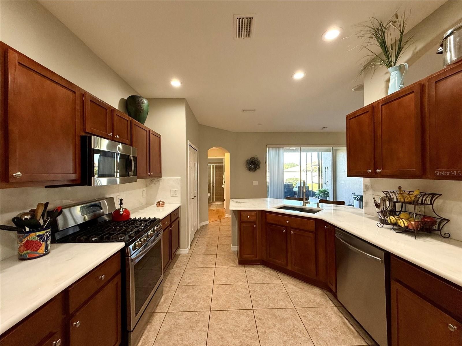- Eat-in Kitchen, Open Floorplan, Solid Surface Counters, Solid-Wood Cabinets, Split Bedrooms, Walk-In Closet(s), Window Treatments
