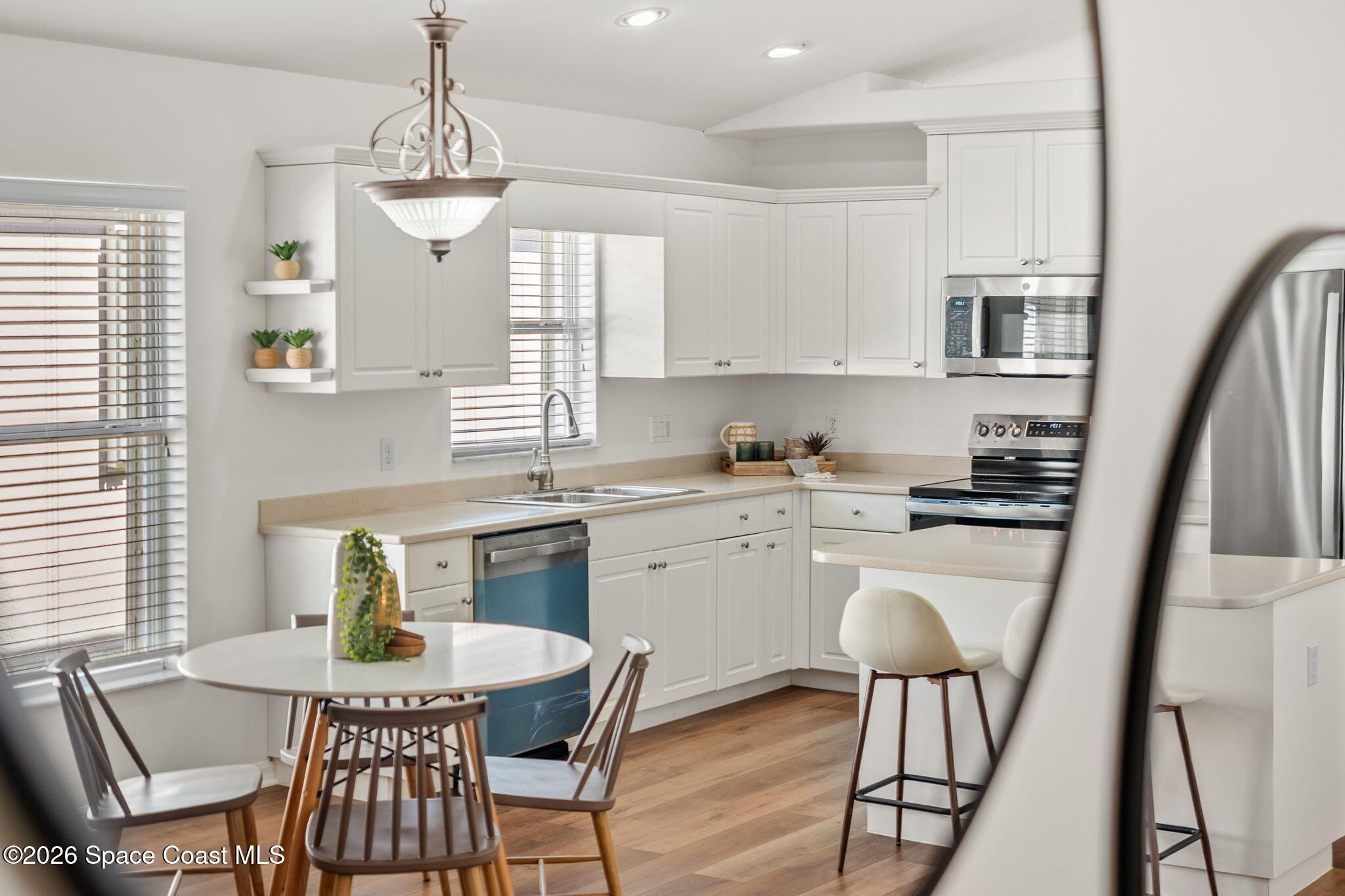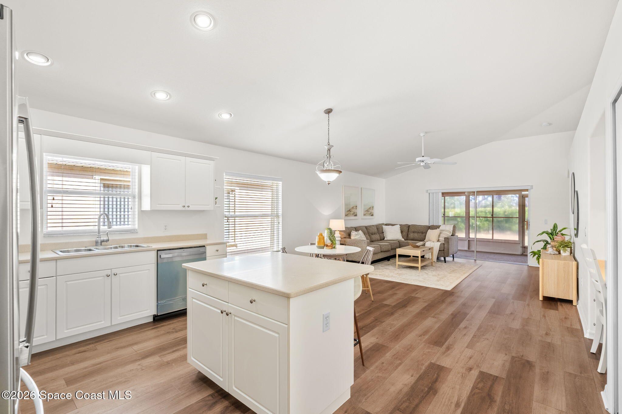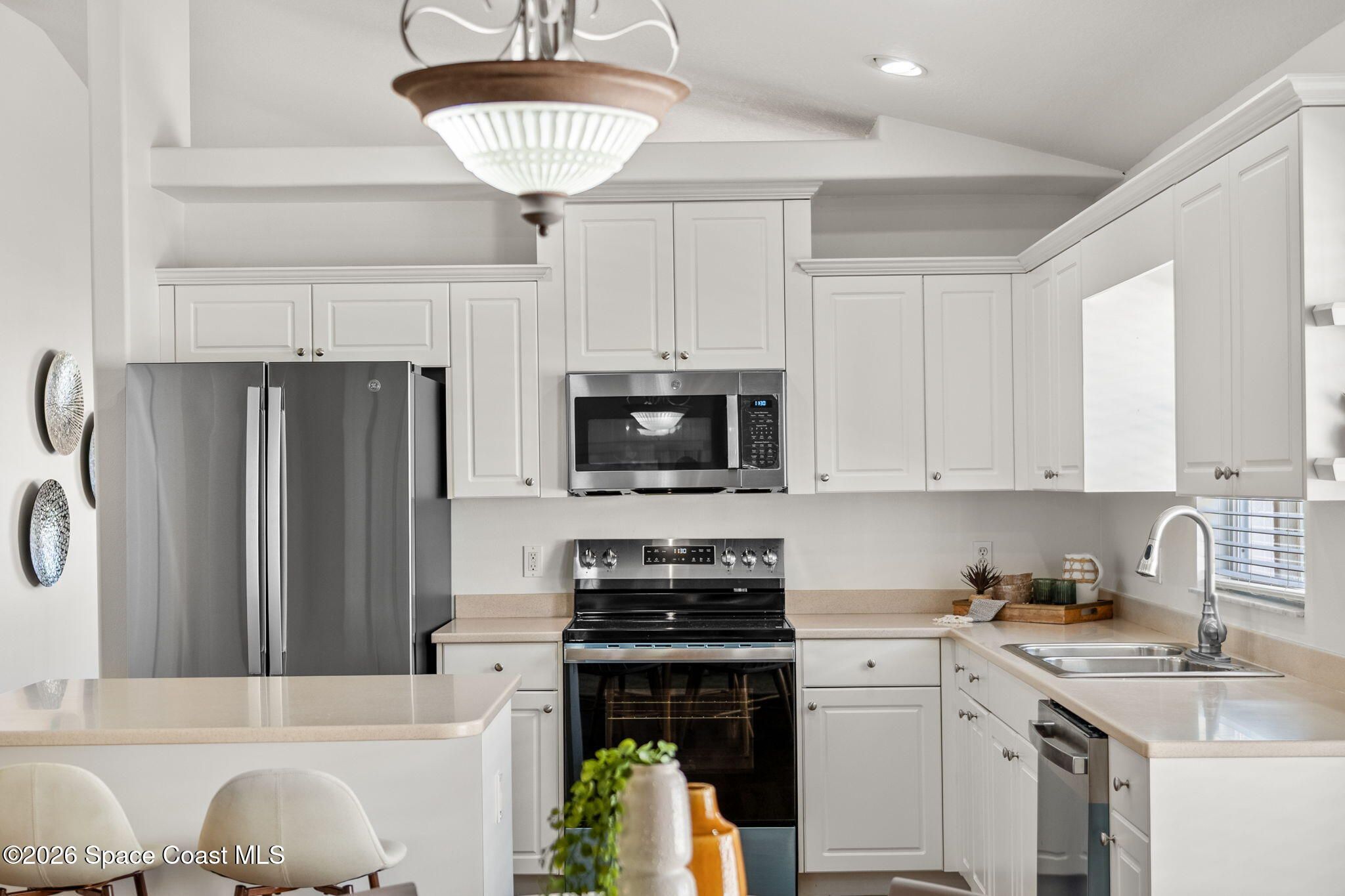- Kitchen Island, Primary Bathroom -Tub with Separate Shower, Primary Downstairs, Vaulted Ceiling(s), Walk-In Closet(s)