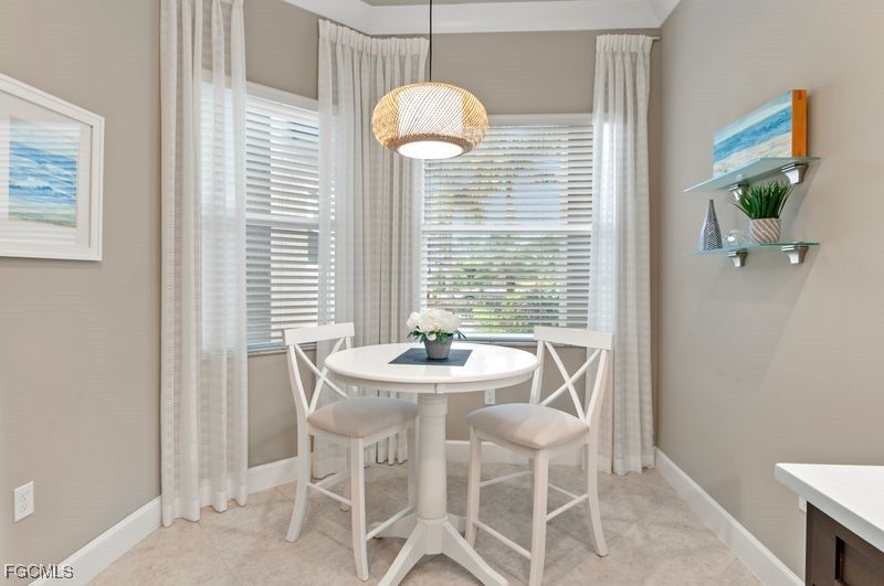 Best Value at Valencia Bonita! Beautifully FURNISHED Villa features 1,839 sq ft of exquisite living space with a bright Kitchen with breakfast area, expansive Great Room for dining and entertaining, 2 Bedrooms, 2 full baths, a Den/Office, 2 car Garage and screened lanai with landscaped views. Upgrades include quartz counters throughout, tile flooring throughout, impact glass windows and doors - front of home, Storm-Smart hurricane/sun protection lanai screening, coffered ceiling in Master, 5 ceiling fans, drapery panels in Den, Kitchen, Master Bedroom and Great Room, Laundry Room with cabinetry and sink, whole house Generator and so much more! Neutrally and tastefully decorated in a private location with lush landscape views. Valencia Bonita residents enjoy an unparalleled lifestyle with a full-time Lifestyle Director, curated daily activities and events. Enjoy dozens of resident clubs with something for everyone. Amenities include: concerts & entertainment in the social hall, indoor/outdoor The Oasis Restaurant & Bar, resort pool, resistance pool, lap pool, hot tub, cabanas, firepits, gym, billiards, card rooms, pottery room, cooking studio, spa featuring skin care, massage and nail salon, 8 pickleball courts, 8 tennis courts, fitness classes, pro-shop, bocce courts & two dog parks. A great opportunity to purchase a beautifully furnished villa with a quick closing at an exceptional price at Valencia Bonita, Southwest Florida's premier active 55+ lifestyle community.