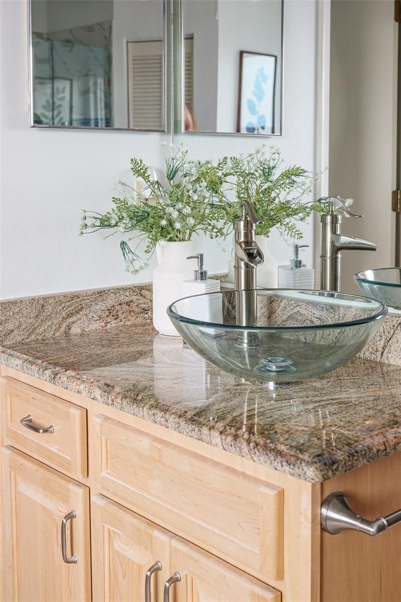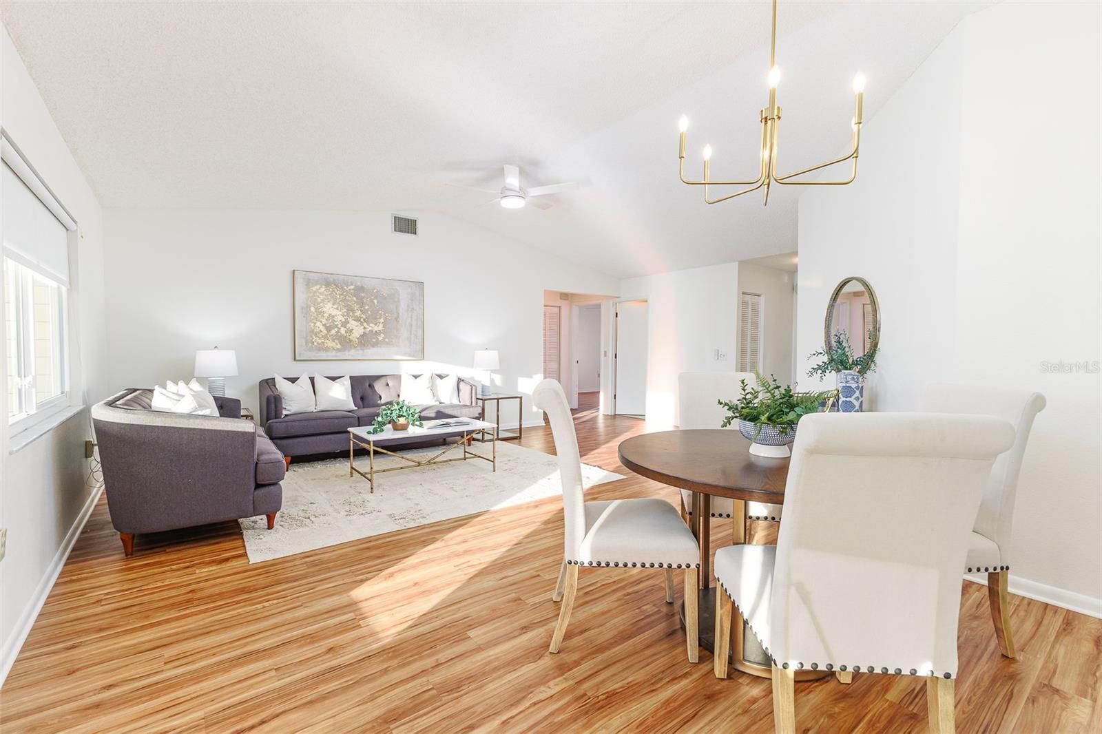 - Ceiling Fan(s), Eat-in Kitchen, Living/Dining Room, Other, Solid-Wood Cabinets, Stone Counters, Thermostat, Vaulted Ceiling(s), Walk-In Closet(s)