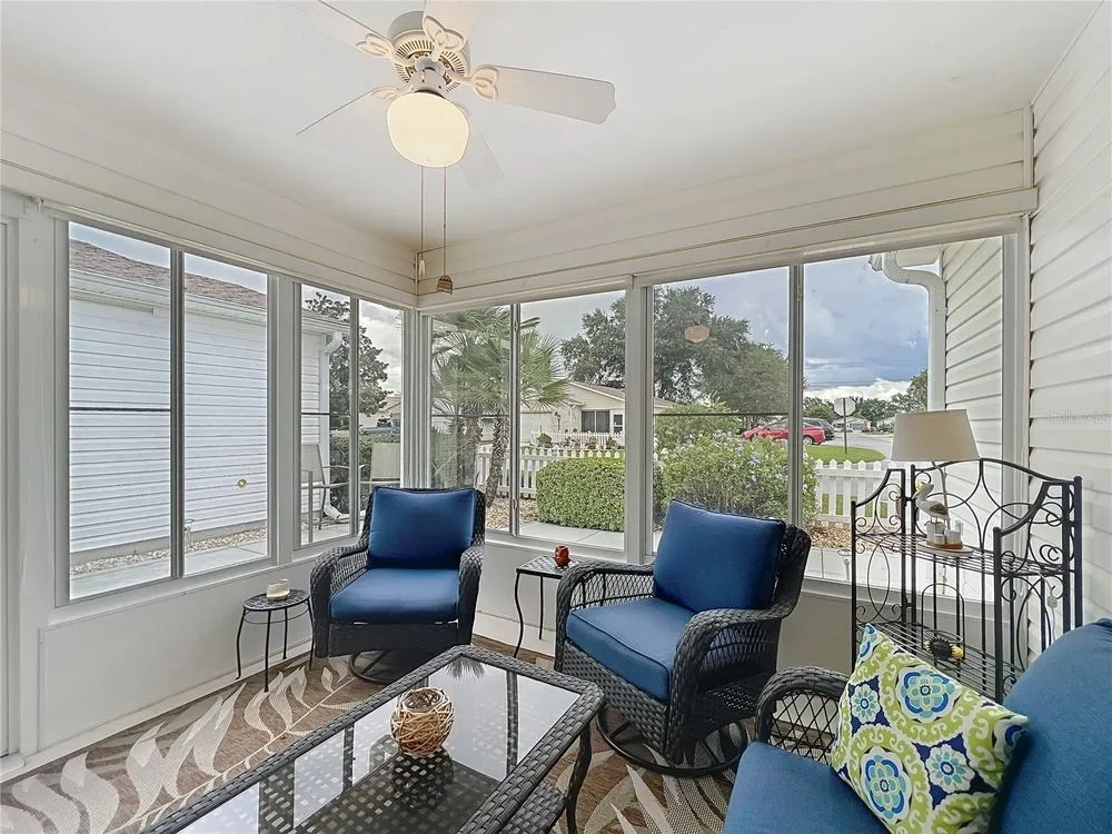 Welcome to your perfect Florida Retreat! This well maintained 2 Bedroom 2 Bath Colony Patio Villa offers Comfort, Convivence and VALUE! FRESHLY PAINTED, Roof 2020, New Water Heater 2025, Enclosed Lanai, 2 Solar Tubes, GAS RANGE, New Washer & Dryer, NO CARPET, PARTIALY FURNISHED, Attic Stairs, Beautiful painted Garage Floor and patio, extra parking lot across from home for guests! All that and THE BOND IS PAID! PLUS get around town with a Beautiful 2015 YAMAHA GAS GOLF CART INCLUDED with accepted contract! This very well maintained home is located just a short golf cart ride to Spanish Springs and Lake Sumter Town Squares where you will be close to shopping, dining, pools & golf courses! Start you mornings with a cup of coffee in the sunny ENCLOSED Lanai, your own peaceful spot to relax or unwind at the end of the day. Large Outdoor Patio gives you plenty of room for Grilling and outdoor entrainment. Don't miss this opportunity to have your own Villages Florida get a way or winter snow bird rental property. Call for a private showing today!