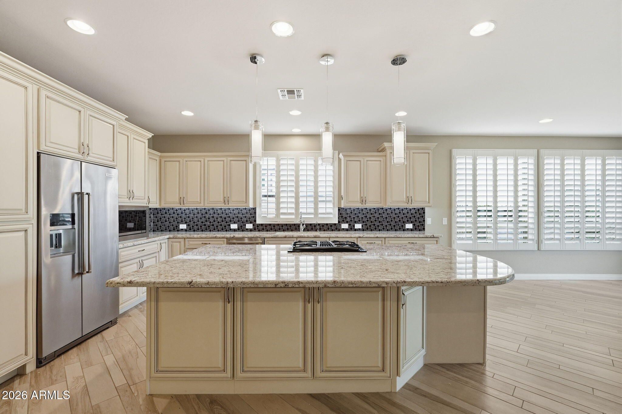 Welcome to This Amazing ''REFRESH Floor plan Home that is ready for a new owner. Beautiful Custom Features throughout the home reflect the Pride of Ownership and Attention to Detail! Ceramic Plank flooring throughout entire home / Stunning Granite Counters / Tiled Showers in both bathrooms / Stainless Steel Appliances / OWNED SOLAR / Plantation Shutters / Alarm System / Surround Speakers in Family Room / Beam Electrolux Whole House Vacuum System / Crown Molding / Built in Bookshelves / Maytag Commercial Washer and Dryer / Crown Molding / Ceiling Fans / Fruit Trees / Built in Turbo Elite BBQ / SECRET Storage Room ...Plus so much more...come see this Turn Key Home for yourself! Encanterra Country Club will amaze you with ALL it offers. So many activities and adventures await...Let's Go! Encanterra Country Club has an 18 hole Championship Golf Course, 4 Tennis Courts, 8 Pickle Ball Courts, 2 Bocce Ball Courts, 2 Resort Pools, 1 Lap Pool, 1 Indoor Pool, a 60,000sf Clubhouse with Private Restaurant and Bar, POST OFFICE, Gym, World Class Spa, Banquet Facility, Locker Rooms for men and women, Billiards, Fire Pits,, Spectacular Views, and so much more. Plus there is another 8,000sf Clubhouse with even more exciting things to do! The community has fun activities for everyone to enjoy, great clubs, exercise classes, walking groups, travel clubs, and Encanterra does fun things like concerts, Holiday Parties, and Social Events all year long. Come discover the "Good Life" and treat yourself to the Lifestyle you deserve! I can't wait to see you here.