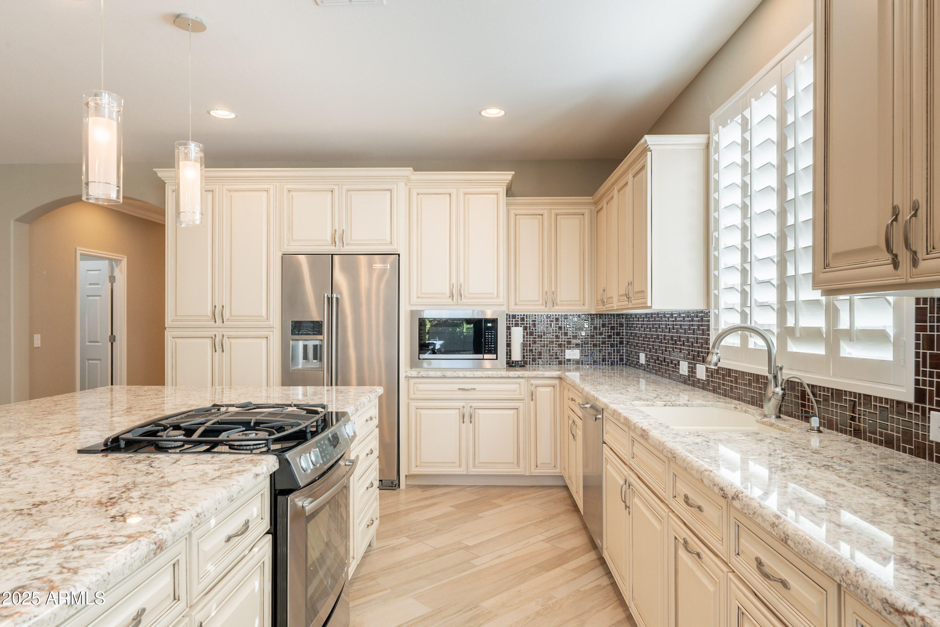REFRESH FLOORPLAN WITH STAIRWAY TO ATTIC STORAGE! 1 YEAR HOA INCLUDED W/FULL PRICE OFFER! OWNED SOLAR! WHOLE HOUSE WATER FILTRATION! NO CARPET & TONS OF INCREDIBLE UPGRADES INCLUDING BRICK ACCENT WALLS, UPGRADED CABINETS AND CROWN MOULDING AS SHOWN IN THE MODEL! This is one of the most pristine homes in Encanterra. Pride of ownership and carefully chosen appointments make this home one of a kind. A must see!