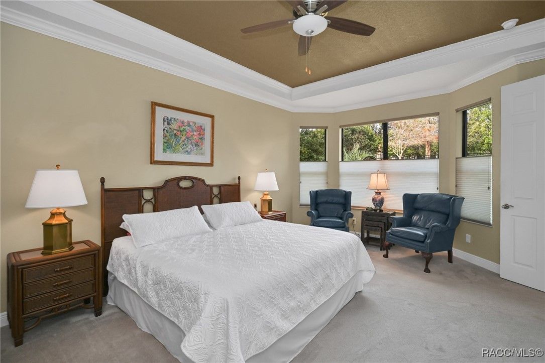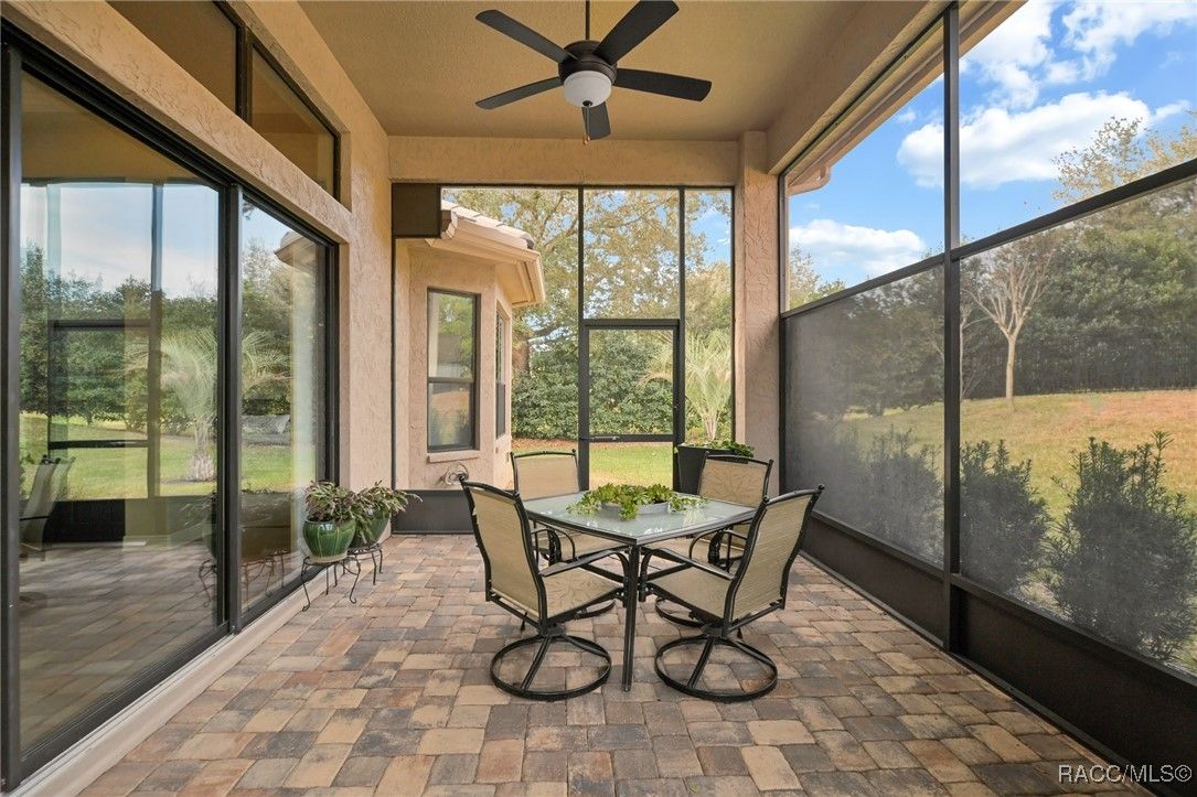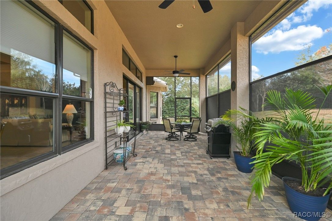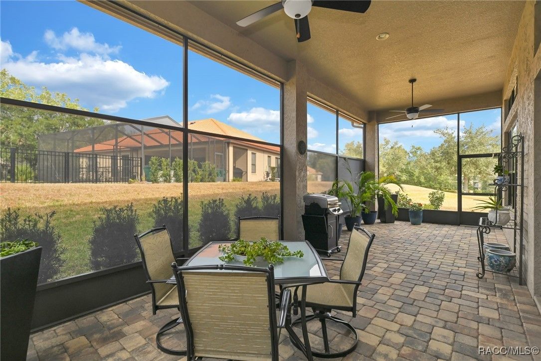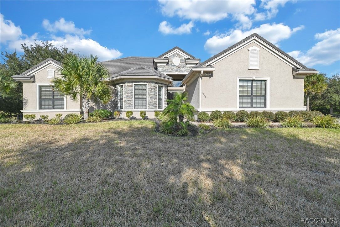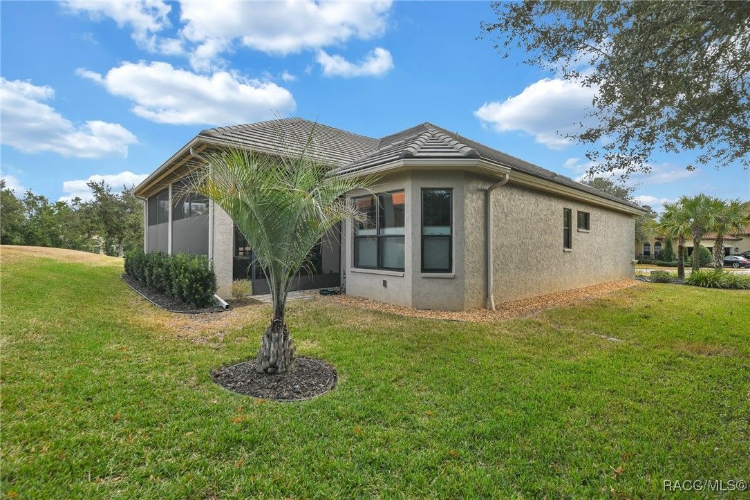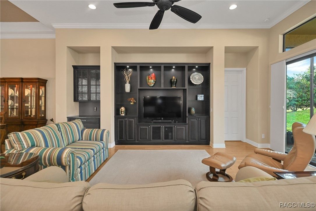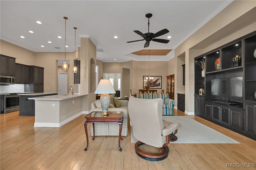 Located in Terra Vista’s Select Bellamy Ridge Neighborhood - a True Value awaits... Step into this beautifully upgraded 3-Bedroom, 2-Bath, 2 Oversize Car Garage home perfectly positioned on a premium corner lot surrounded by other exceptional properties. Located in the prestigious gated neighborhood of Bellamy Ridge, this home delivers the style and comfort today’s buyers are searching for. From the moment you walk through the entryway, you’ll appreciate the beautiful Front Glass Door, the hardwood flooring, and the spacious Great Room and Dining Room that feature beautiful custom Built-ins creating an ideal setting for entertaining family and friends. The upgraded kitchen, featuring top-of-the-line appliances, white quartz flush counters, stylish backsplash, under cabinet lighting, and a generous pantry. Cooking and hosting become effortless in this bright, modern space. Crown molding, Custom Door Trim, volume ceiling height, and Tray Ceiling in the Dining Area add sophistication throughout the home. The oversized Master Suite offers a peaceful retreat with sitting area, spacious walk in closet, and a spectacular Master Bath. Two additional Guest Bedrooms provide flexibility, one currently used as an Office/Den with a charming Bay Window overlooking the front of the home. The covered Lanai area and outdoor Patio extend your living space... giving you the perfect place to relax or entertain while enjoying Florida’s beautiful weather. Outdoor living shines here. The brick paver driveway, walkway, lanai, and patio create a seamless, elegant look. The while oversized garage offers space for a golf cart or workshop. Extensive landscaping, including large palms and a spacious paver patio, enhances the home’s curb appeal and outdoor enjoyment. Built with Energy efficient in mind, the home features radiant barrier insulation, upgraded windows, and Sliding Glass doors adding long term value. Stone exterior trim brings an extra touch of class. Living in Terra Vista means access to world class amenities: Golf, Tennis, Pickleball, Dog Park, Spa, Fitness Centers, Indoor and Outdoor Pools, Social Clubs, and on site Dining. Everything you need for an active, vibrant lifestyle is right at your fingertips. This is a Special Home in one of Florida's Premier Resort Style Communities... one you’ll be proud to call your own.