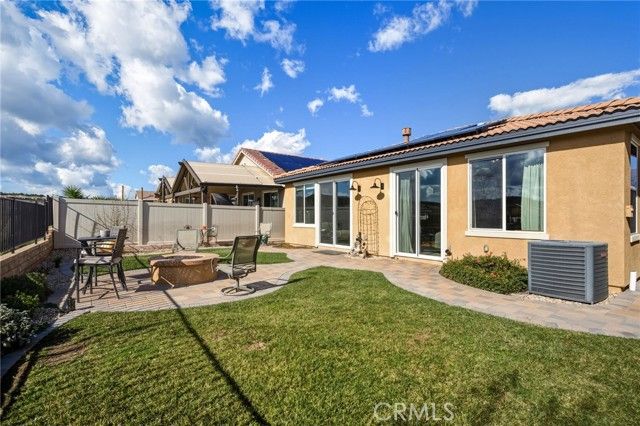 Stunning is the word I use to describe this "Retreat" Model Home. Welcome to Location, Location, Location. Nestled in on a quiet cul-de-sac street this home has amazing views of the neighborhood, hills and mountains. Built in 2019 this home has had a beautiful REDO with a gorgeous new countertop - its Cambria quartz - unique and a standout. Located in the gorgeous 55+ Community of Four Seasons in Beaumont! Offering 2 bedrooms + den/office, 2 bathrooms, laundry room and 1,592 square feet of thoughtfully designed living space, this home is ideal for those seeking style and convenience in a vibrant active adult community. Step into the heart of the home—an impressive kitchen featuring white cabinetry, stunning quartz countertops, stainless steel appliances, and a large center island with sink. The inviting dining area flows effortlessly into a bright and open great room, filled with natural light from abundant windows. Enjoy beautiful flooring in the foyer, kitchen, great room, and bathrooms, complemented by soft carpeting in the bedrooms and den. A spacious walk-in pantry adds plenty of storage, and the home is equipped with energy-efficient upgrades including a tankless water heater and fire sprinkler system. Outside, the low-maintenance landscaping with a custom $25,000 backyard offers privacy, views and a firepit. The backyard is a sanctuary —with no neighbors directly behind you and stunning views. Solar system runs $68 pr month keeping your electric bill to a credit or possibly approximately $10 per month or several times a year a credit. Resort-Style Living at Its Best Four Seasons Beaumont offers world-class amenities including: The Lodge: Bistro, Grand Ballroom, Theater, Library, Billiards, 80+ social clubs, Beauty Salon & Spa, Fitness Center, Tennis, and Outdoor Pool The Summit: Indoor Pool, Lounge Area, and Outdoor Spa The Courts: Tennis Courts, Fitness Area, and another Outdoor Pool All nestled among scenic walking trails and lush paseos. Perfectly located just minutes from shopping, dining, and entertainment: Cabazon Outlets & Morongo Casino Resort – 15 mins Palm Springs & Redlands – 30 mins Easy access to I-10 Don’t miss this opportunity to live the good life in Four Seasons Beaumont—schedule your private tour today!