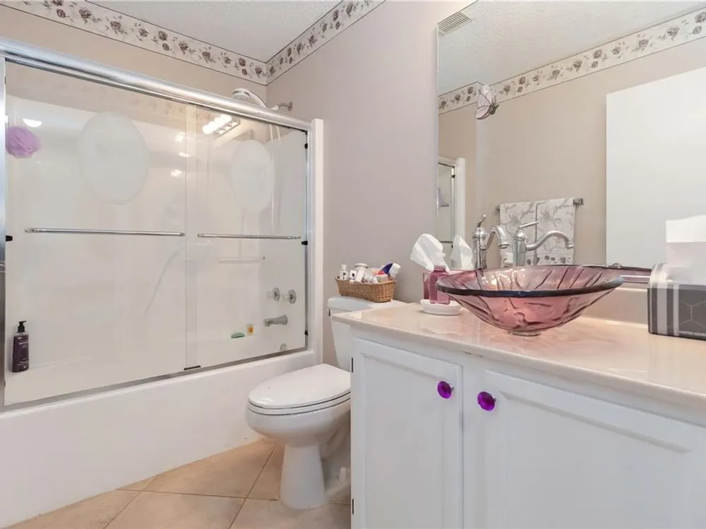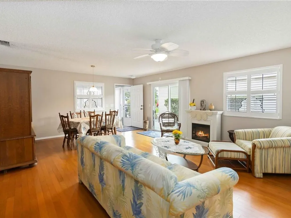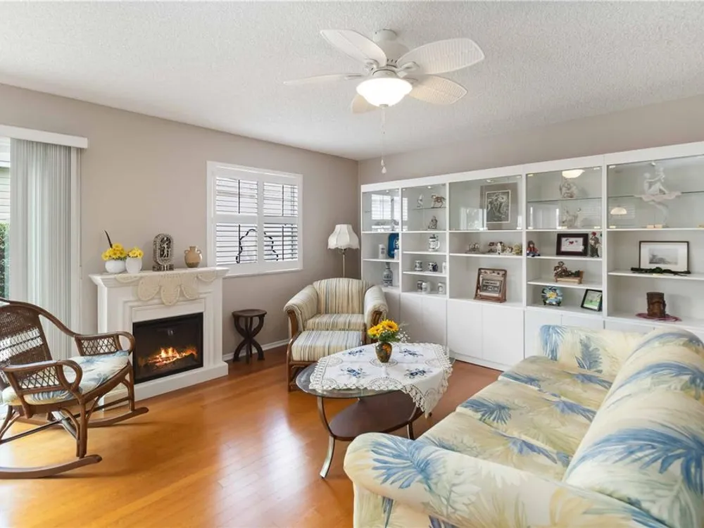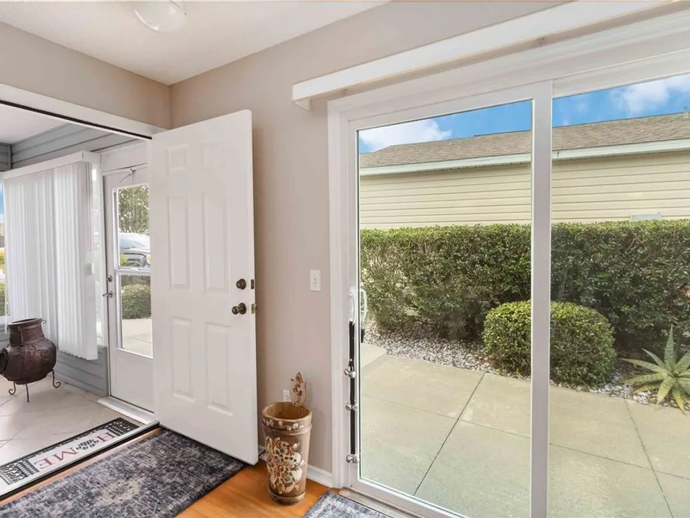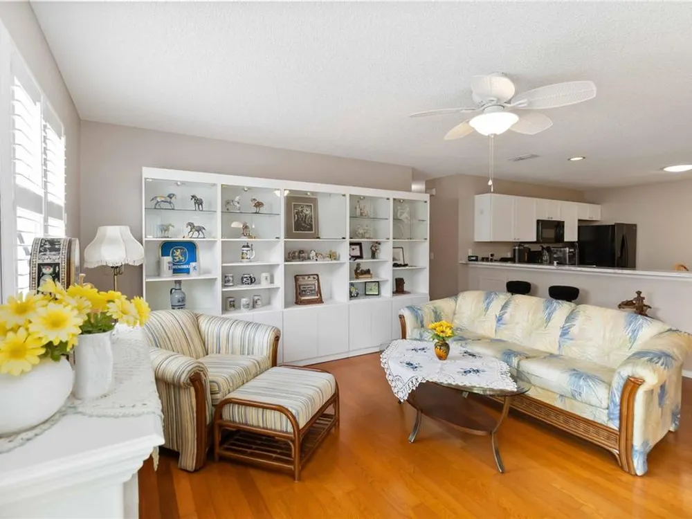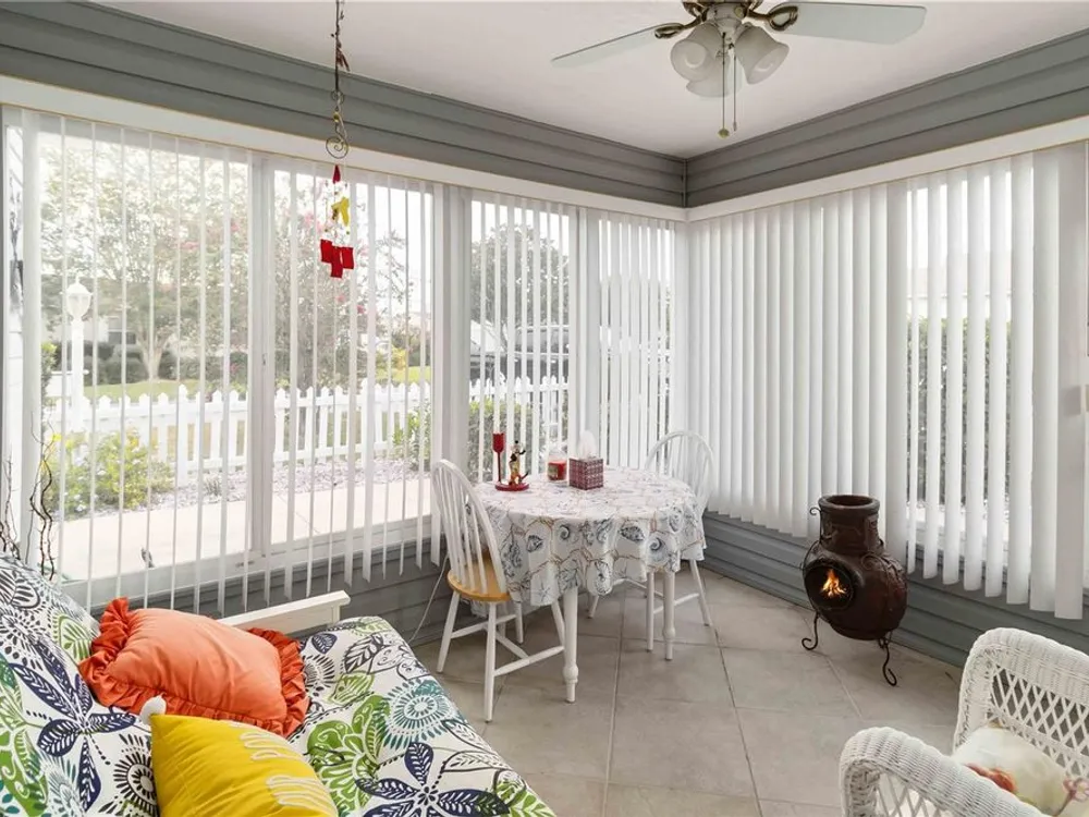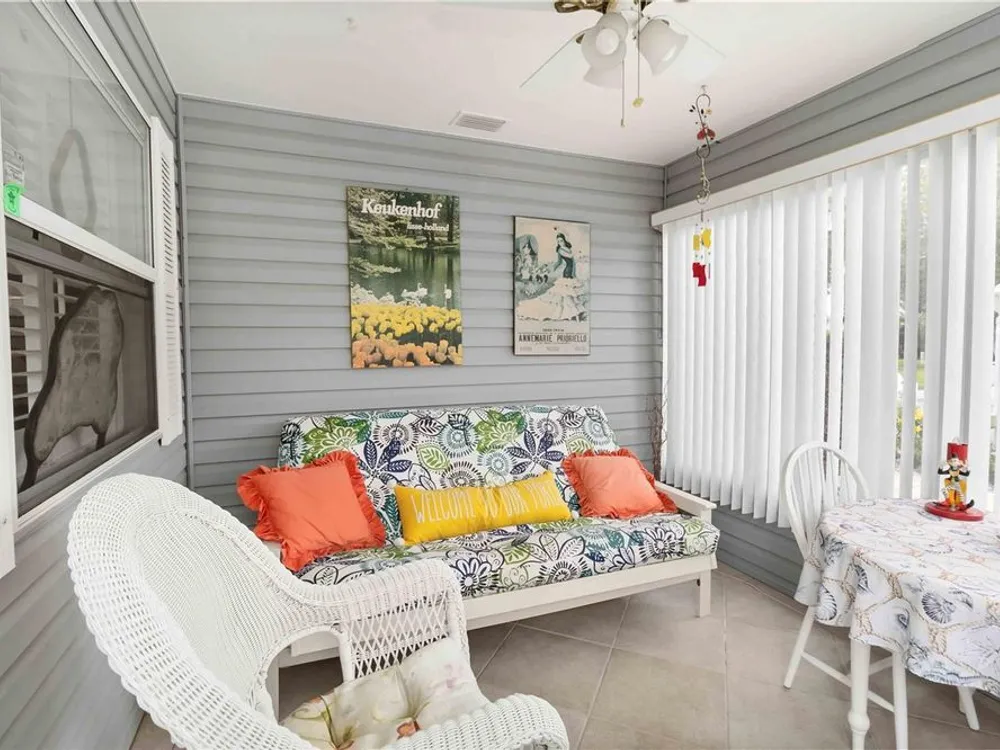 This beautifully updated Colony Patio Villa in the desirable Village of Alhambra is move-in ready and offers a peaceful setting with a view of a tranquil preserve and lush trees. The meticulously landscaped yard, framed by a welcoming picket fence, features a combination of decorative rocks and grass. Step inside and you'll be greeted by an open floor plan bathed in natural light. The main living and dining areas feature hardwood floors, which lead to a kitchen with ceramic tile. The kitchen is a chef's delight, with upgraded cabinets, convenient roll-out drawers, a solar tube for added brightness, and a cozy breakfast nook perfect for your morning coffee. An adjacent breakfast bar provides additional seating for guests. The spacious primary bedroom boasts hardwood flooring, a customized walk-in closet, and a private en-suite bathroom. The guest bedroom also has hardwood floors and is equipped with a Murphy bed for versatile use. From the guest room, you have direct access to the enclosed birdcage with a hot tub, providing a private space for relaxation and entertaining with evening lighting. The home also has an enclosed front lanai with an additional 114 square feet of living space, under heat and air. Recent updates ensure this home is both stylish and functional. You'll find plantation shutters throughout, upgraded ceiling fans, new electrical panel and wiring throughout the house and a 2024 roof. The bathrooms were also updated with vessel sinks and glass shower doors. The garage offers built-in cabinets and interlocking flooring tiles for a clean, organized space. Located near Savannah Center, Glenview Country Club, and Spanish Springs Town Square, this home provides easy access to a variety of recreation, dining, and entertainment options. The neighborhood also features convenient parking nearby. Best of all, there are no bond fees associated with this property. Tour today!